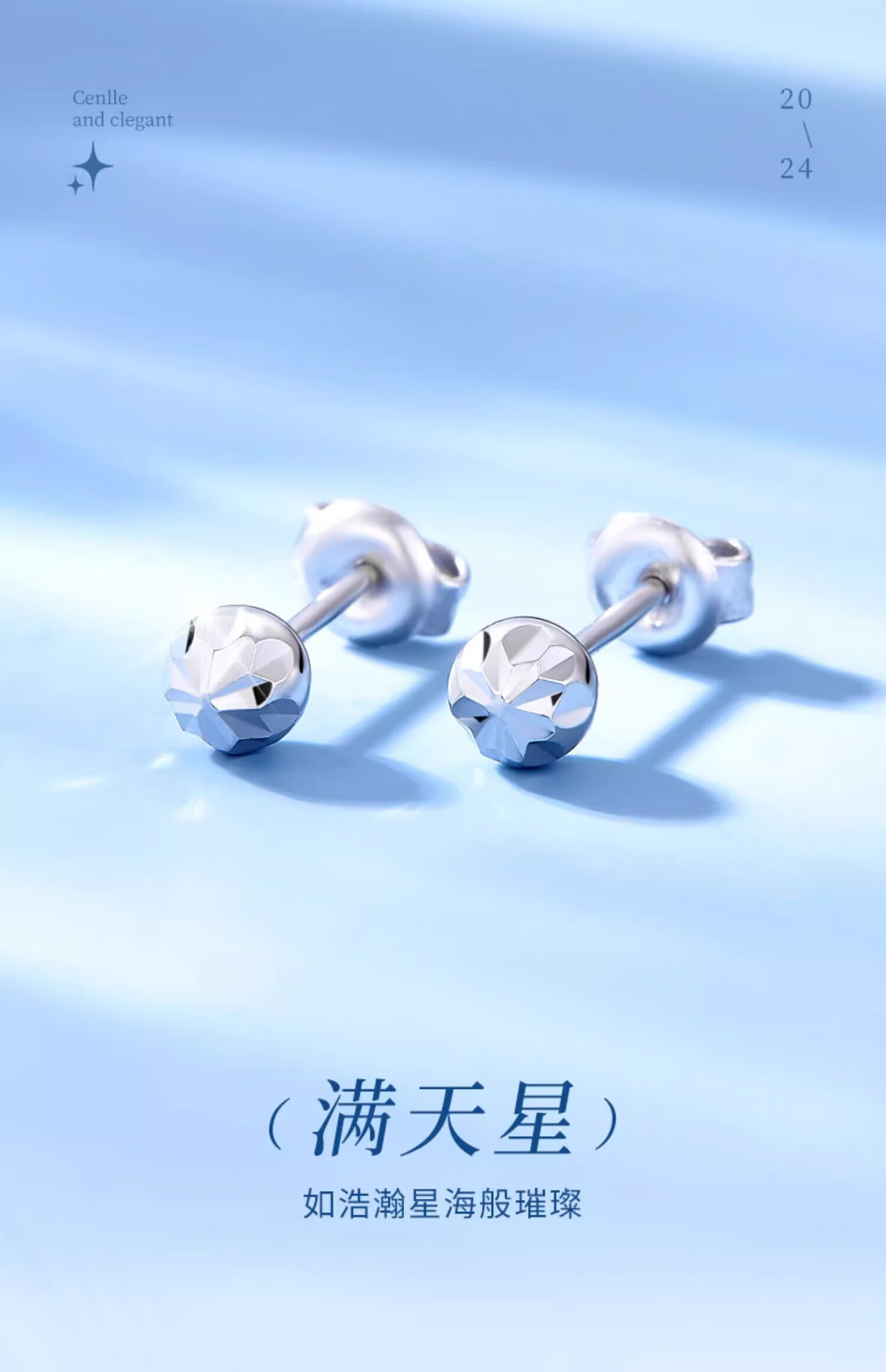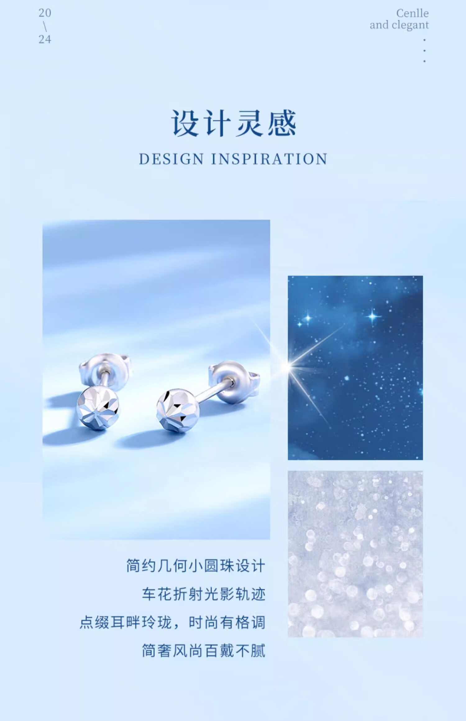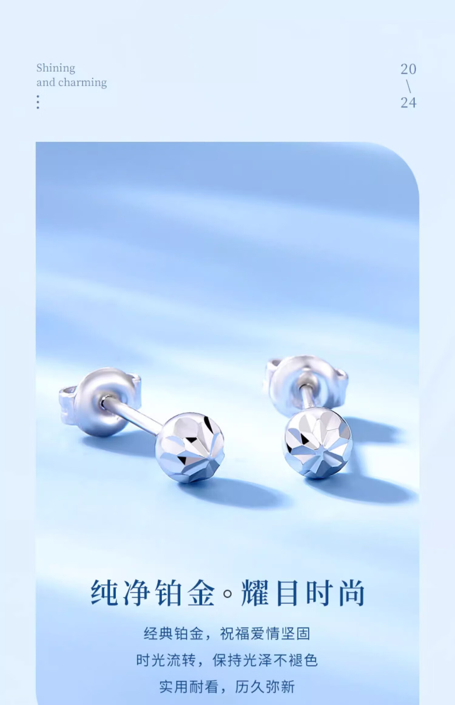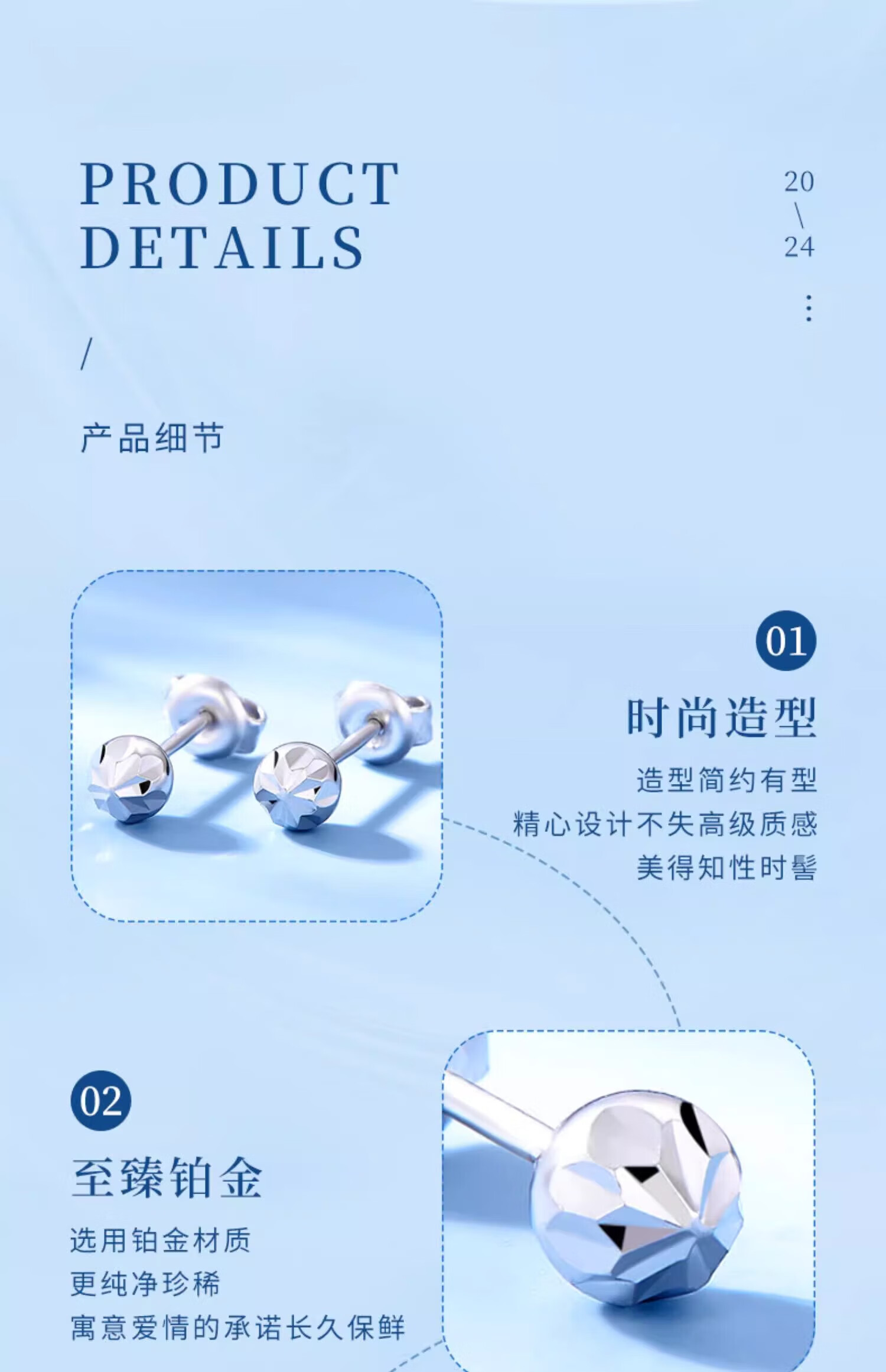 CHINA GOLD Gypsophila platinum earrings for women PT950 round ball platinum earrings, practical Valentine's Day birthday gift for girlfriend, platinum laser ball earrings, about 1.2g