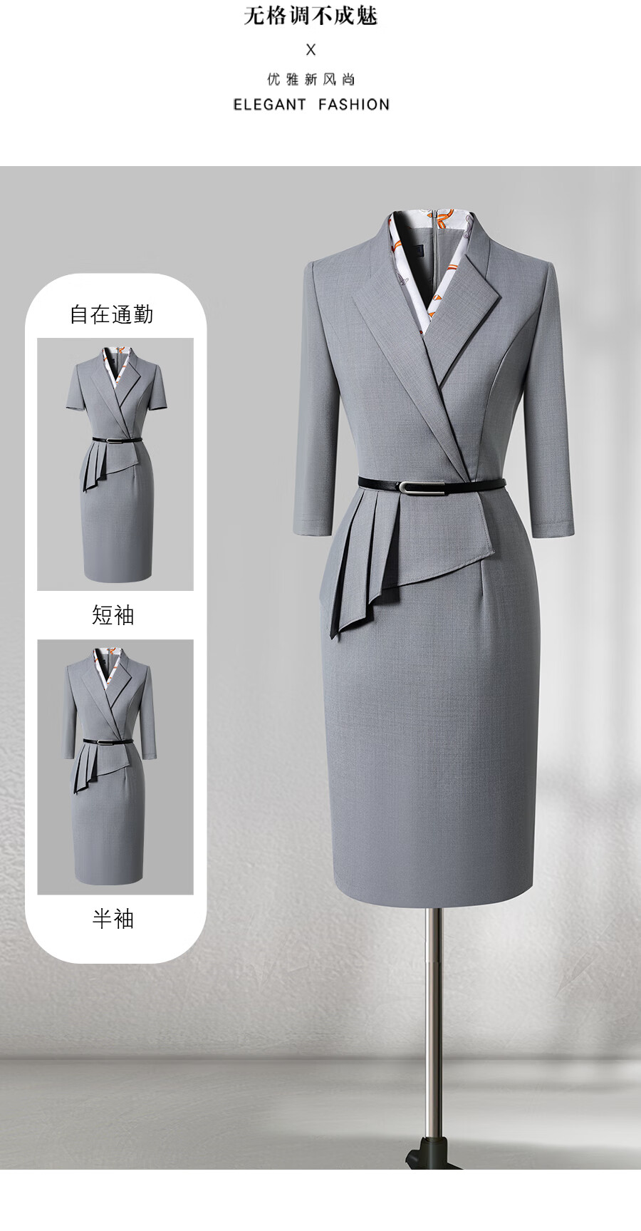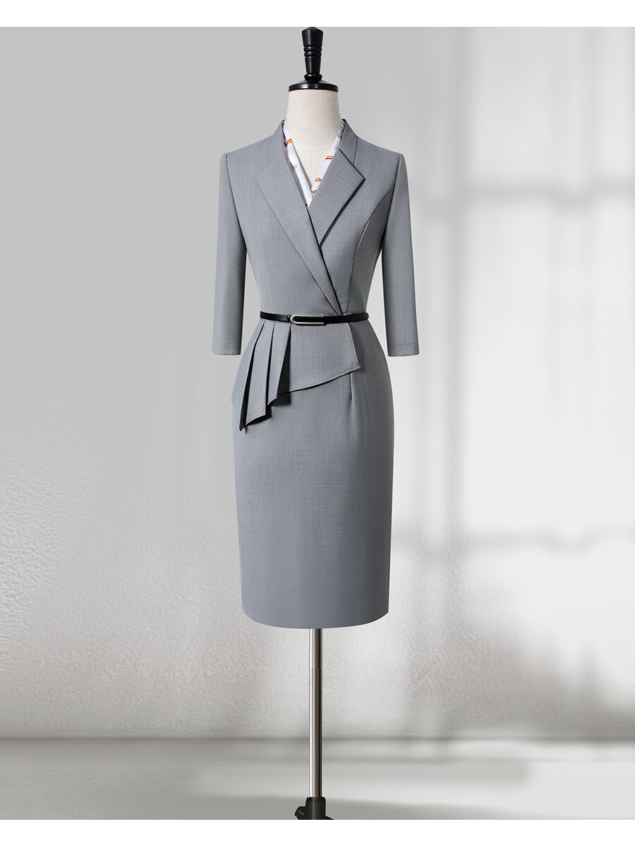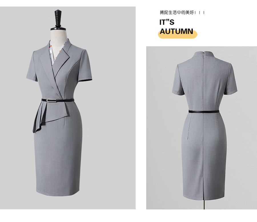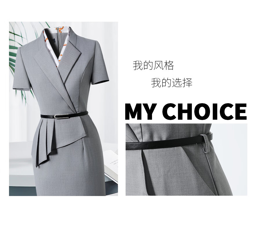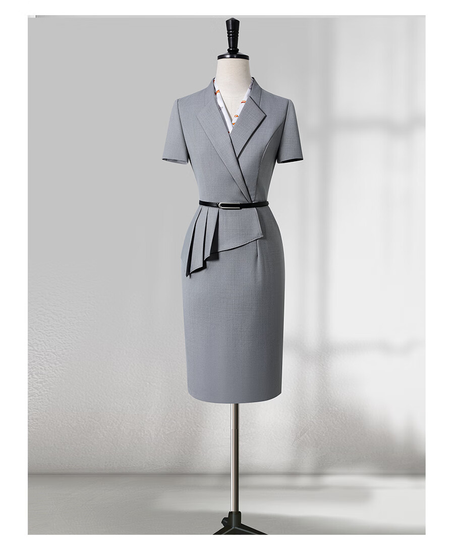 Weishipin professional dress women's summer temperament waist hotel front desk work clothes jewelry store sales department case customer service overalls navy blue short sleeves M recommended 98-107 Jin Jin equals 0.5 kg