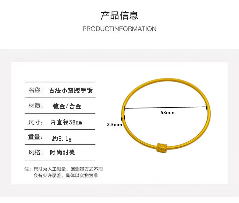 QUAMER Vietnamese sand gold small waist ancient bracelet for women plated imitation color thin circle light luxury niche bracelet jewelry small waist bracelet