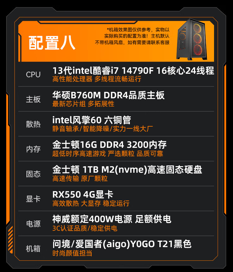 CZZ Core i7 14790F/1TB/RX550 Sea View Room Game Console Computer Desktop Discount Subsidy Assembly Computer DIY Host i7 12700/51G/Integrated Graphics Card