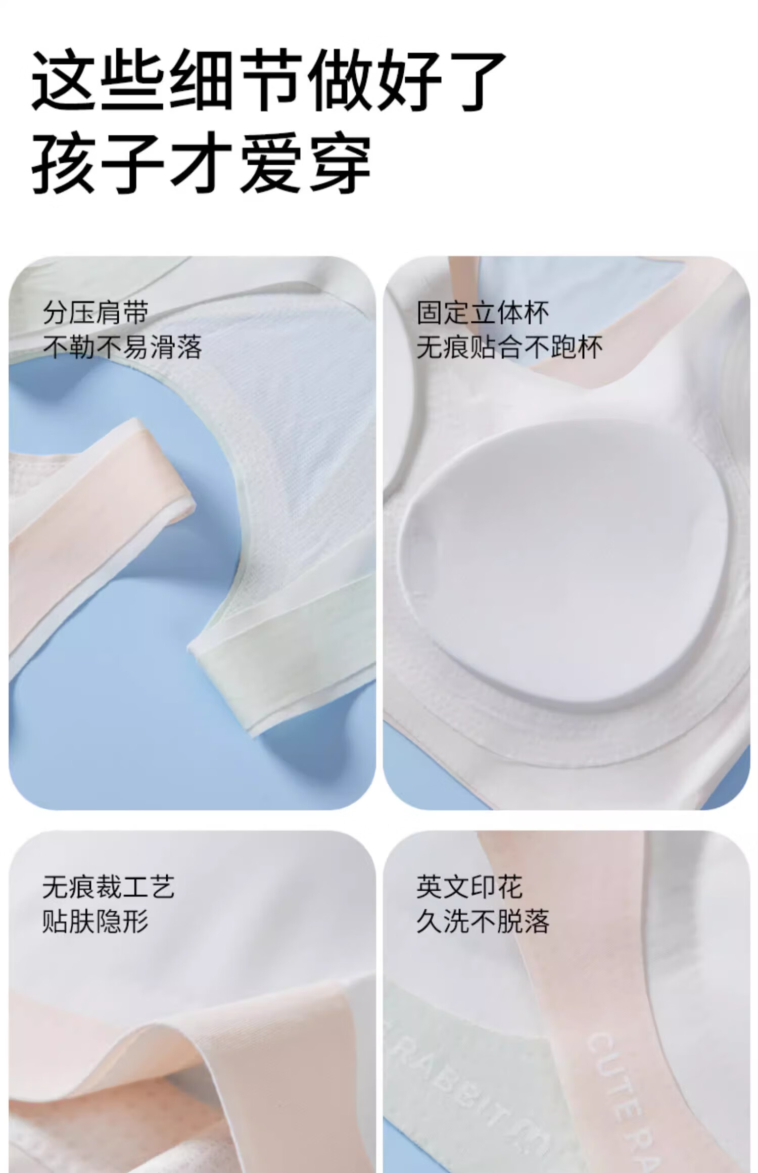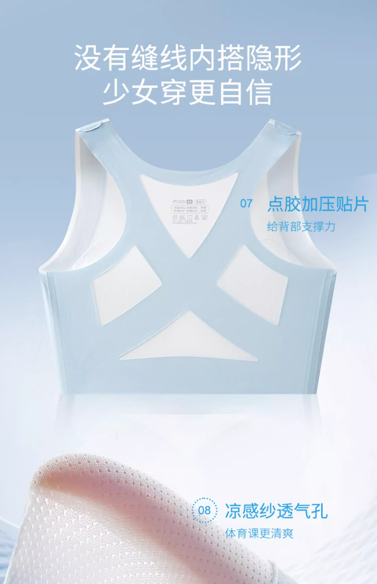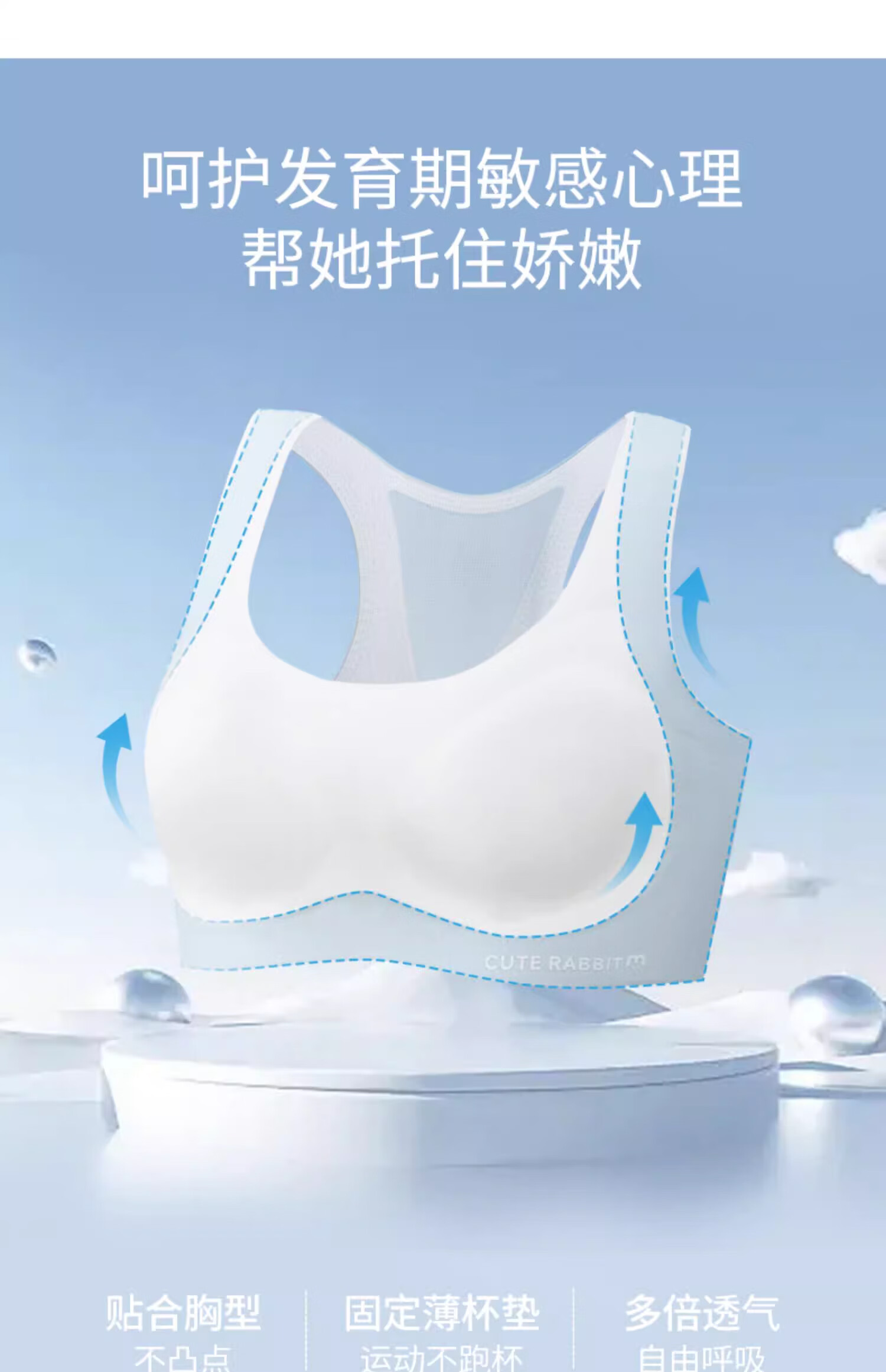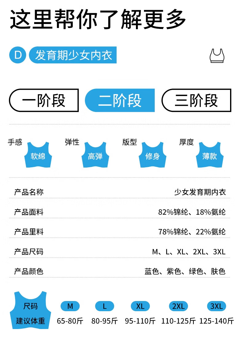 Bedi pure and authentic girls' underwear, developmental period, primary school girl bra, junior high school and high school student girl, children's thin vest, straightening and beautiful back, blue L