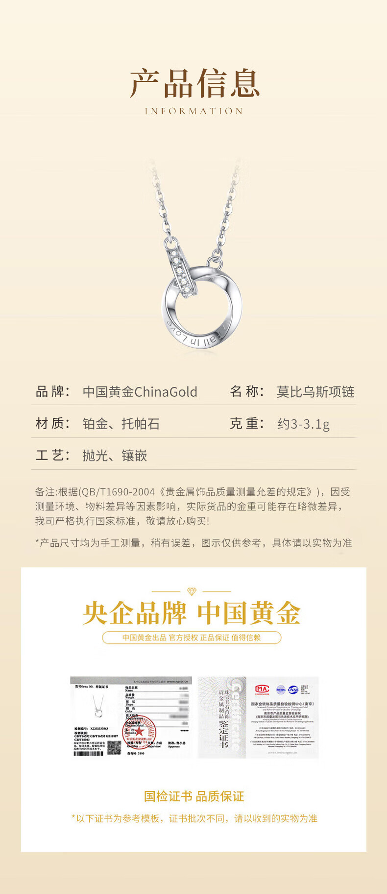China Gold (CHINA GOLD) interlocking PT950 platinum necklace for women, Mobius pendant, practical wedding gift for girlfriend’s birthday, platinum interlocking chain set, brand gift box