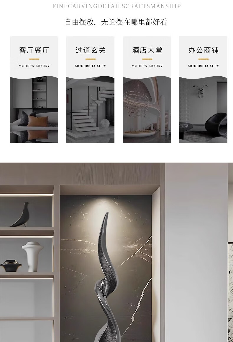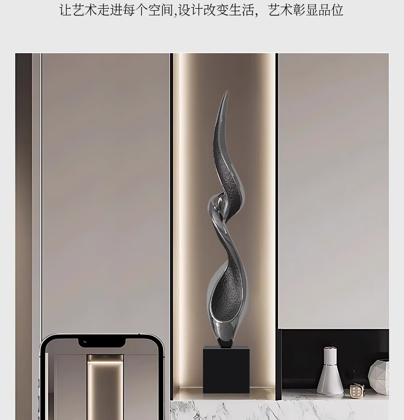 Bai Decoration Modern Light Luxury Abstract Art Sculpture Large Ornament Living Room Entrance Cabinet Niche High-end Soft Decoration Soaring Up About 1.2 Meters High