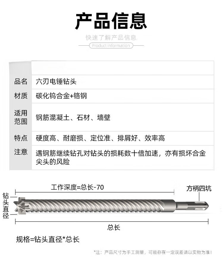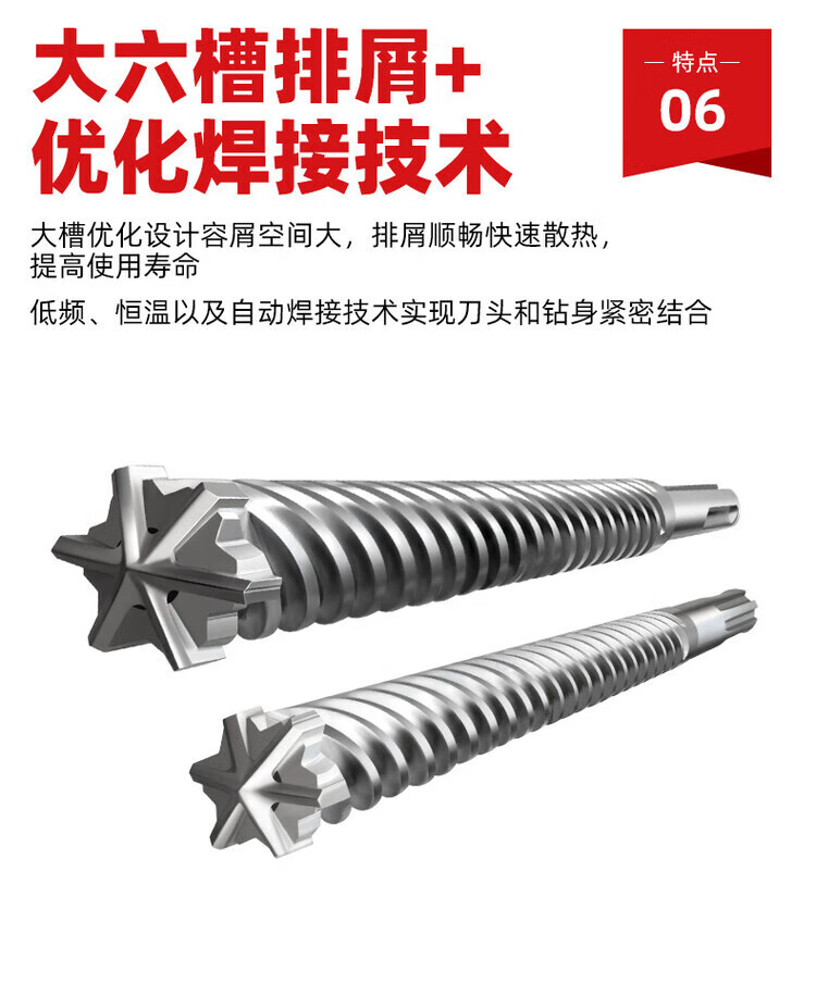 Grain harvesting electric hammer drill bit square handle four pits reinforced concrete through wall planting bar expansion drilling suitable for Dongcheng electric hammer square handle six blades 28*600