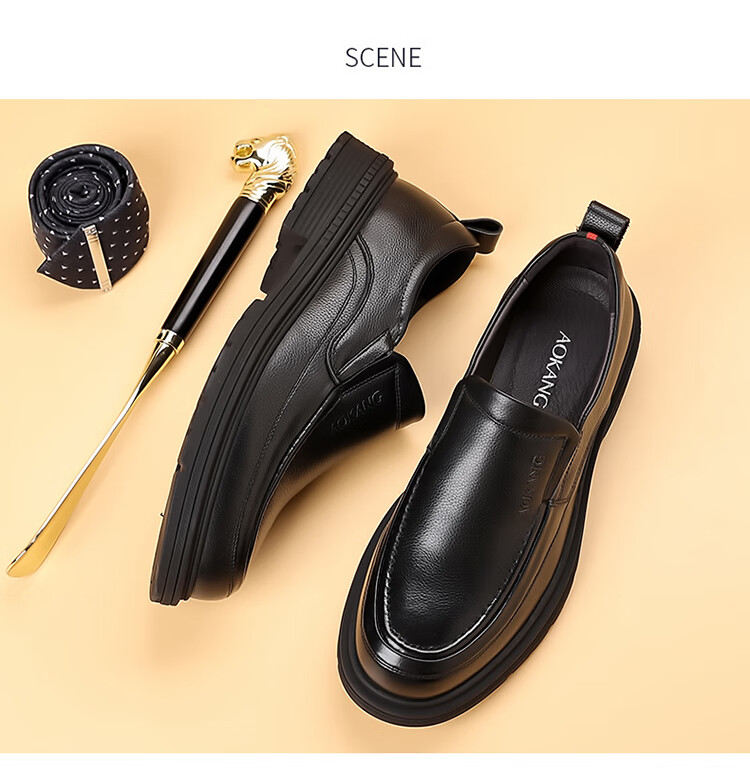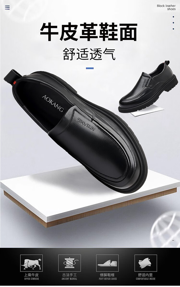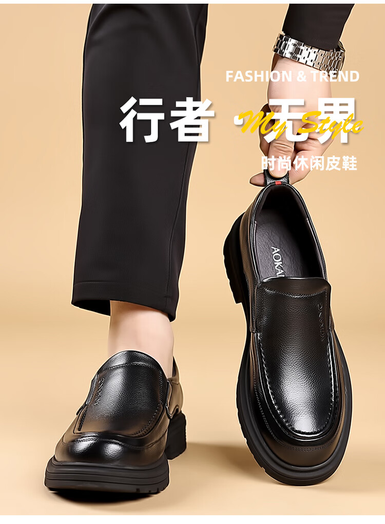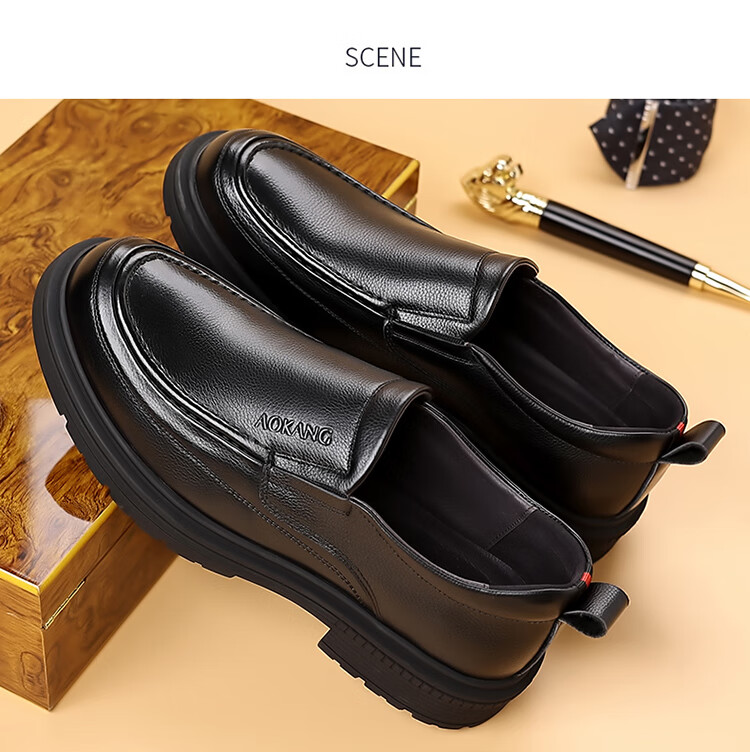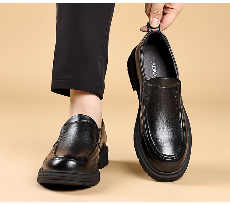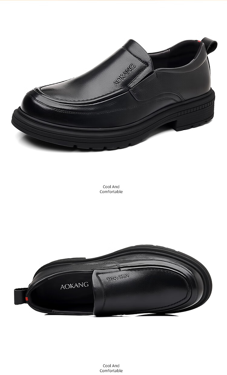 Aokang Leather Shoes Men's Slip-On Business Casual Shoes Genuine Leather Wedding Shoes Soft Sole Soft Surface Formal Shoes Middle-aged and Elderly Dad Shoes Black 1255114007H 40