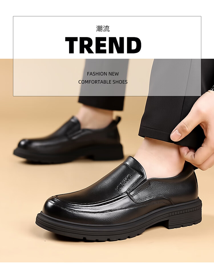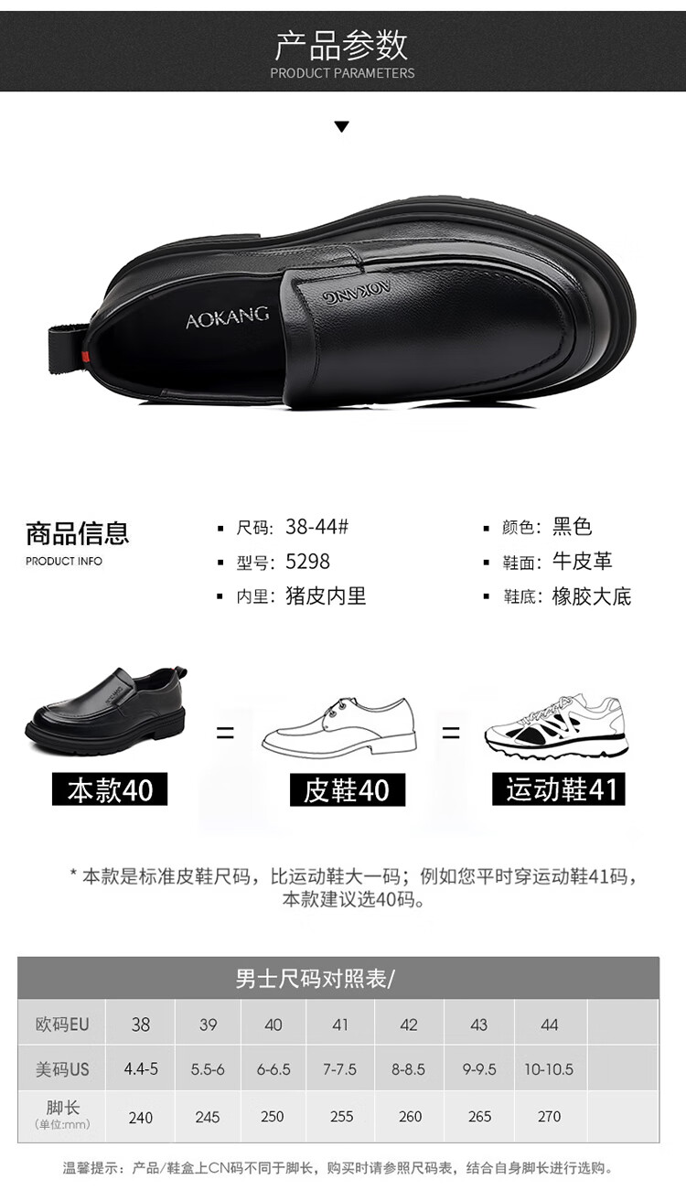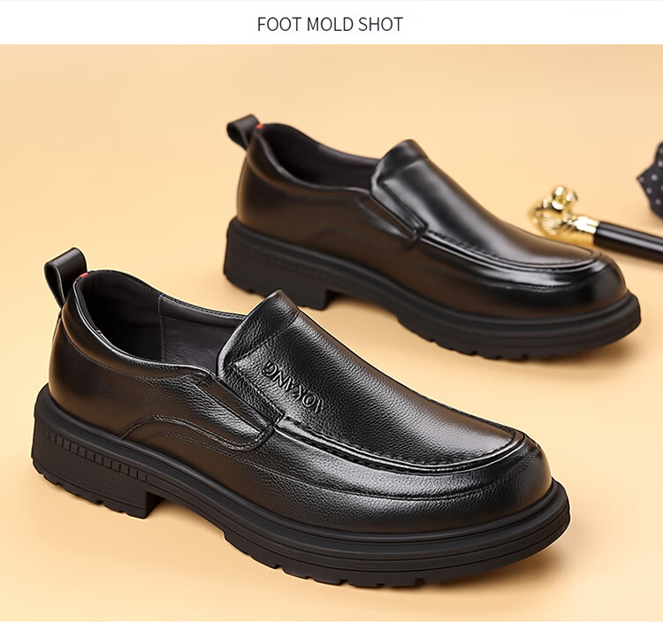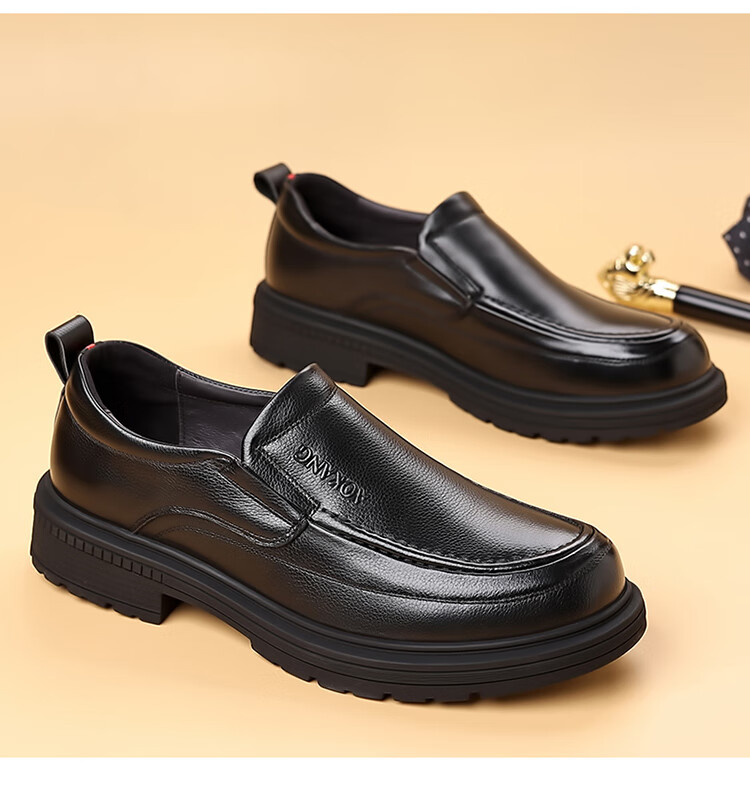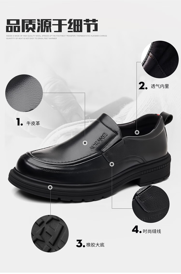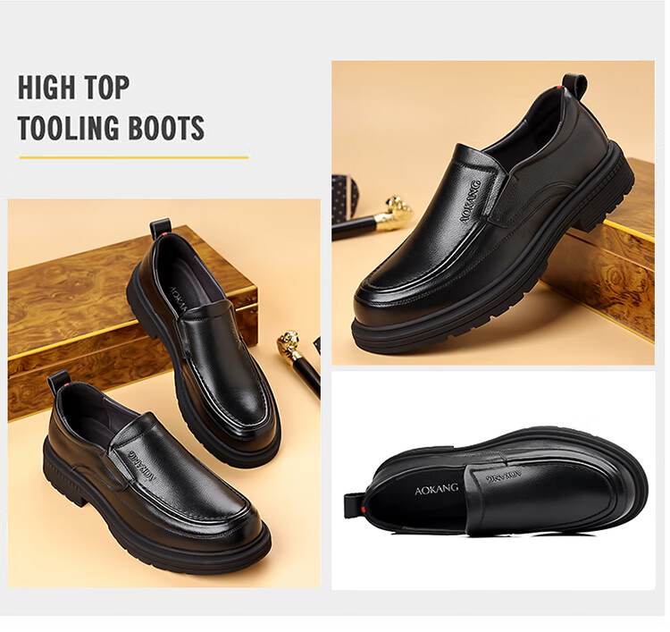 Aokang Leather Shoes Men's Slip-On Business Casual Shoes Genuine Leather Wedding Shoes Soft Sole Soft Surface Formal Shoes Middle-aged and Elderly Dad Shoes Black 1255114007H 40