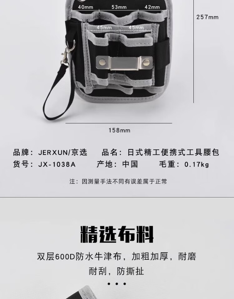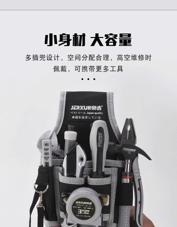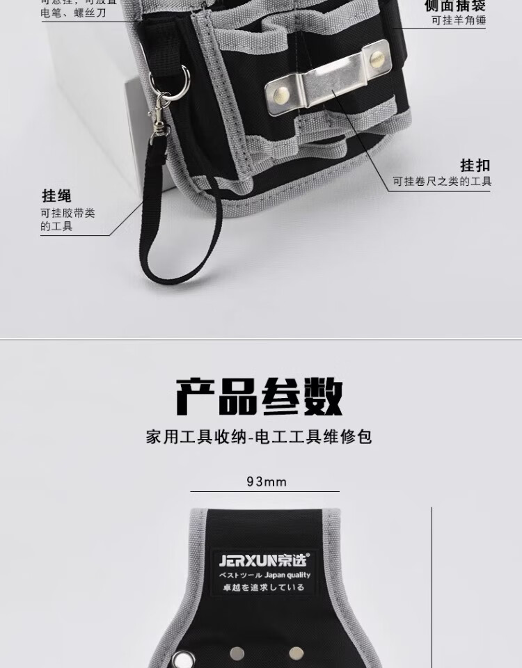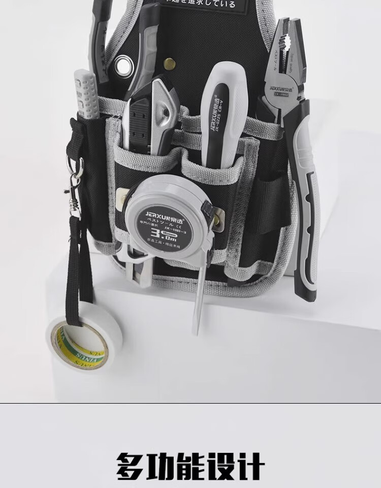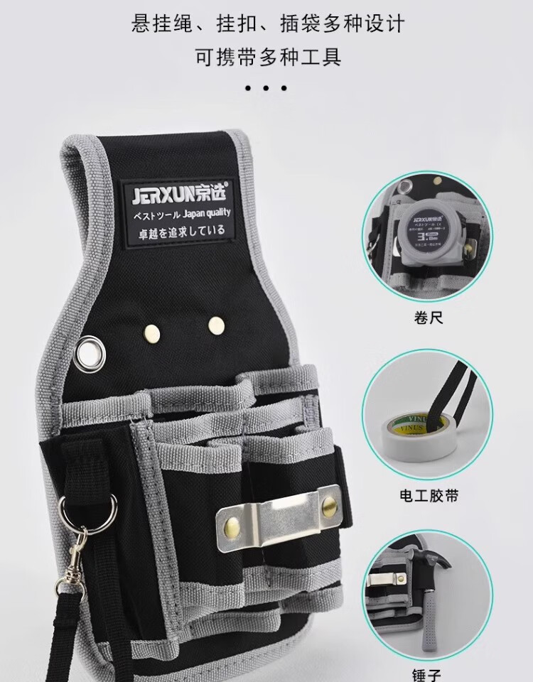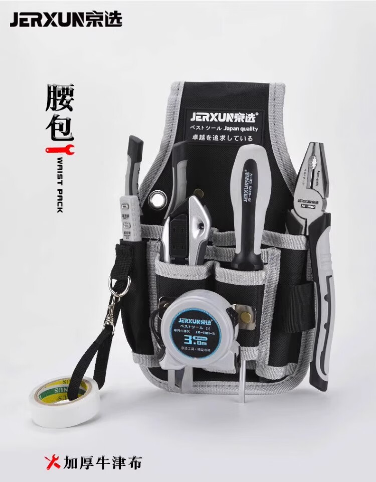 JERXUN Tool Belt Bag Crossbody Electrician Bag Oxford Cloth Waterproof Thickened Small Pocket Bag Maintenance Bag Storage Convenient Storage Bag Hook-type Waist Bag (Including Belt)