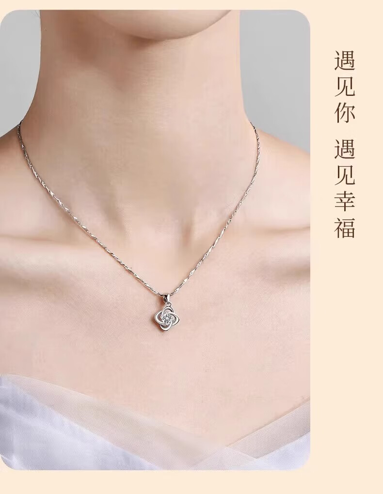 2025 new platinum pt950 four-leaf clover necklace women's light luxury niche pendant 520 Valentine's Day gift for girlfriend light luxury style-white diamond four-leaf clover pendant-rose gift box
