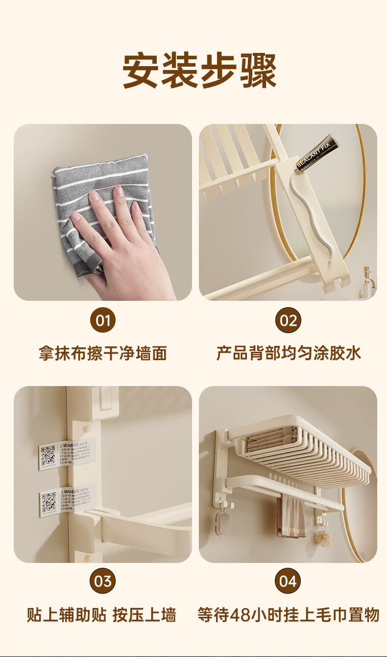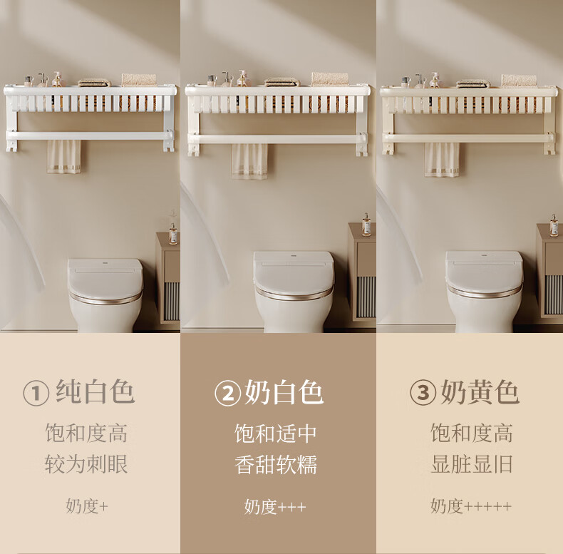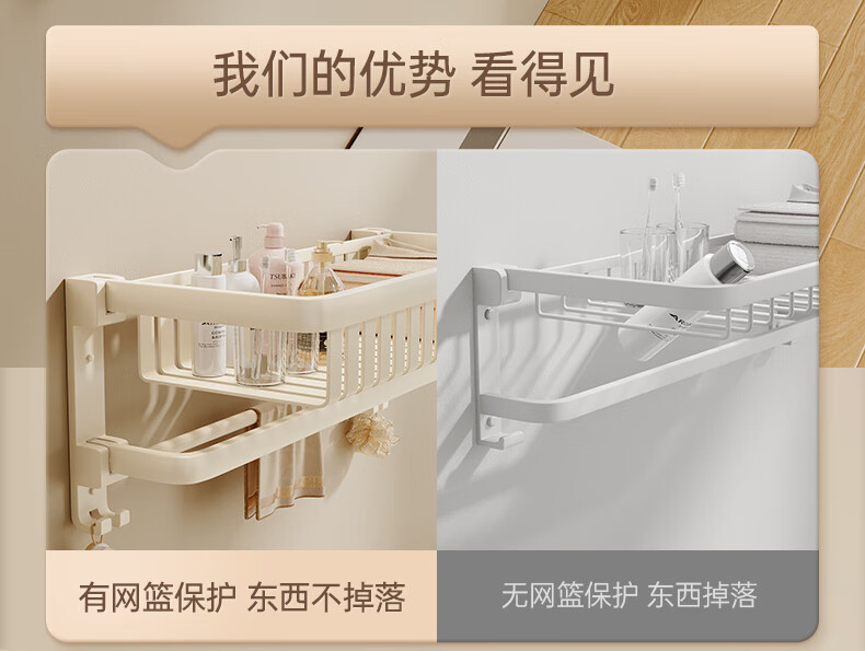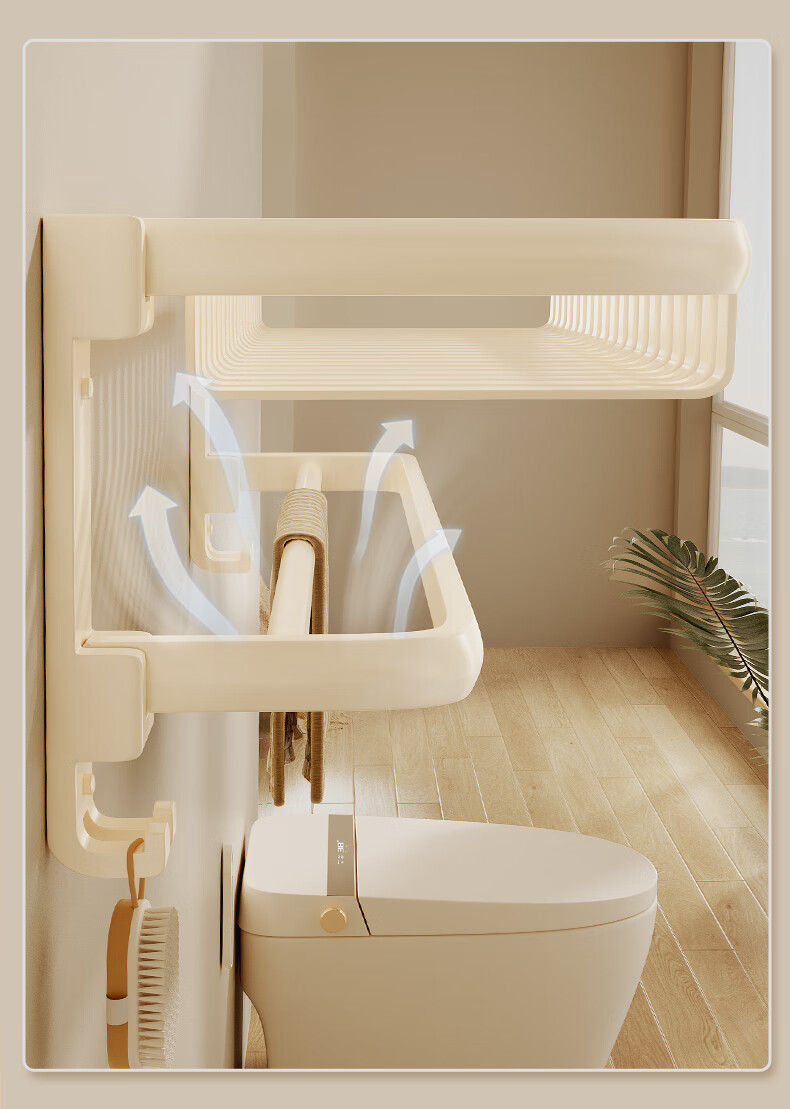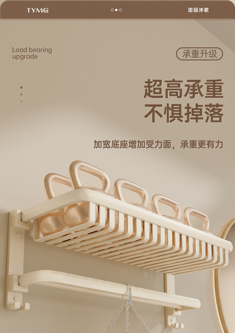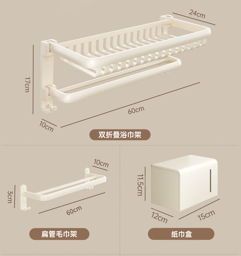 Pastoral Muge Cream Style Towel Rack No Punch Bathroom Storage Rack Bathroom Towel Rack Bathroom Toilet Wall Milk White Milk White Double Folding Mesh Basket Towel Rack 60cm