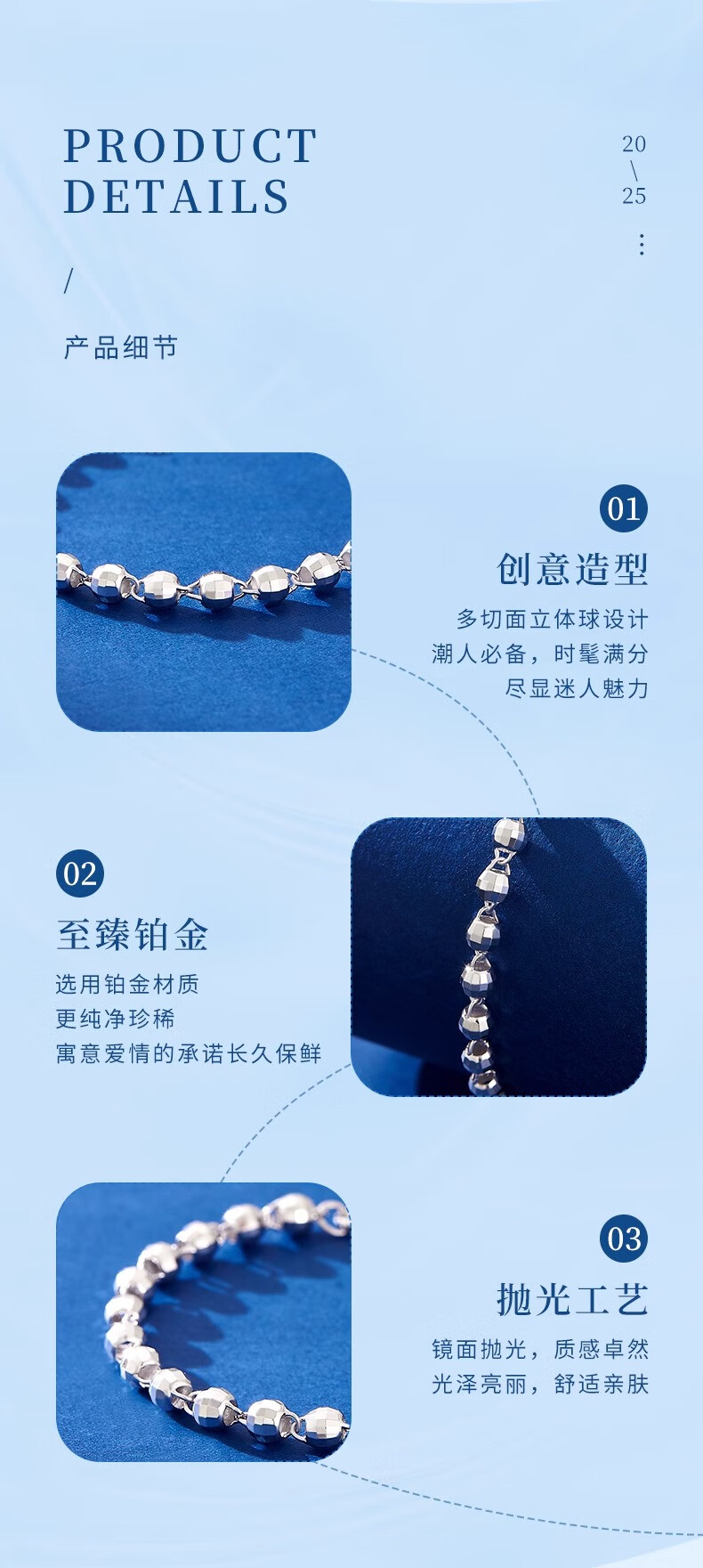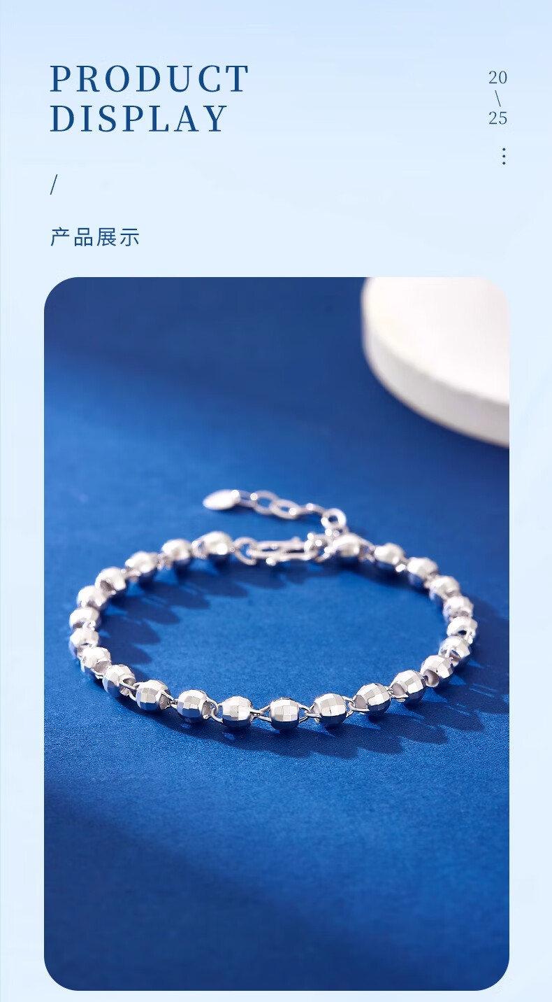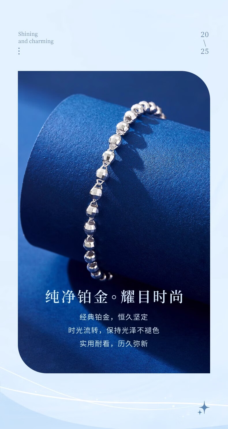 CHINA GOLD pt950 platinum bouncy bead bracelet platinum plain chain fashion jewelry Valentine's Day birthday gift for girlfriend and wife PT950 platinum bouncy bead bracelet about 5.9G