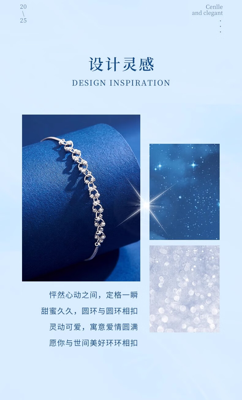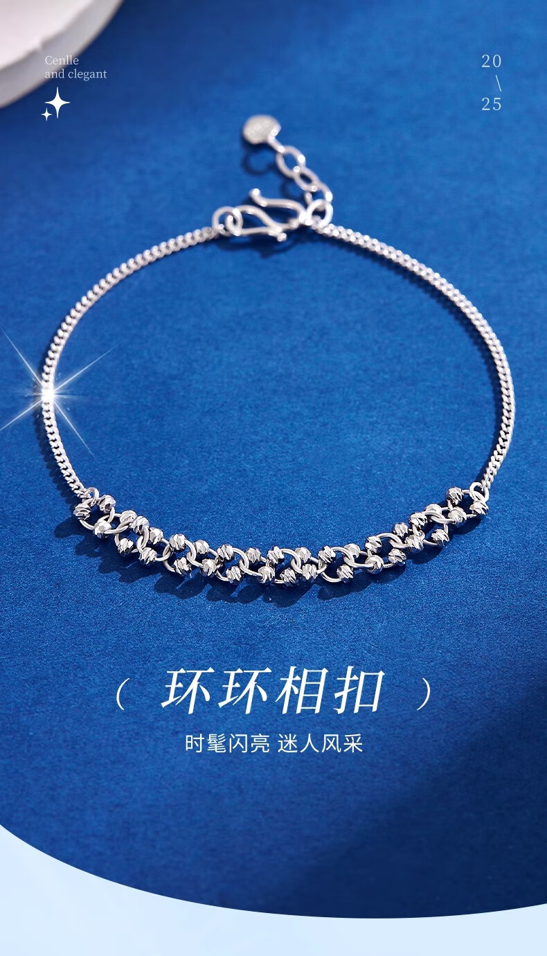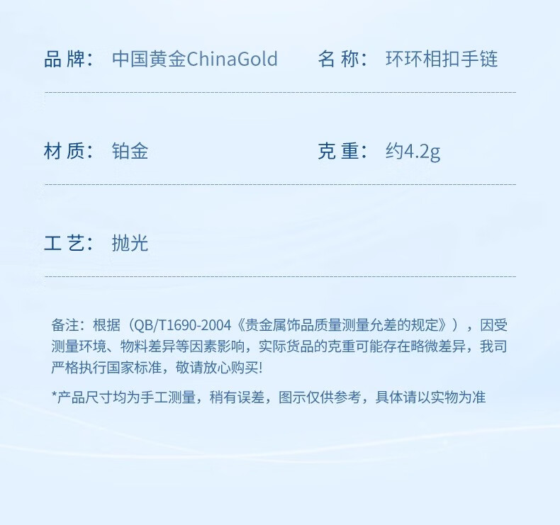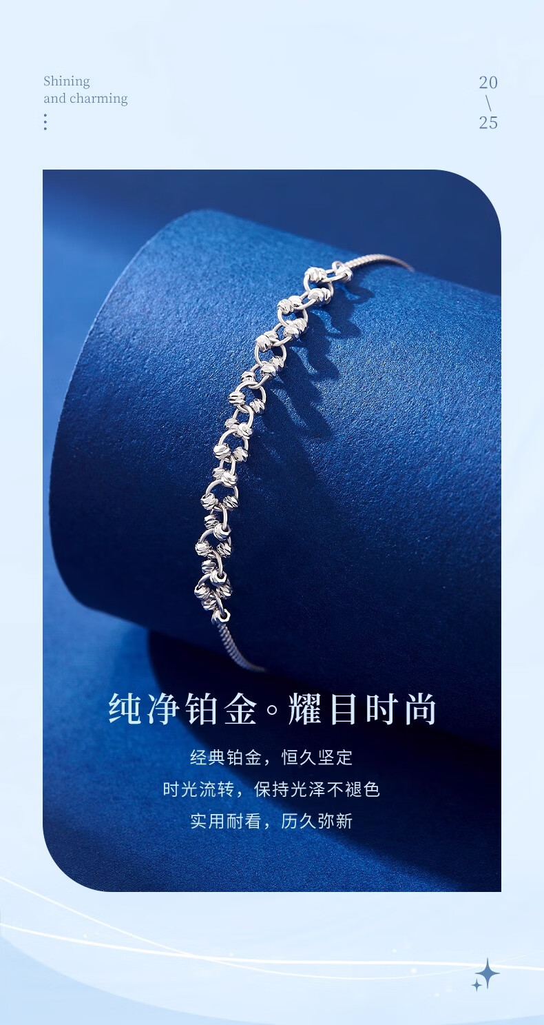 CHINA GOLD PT950 platinum interlocking bracelet, fashionable and simple platinum bracelet, practical Valentine's Day birthday gift for girls, PT950 platinum interlocking bracelet, about 4.2g