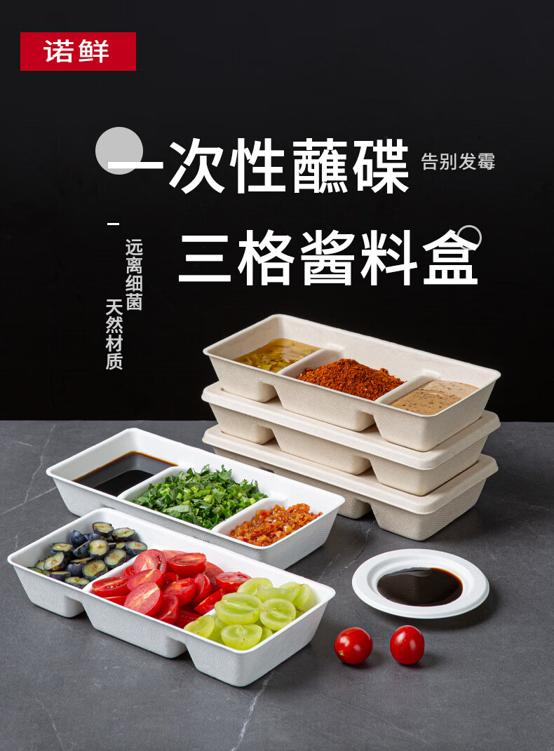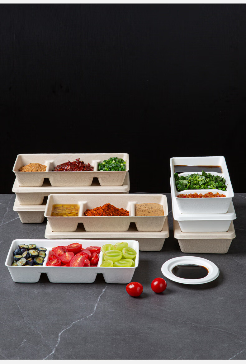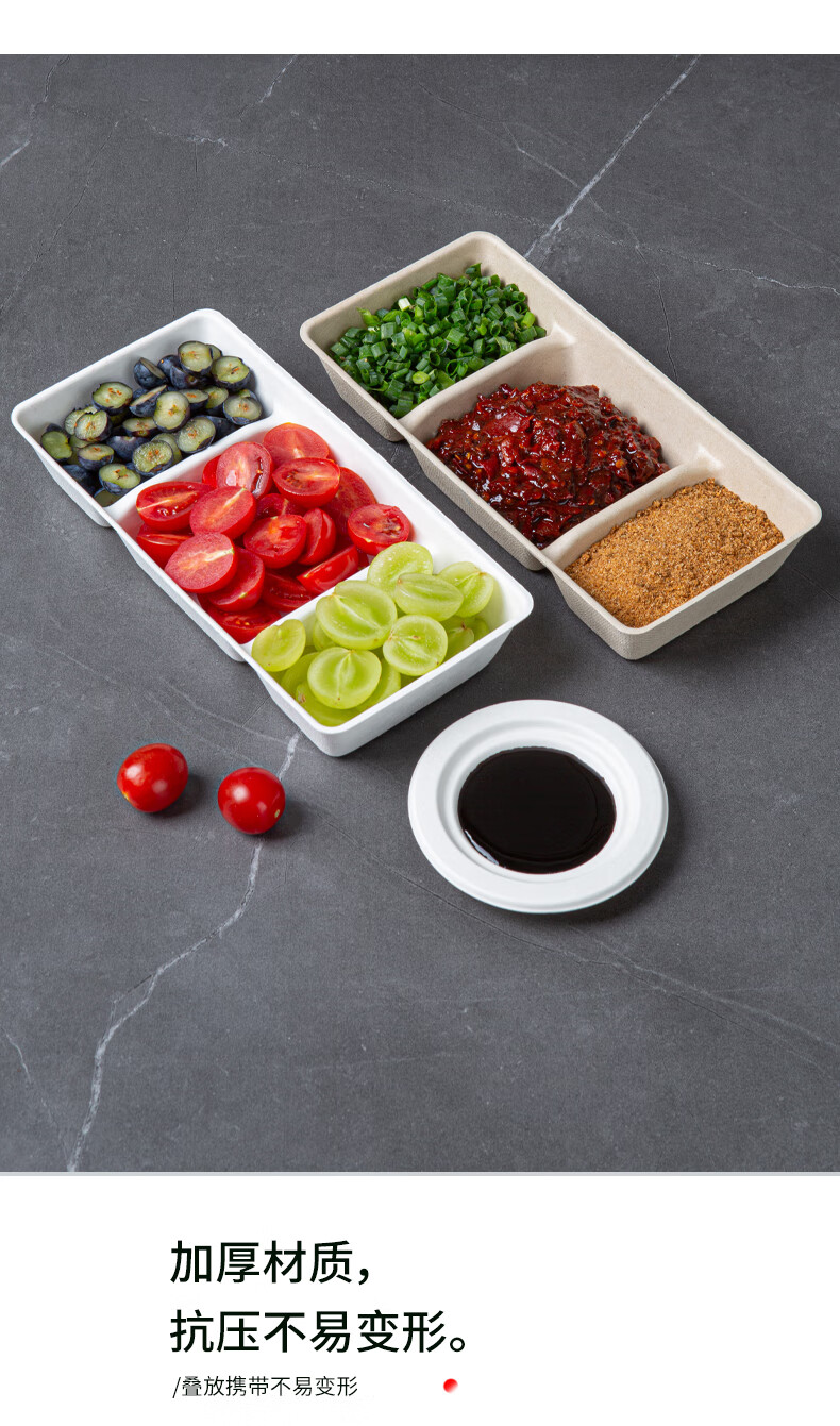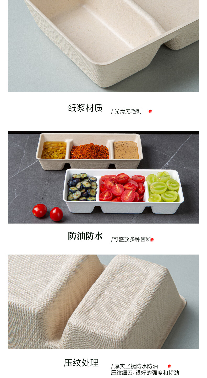Nuoxian disposable paper pulp dipping dish sauce dish barbecue three-compartment dipping box hot pot small dinner plate flavor dish soy sauce vinegar dish three-compartment material box original color 20 pieces