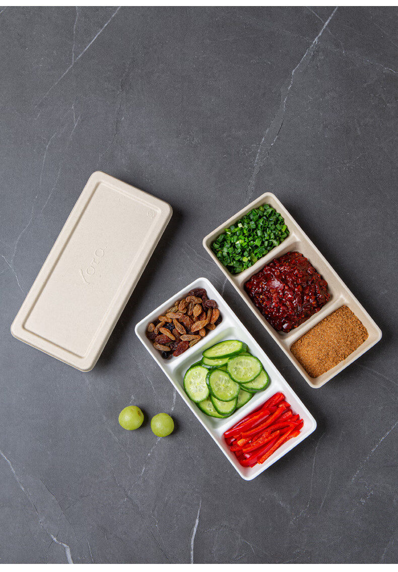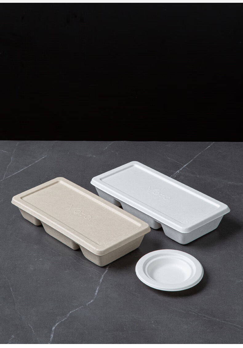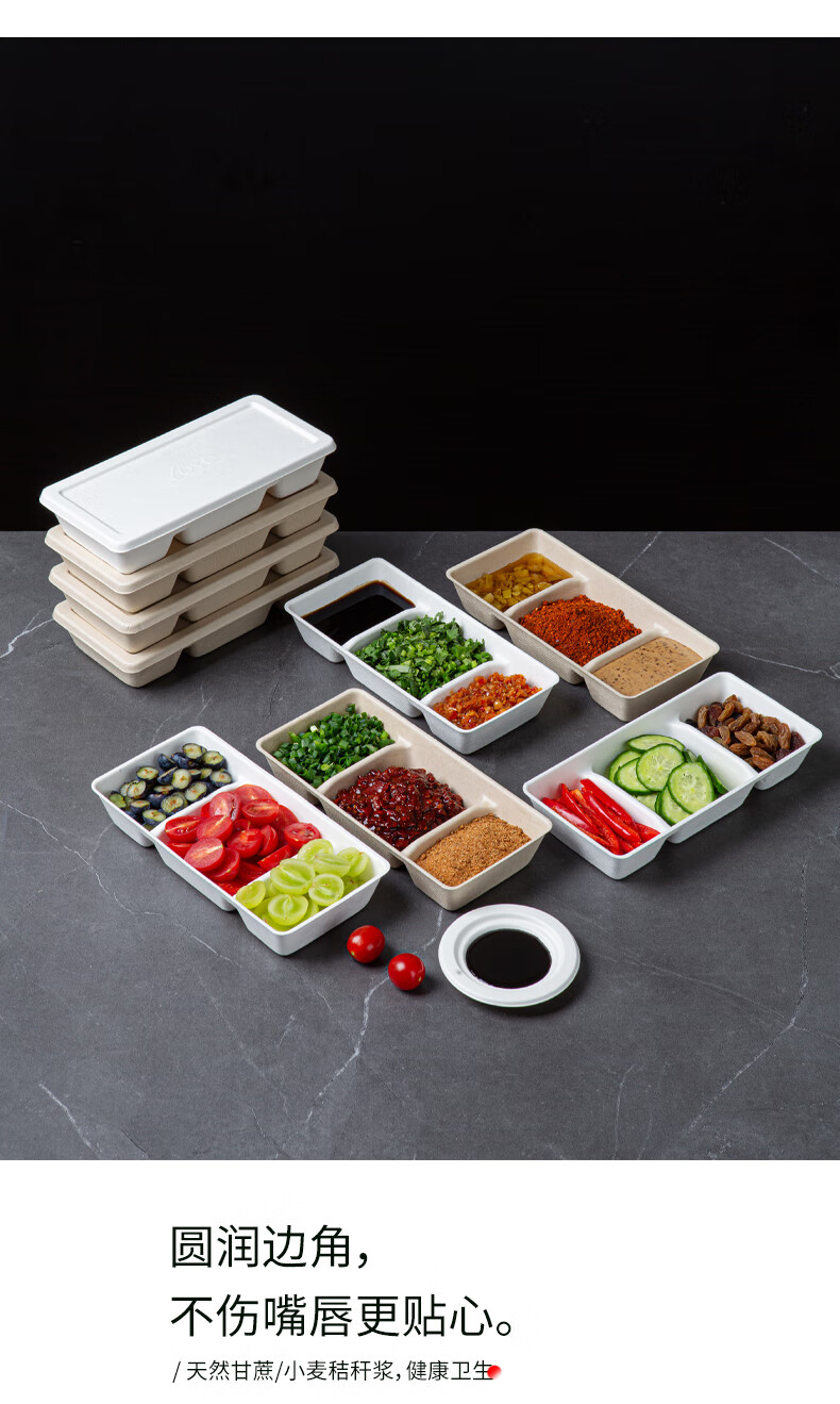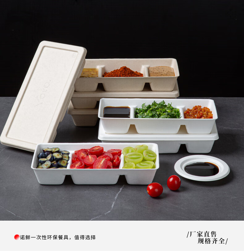 Nuoxian disposable paper pulp dipping dish sauce dish barbecue three-compartment dipping box hot pot small dinner plate flavor dish soy sauce vinegar dish three-compartment material box original color 20 pieces