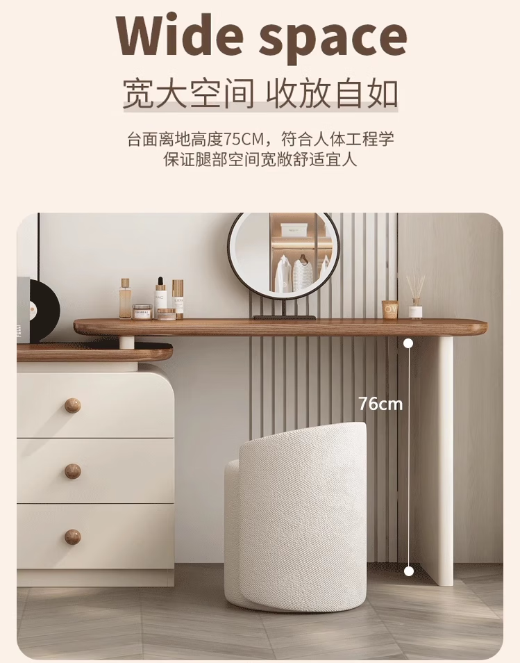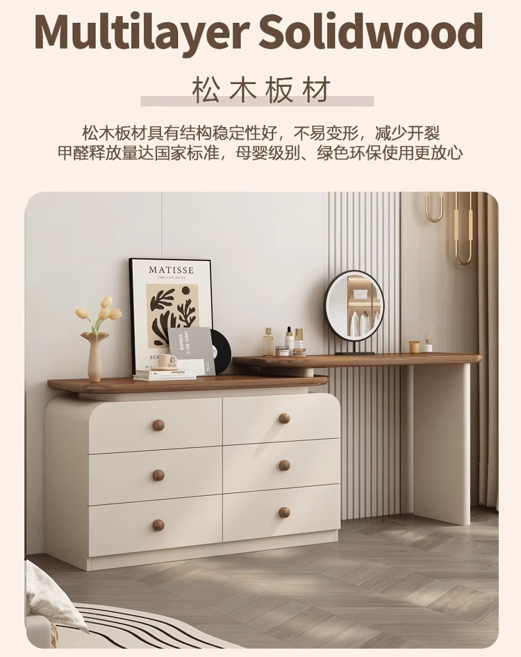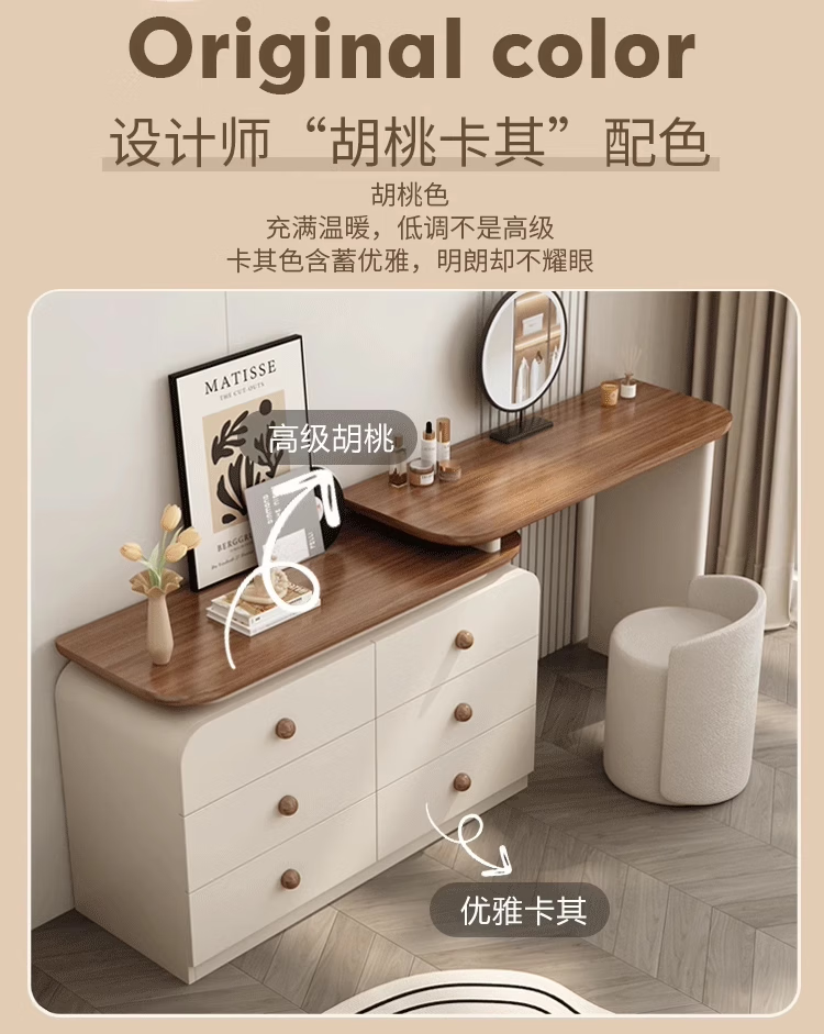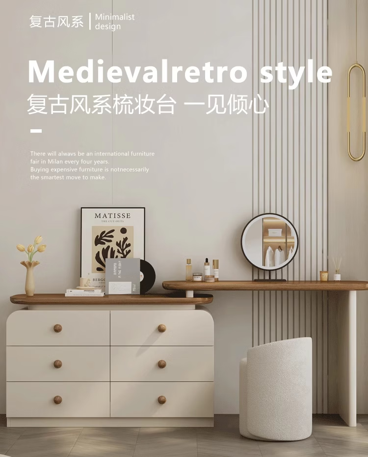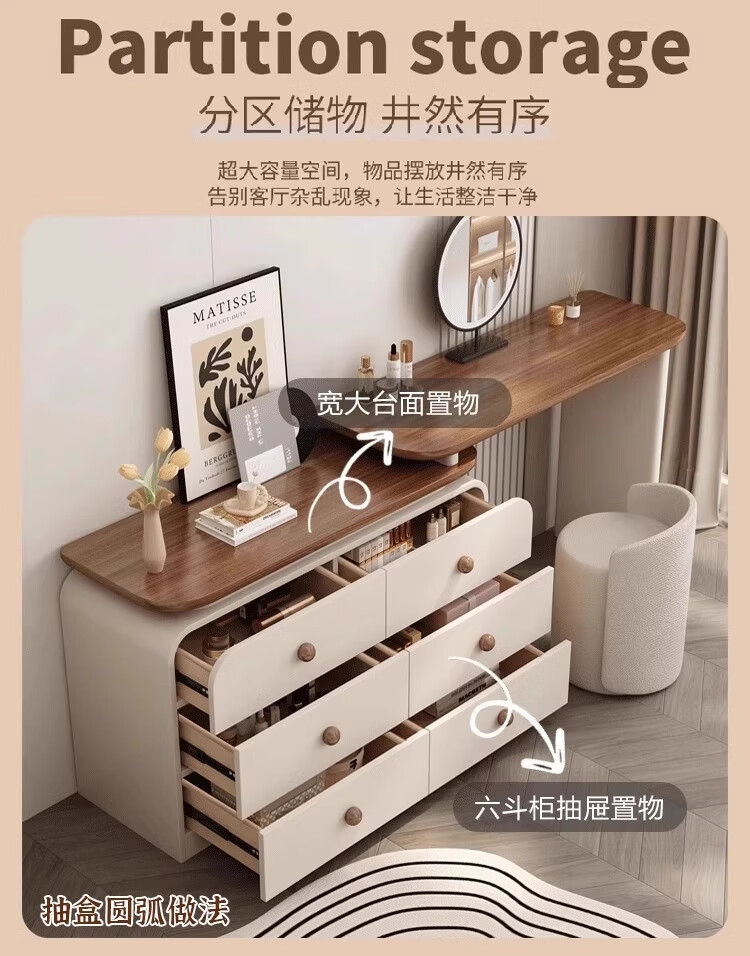 Naihe 2025 new style bedroom medieval cream style dressing table simple modern walnut drawer cabinet integrated solid wood dressing table walnut 120 dressing table + six drawer cabinet (without mirror)