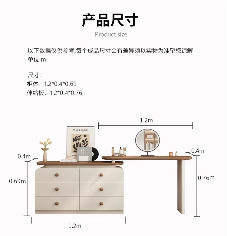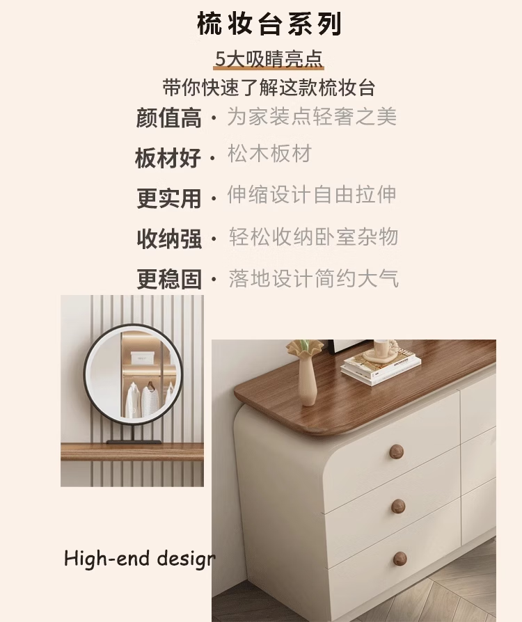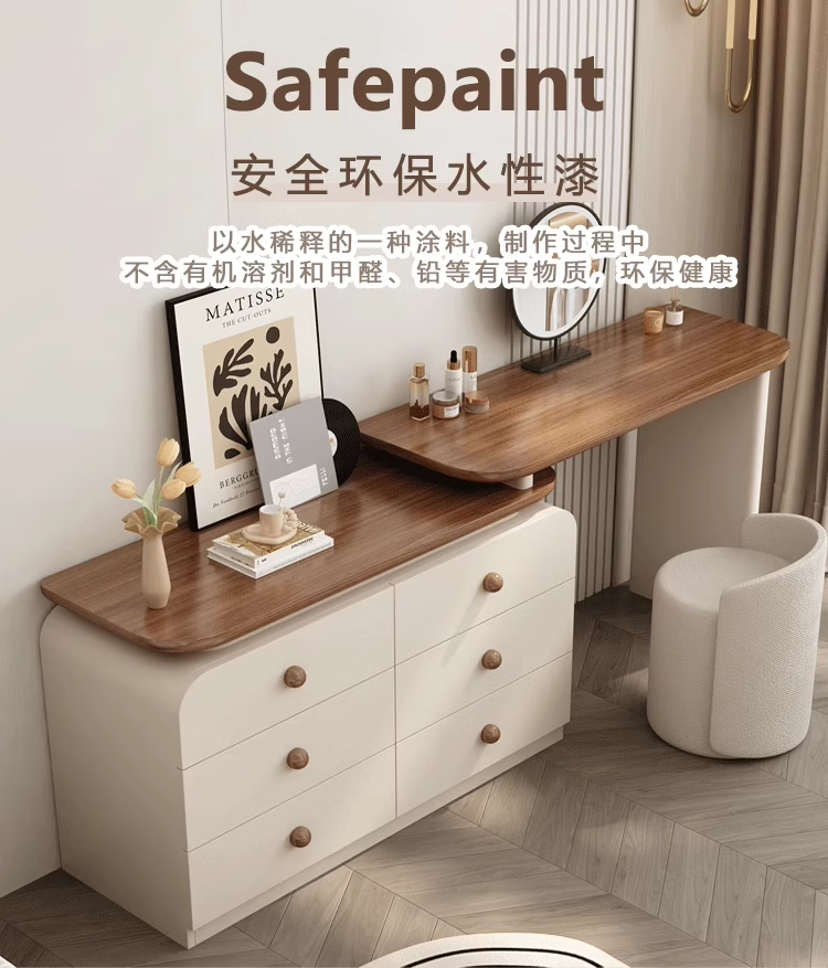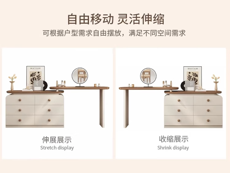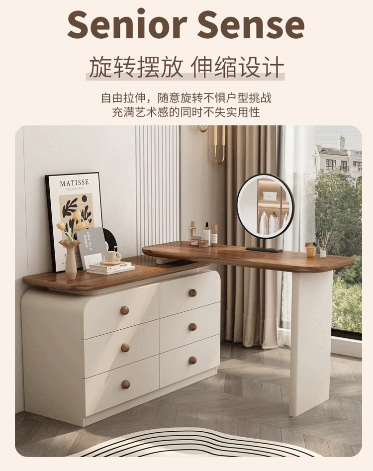 Naihe 2025 new style bedroom medieval cream style dressing table simple modern walnut drawer cabinet integrated solid wood dressing table walnut 120 dressing table + six drawer cabinet (without mirror)