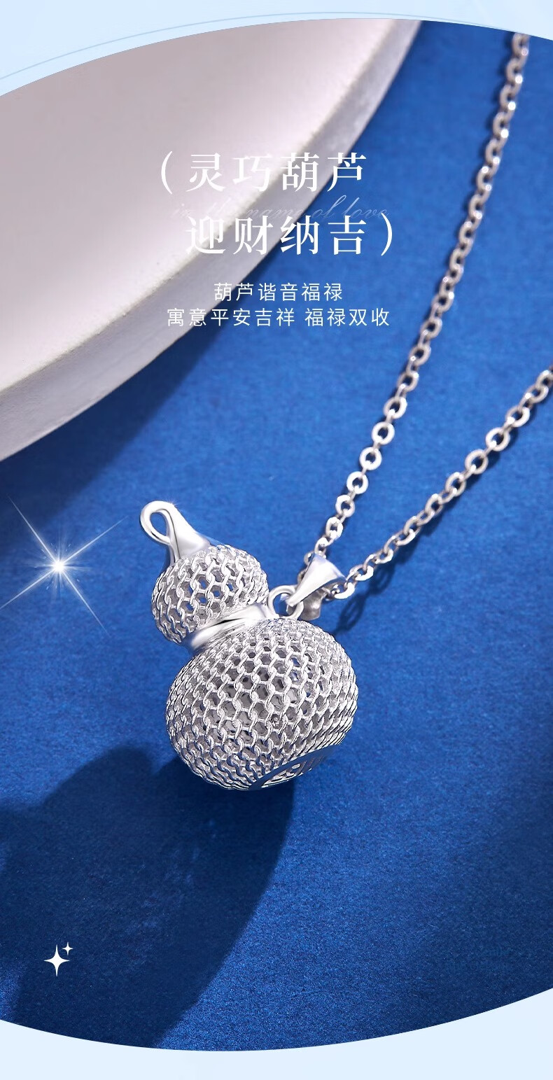 CHINA GOLD PT950 platinum hollow gourd pendant for women new platinum clavicle chain Valentine's Day practical birthday gift for girls PT950 platinum hollow gourd pendant about 5.1g free silver chain