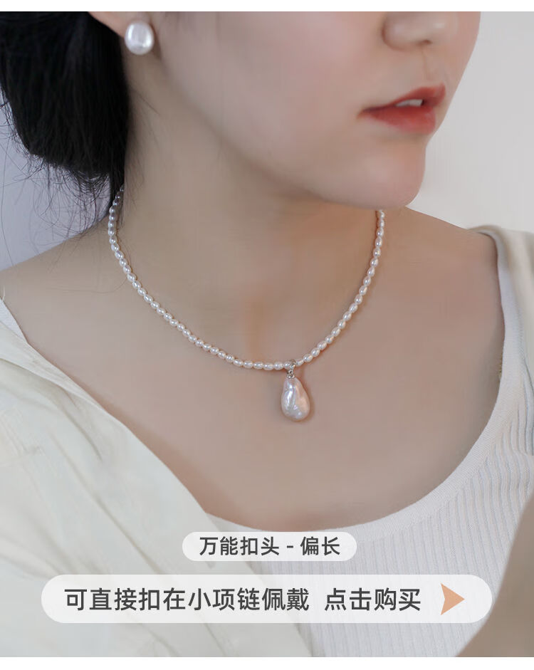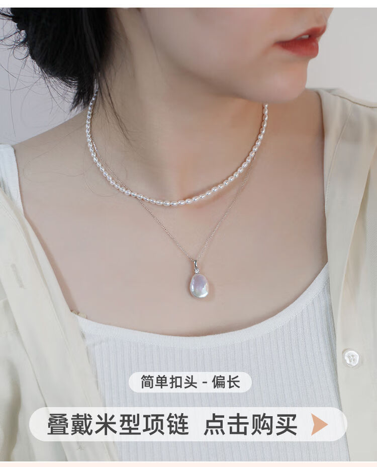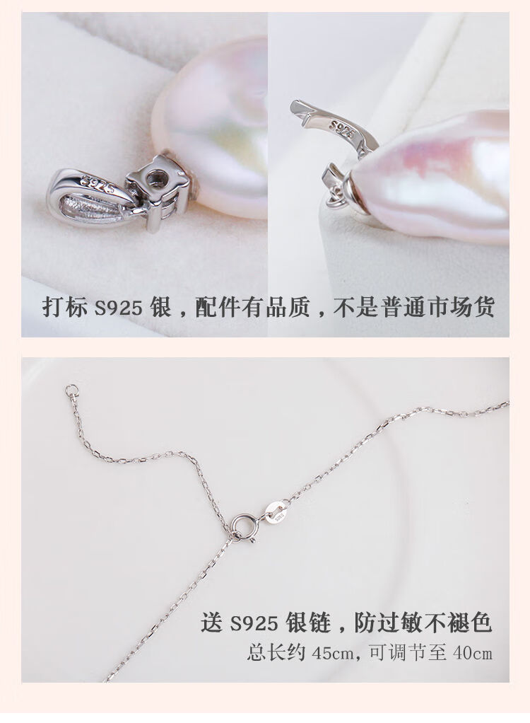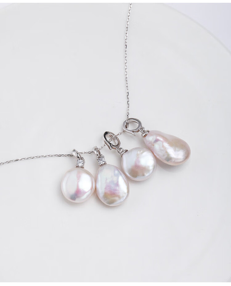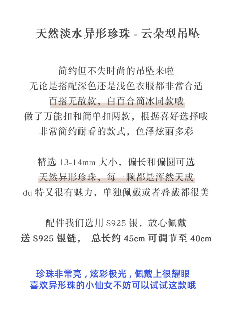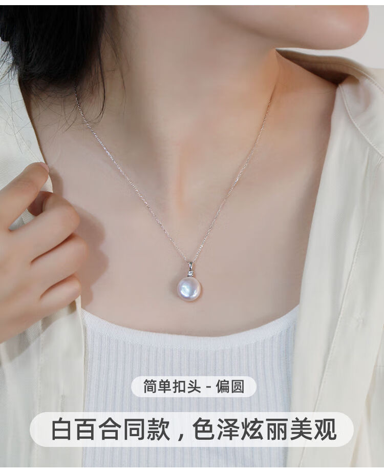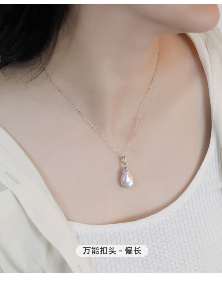 Junpo Baroque special-shaped pearl pendant, the sun is with me, white lily, Jian Bing, the same style, colorful bright cloud pearl necklace, universal buckle style - round, cross chain 45cm 13-14mm