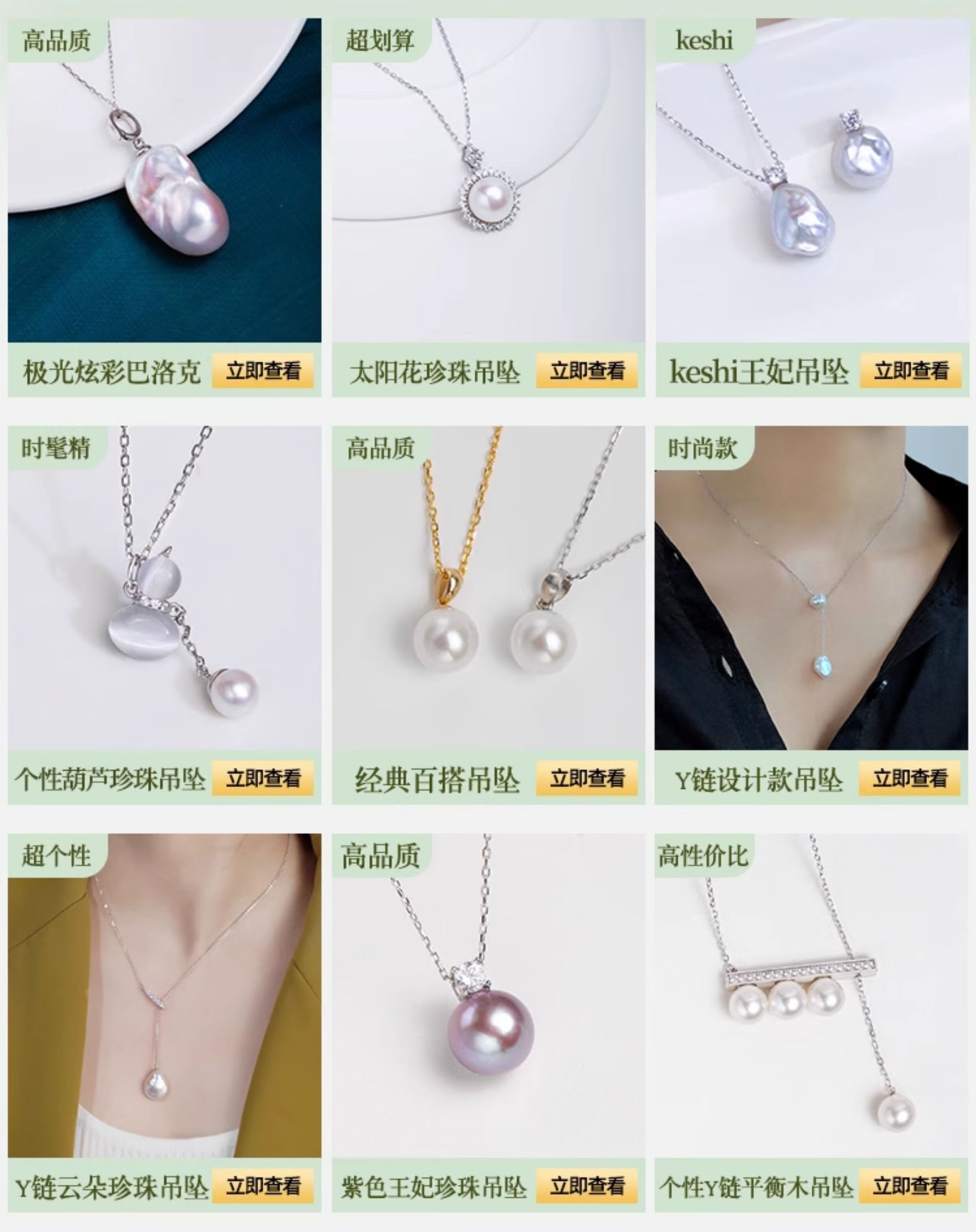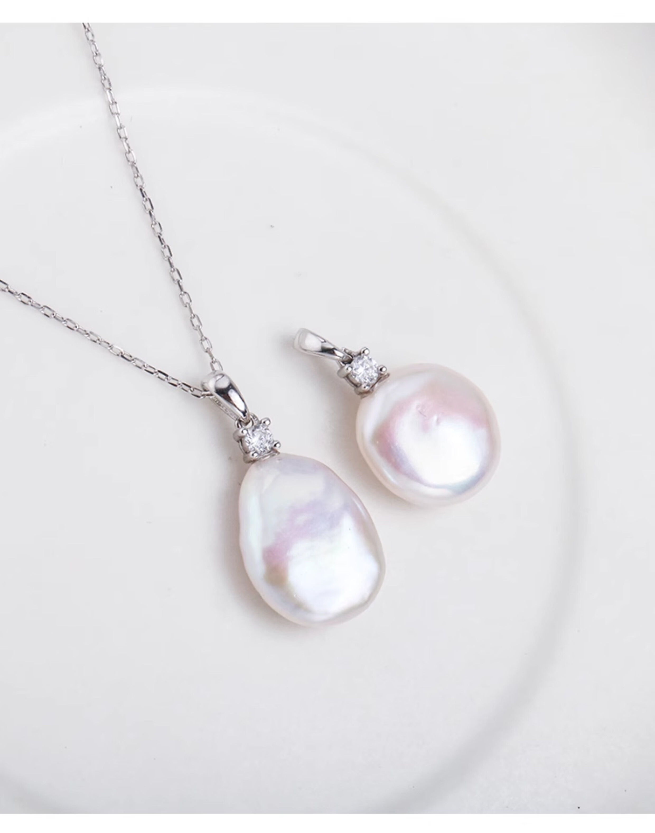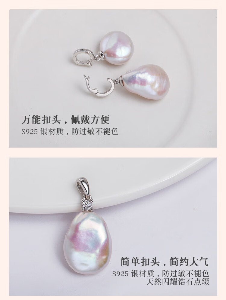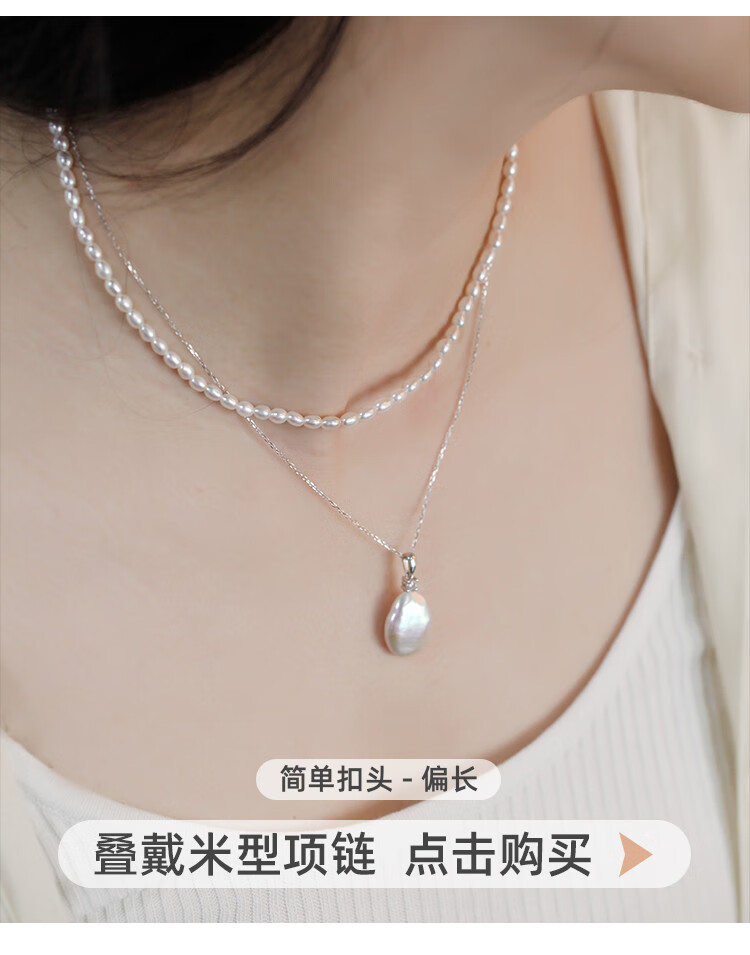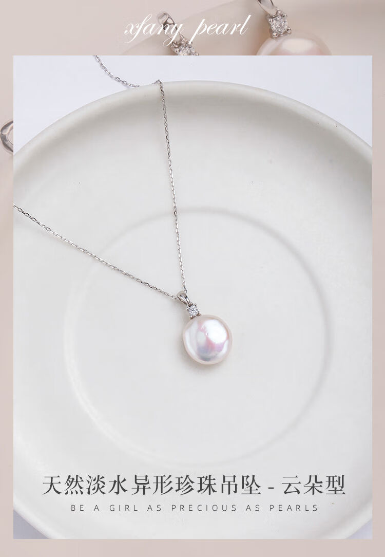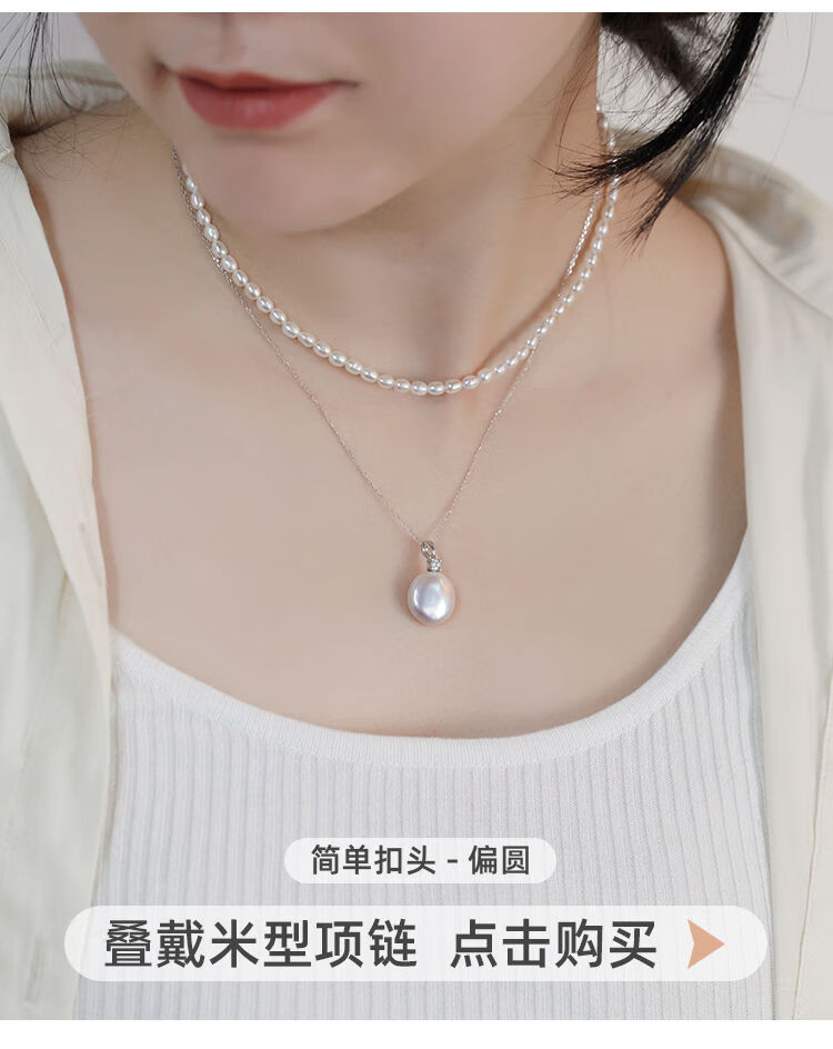 Junpo Baroque special-shaped pearl pendant, the sun is with me, white lily, Jian Bing, the same style, colorful bright cloud pearl necklace, universal buckle style - round, cross chain 45cm 13-14mm