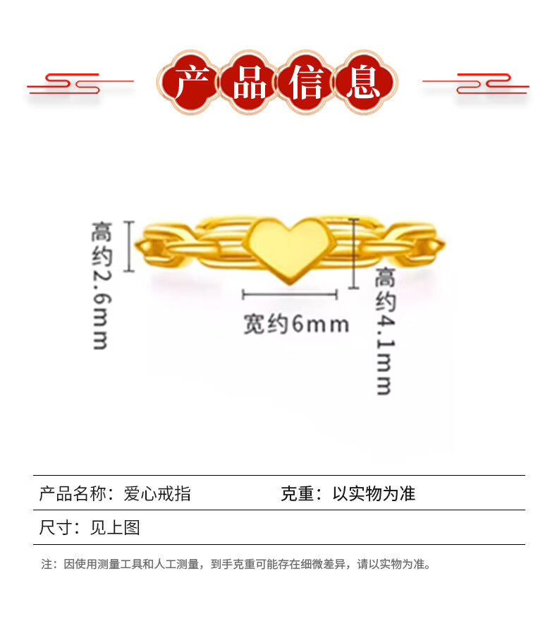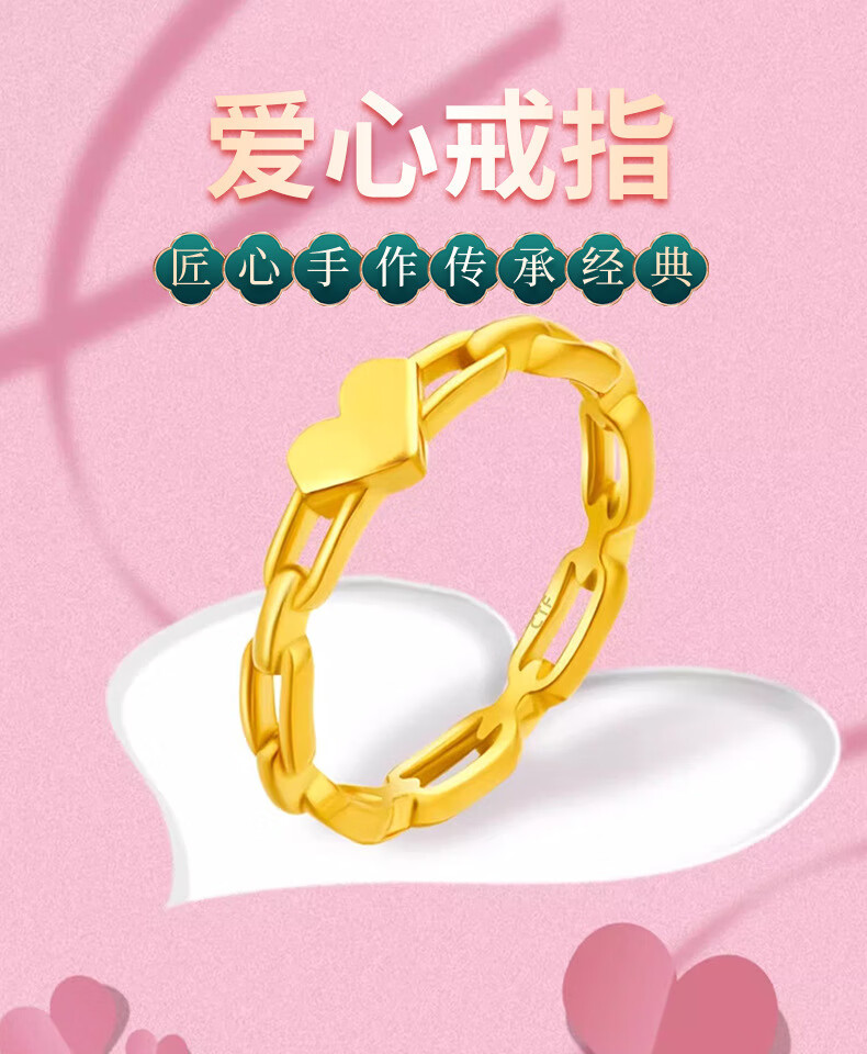Taijufu pure gold-wrapped silver 999G gold color love ring for women, fashionable, fresh and versatile, women's index finger ring, love ring, thicker gold layer, standard