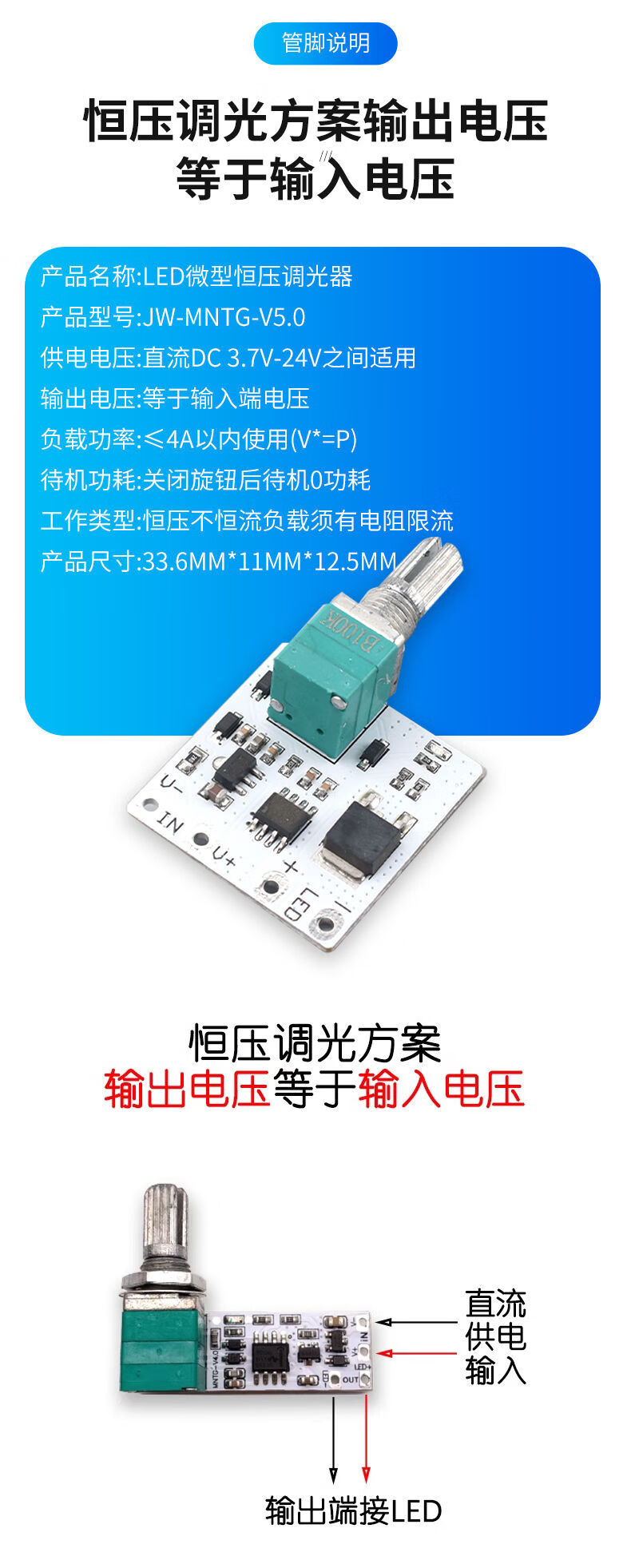 LED micro dimmer constant voltage light bar microscope live broadcast fill light small desk lamp knob potentiometer no flicker LED constant voltage dimmer whiteboard strip maximum 4A