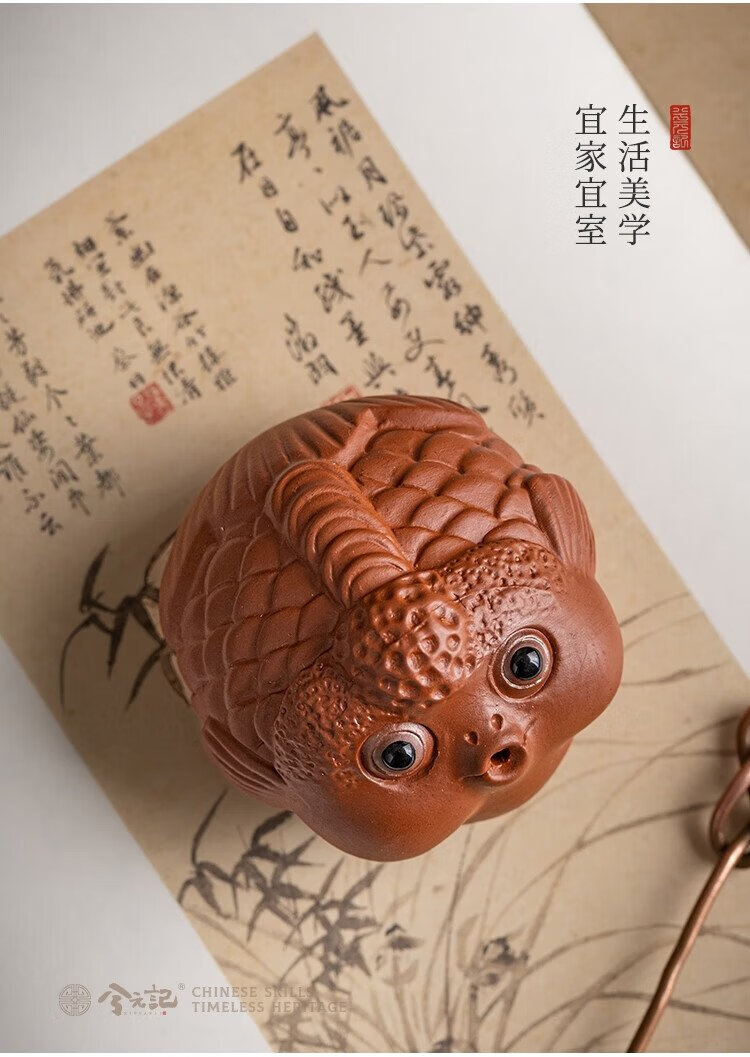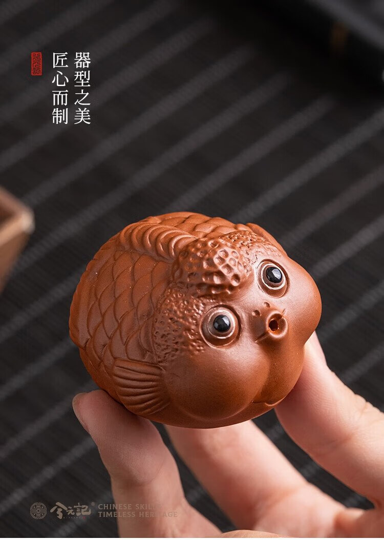 Xiyuanji purple sand and cinnabar bubble fish tea pet boutique can raise creative bubble fish tea table tea play ornaments purple sand and cinnabar bubble fish mini tea pet