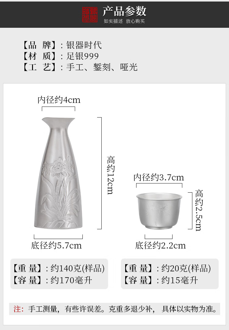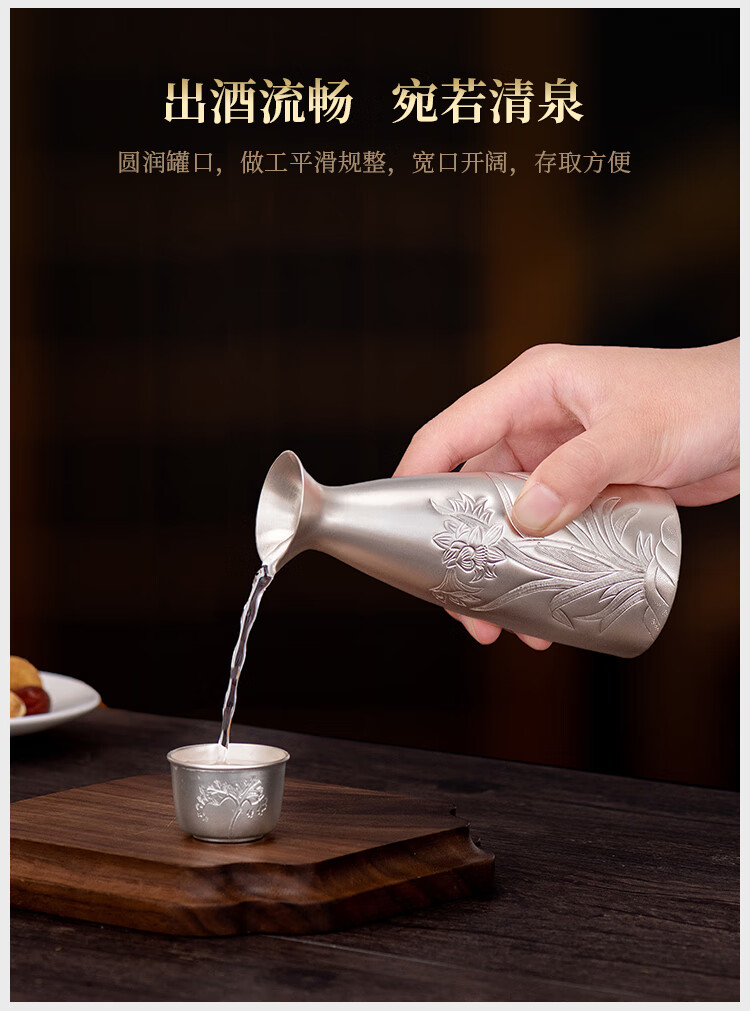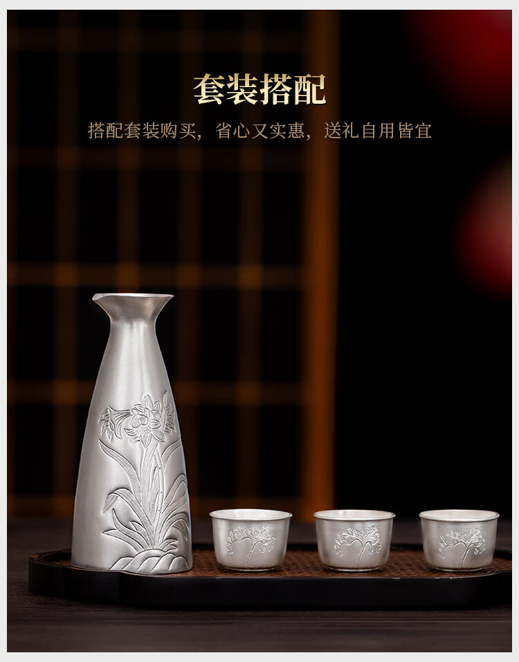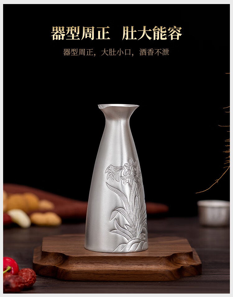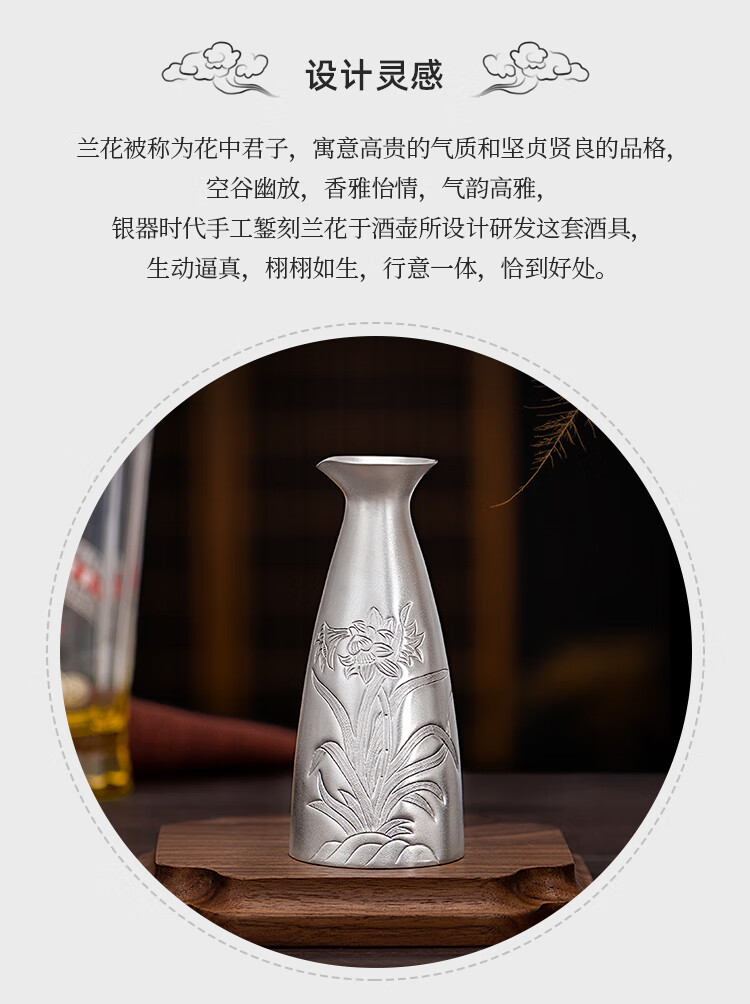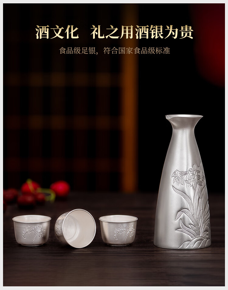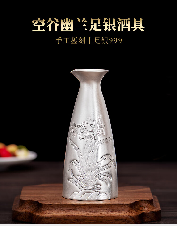 Silver Age New Product Pure Silver 999 Orchid Wine Flask Decanter Household Wine Set Sake Cup Pure Silver Wine Divider Flask 150g + Certificate