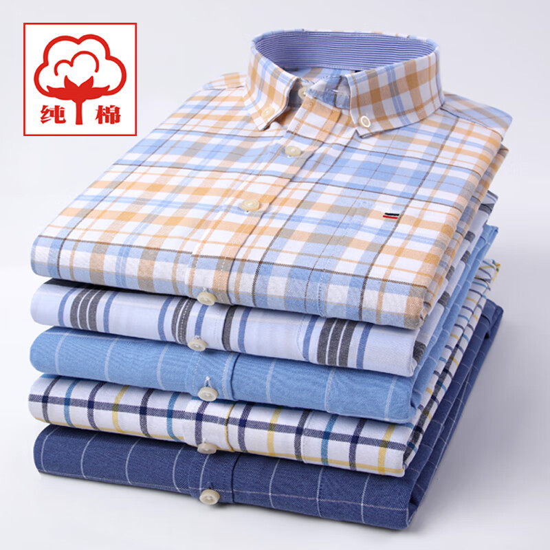 Spring and Autumn Pure Cotton Shirt Men's Long Sleeve Young and Middle-aged Solid Color Dad Cotton Casual Men's Oxford Striped Shirt 619 XL (41)
