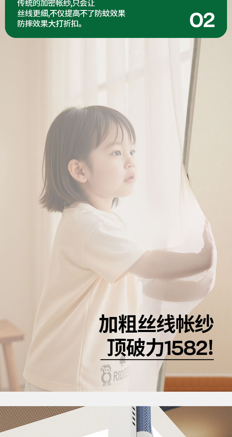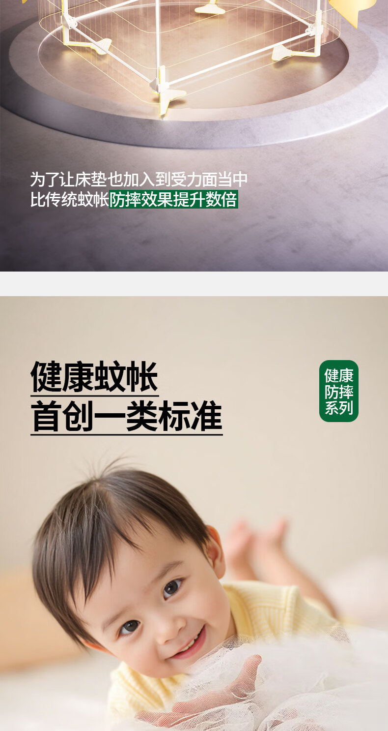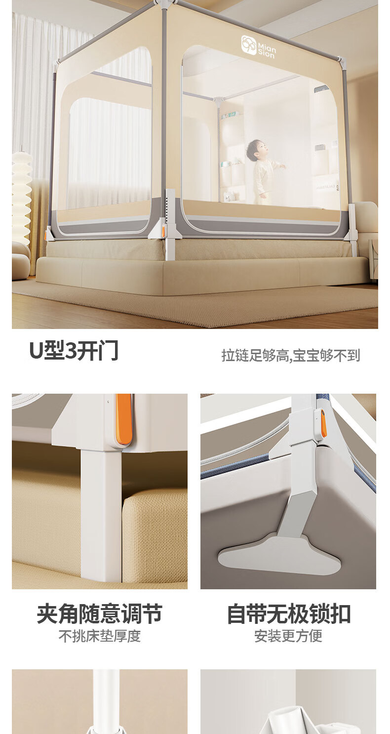 Miansiying mother and baby anti-fall mosquito net frame 1.8 2m Class A household bed sheet fence installation-free yurt full-bottom mosquito net ivory gray-with gear lifting base 2m*1.5m*1.7m丨full bottom thickened anti-fall