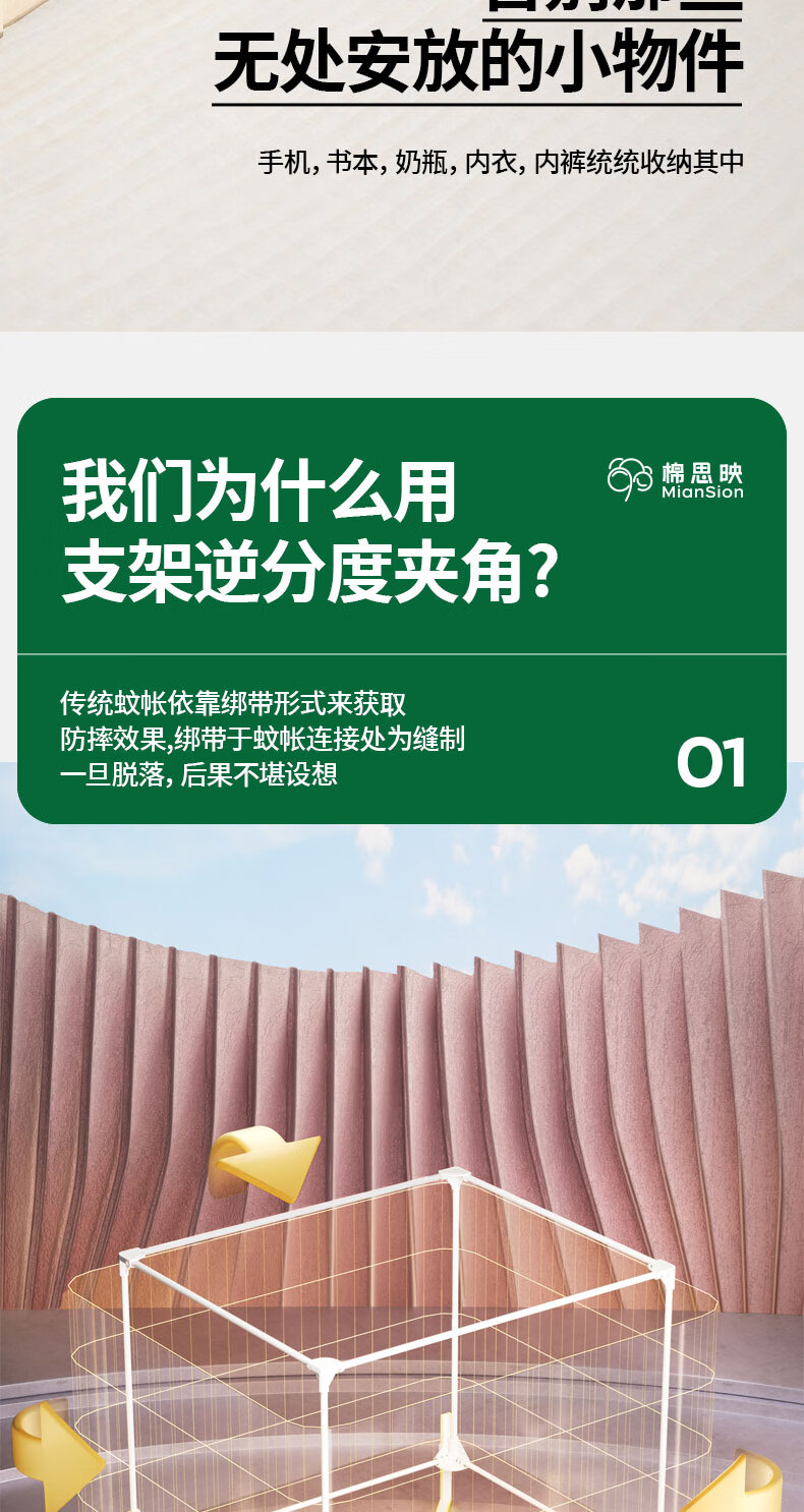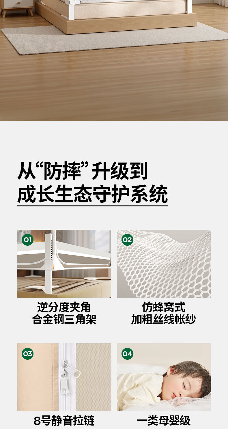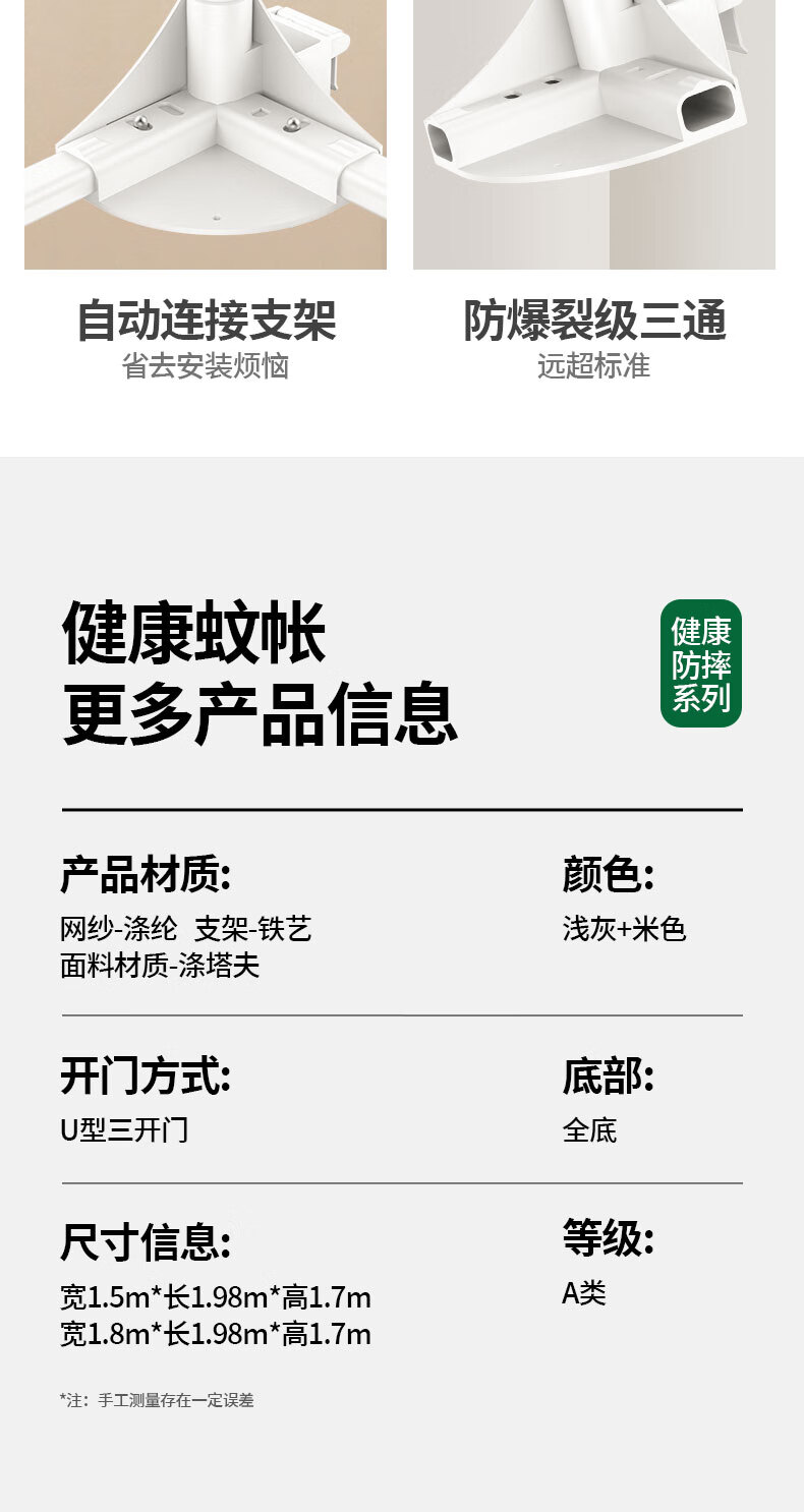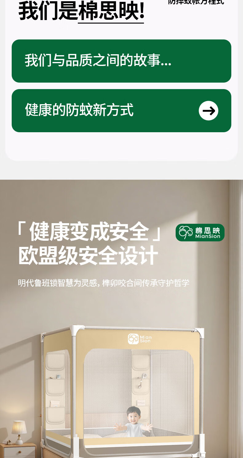 Miansiying mother and baby anti-fall mosquito net frame 1.8 2m Class A household bed sheet fence installation-free yurt full-bottom mosquito net ivory gray-with gear lifting base 2m*1.5m*1.7m丨full bottom thickened anti-fall
