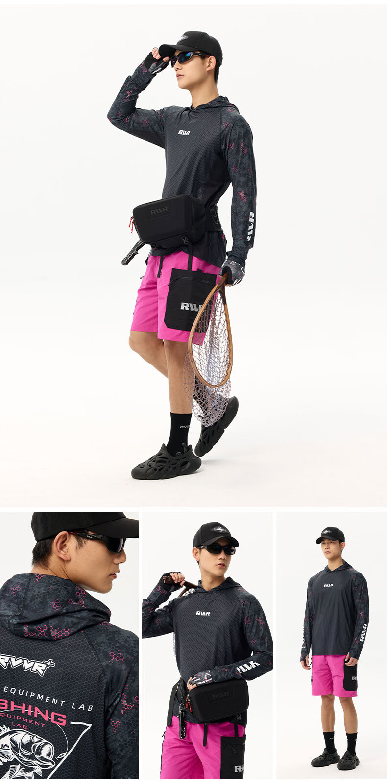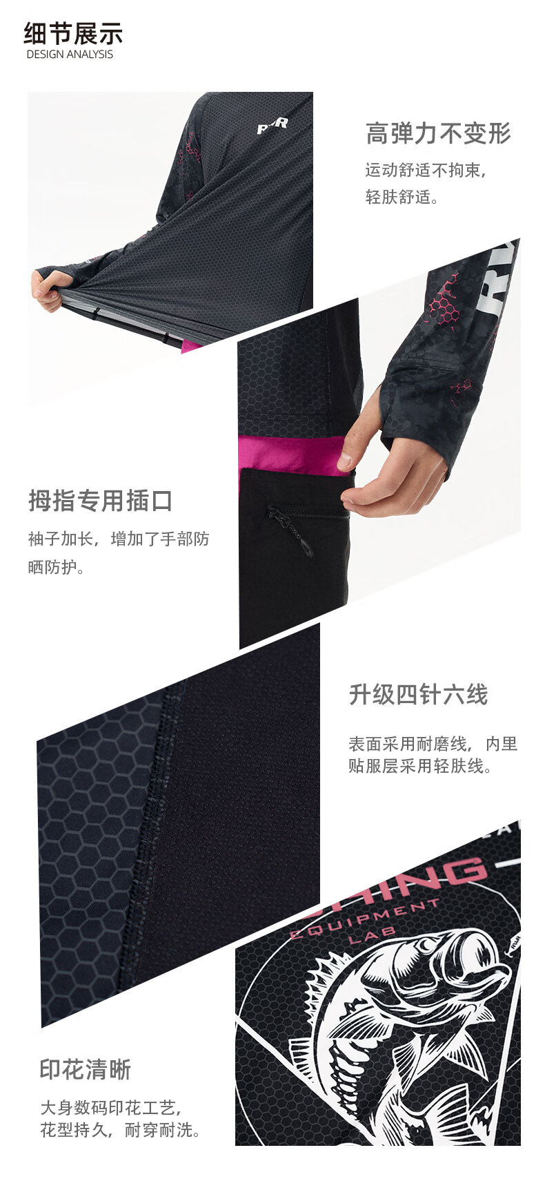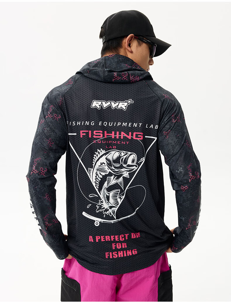 RVVR25 style sun protection clothing hooded ice silk sun protection clothing for fishing outdoor lures spring and summer long-sleeved fishing clothing breathable and quick-drying pink perch honeycomb S