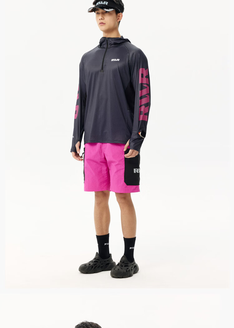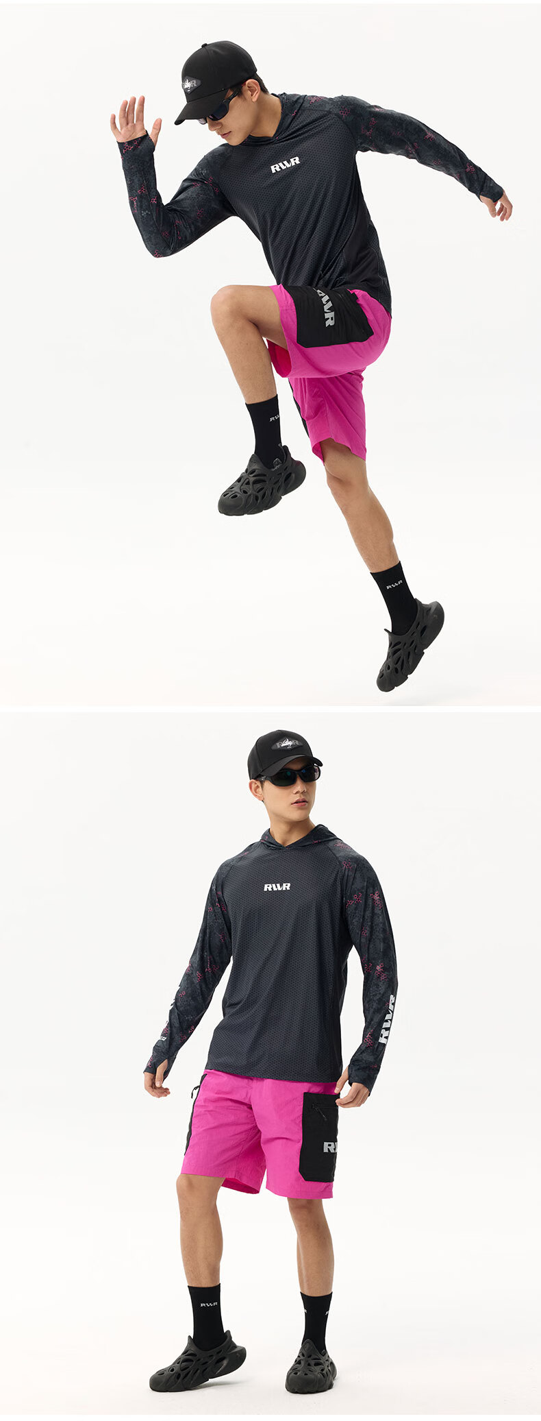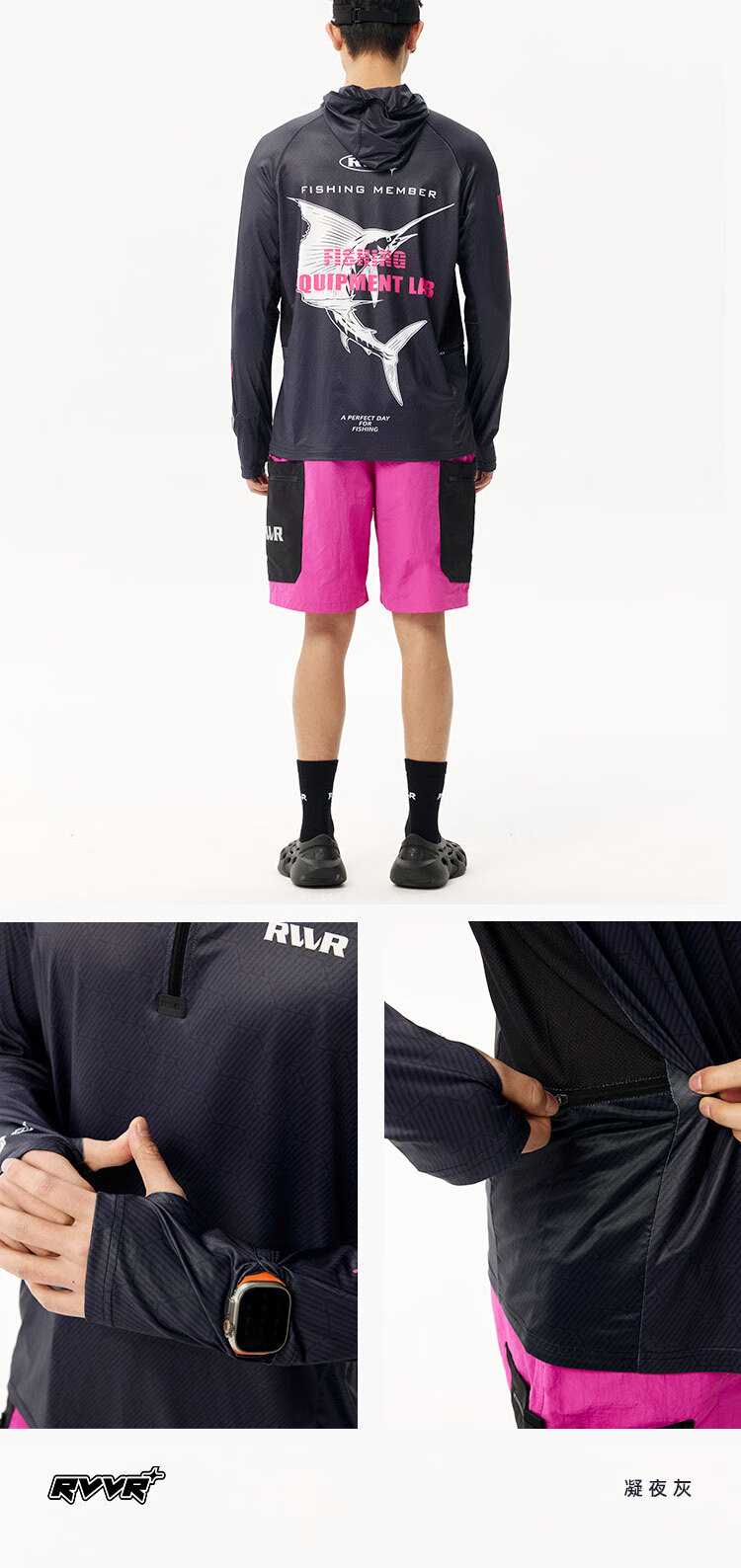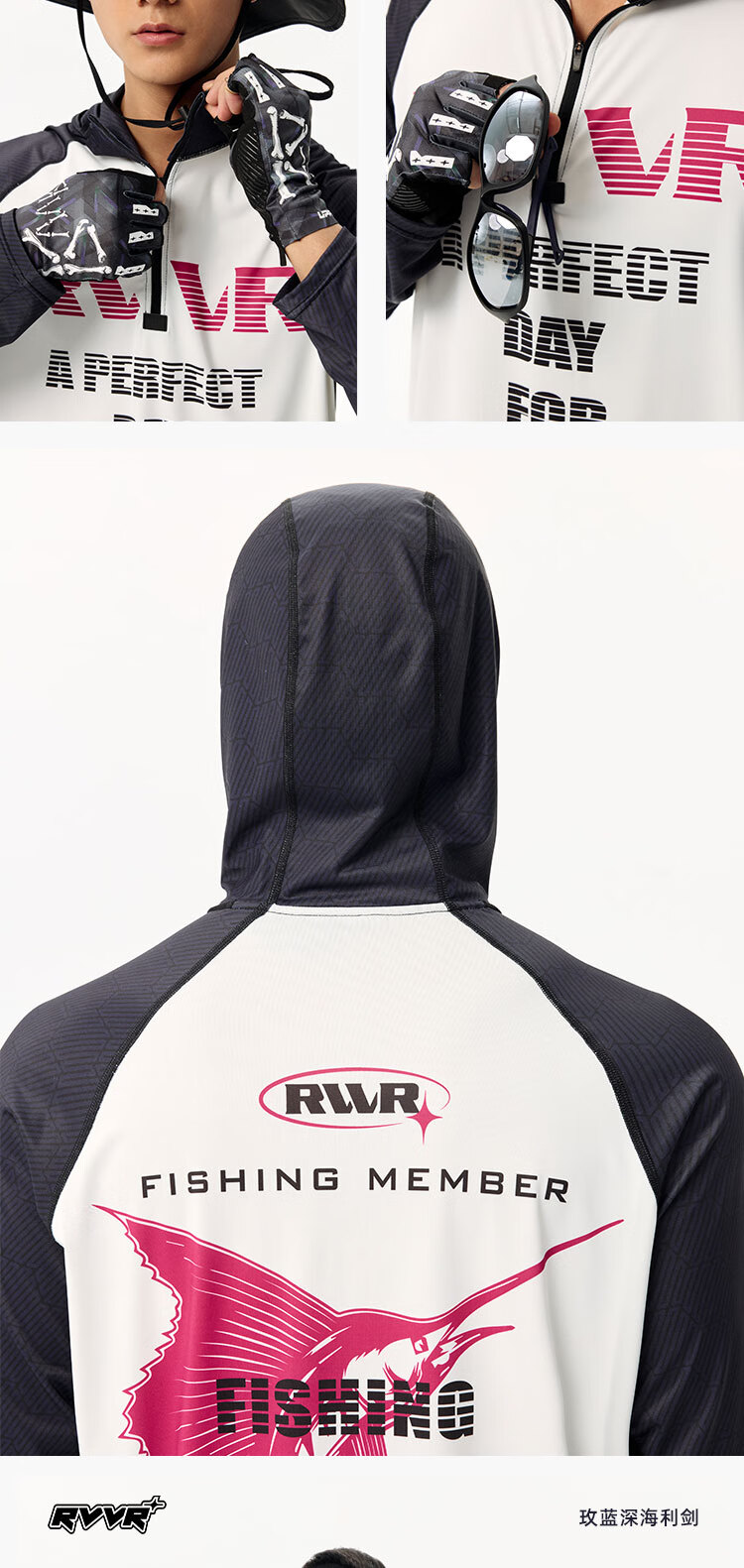 RVVR25 style sun protection clothing hooded ice silk sun protection clothing for fishing outdoor lures spring and summer long-sleeved fishing clothing breathable and quick-drying pink perch honeycomb S