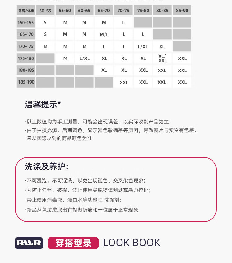 China (cm) 165 / 88-90 170 / 96-98 175 / 108-110 180 / 118-122 185 / 126-130
