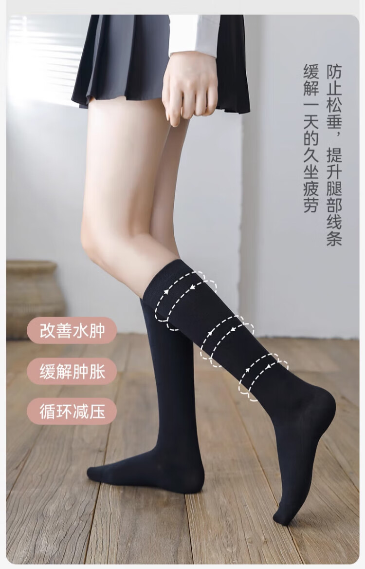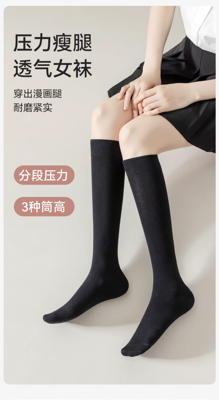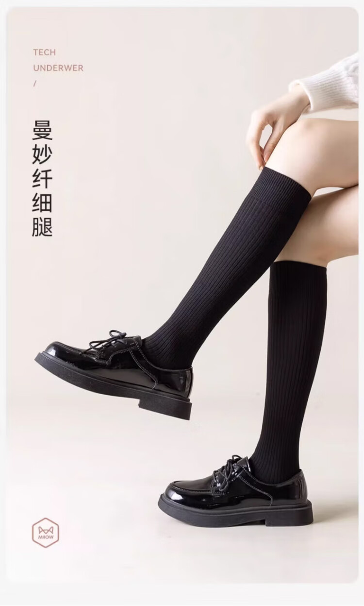 Cat Man Pressure Calf Socks Women's Pressure Calf Socks JK Over-the-Knee Socks Spring and Summer Knee Thigh Black Mid-length Socks Autumn Pressure to Make You Slim Black 58cm One Size