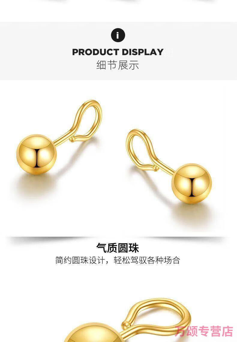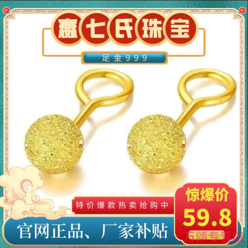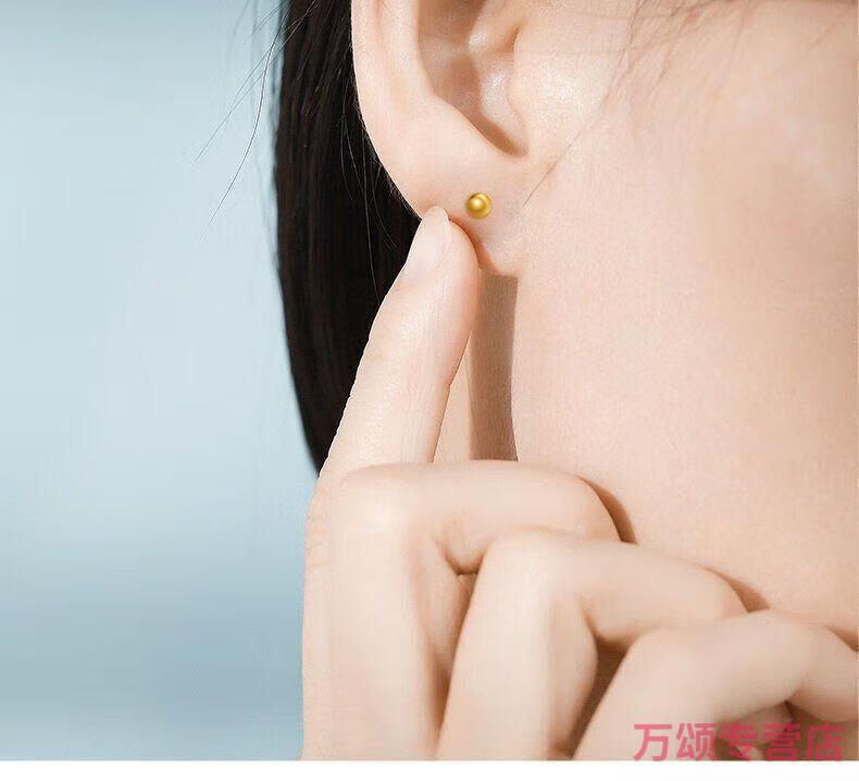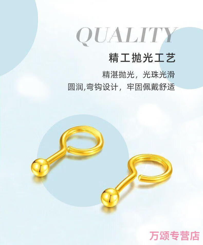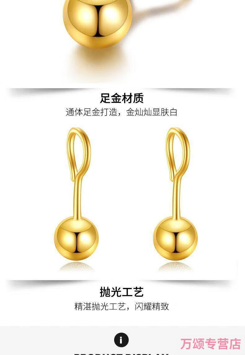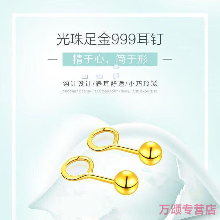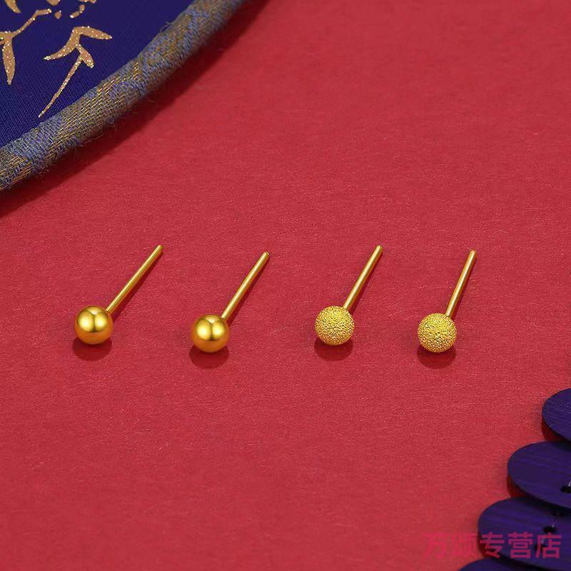 KZD925 silver earrings small gold beads gold-plated glossy round beads 5G earrings curved hook Qixi 925 silver glossy small ear hooks Lao Fengxiang 1.6g collection to get a certificate + receipt + gift box