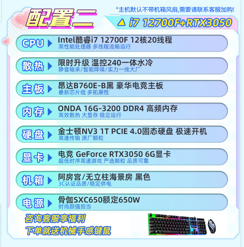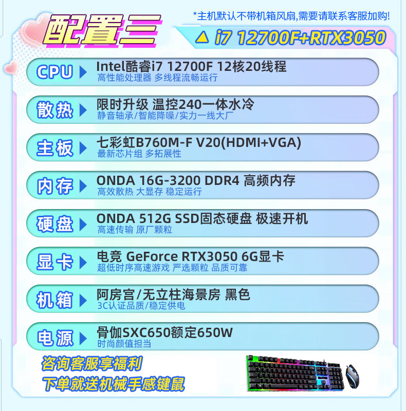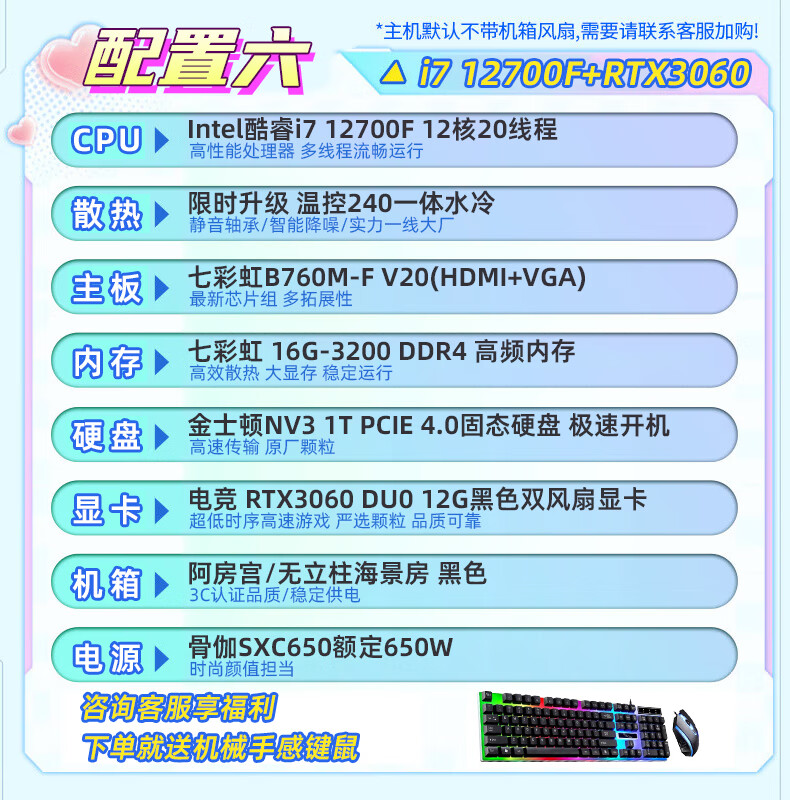 CZZ Core i7 12700F/B760M-F/RTX 4060 Office Designer Gaming Desktop Assembled Computer Desktop Host Complete Machine Full WiFi i7 12700F/B760E-B/512G