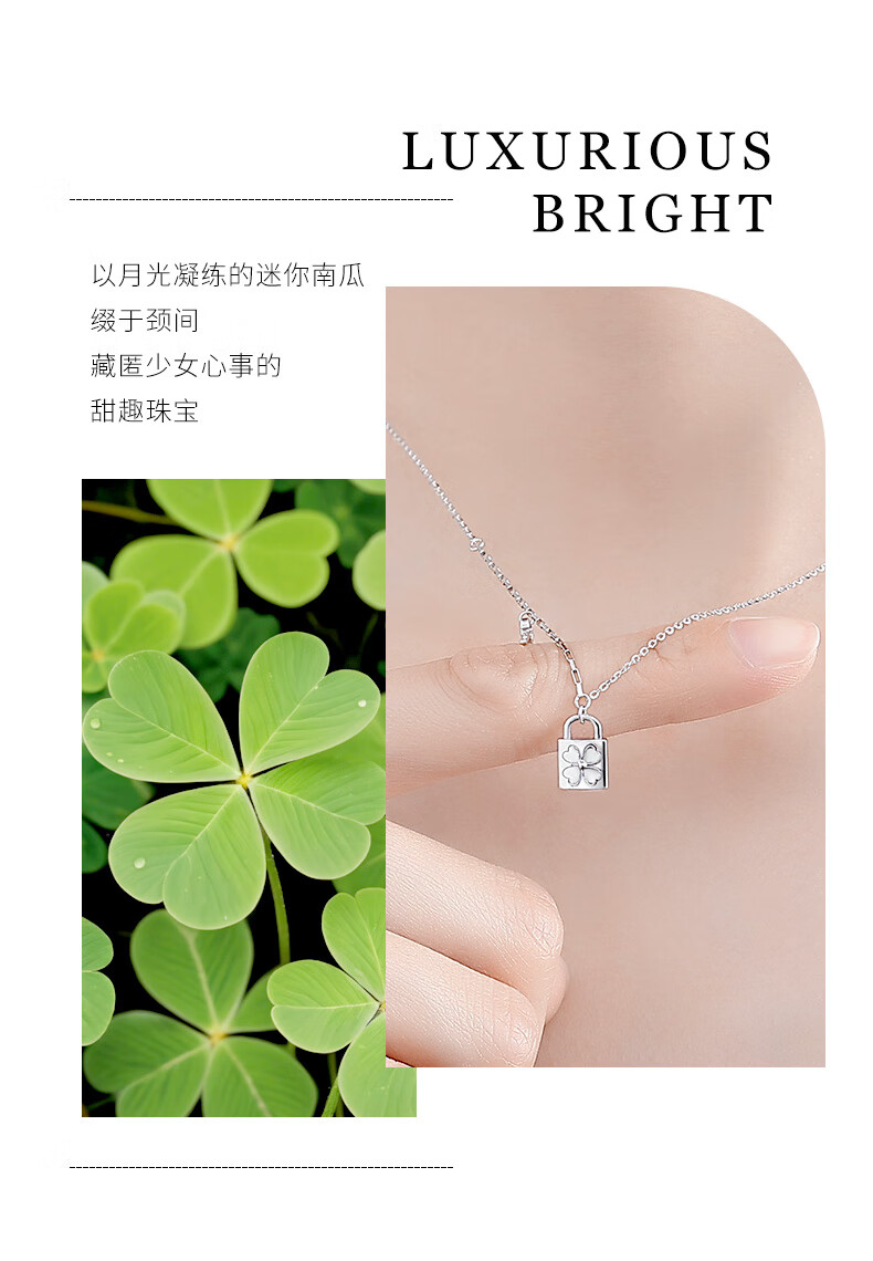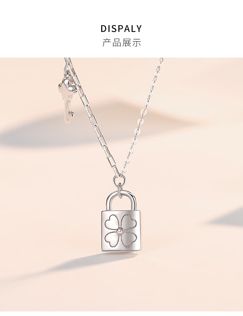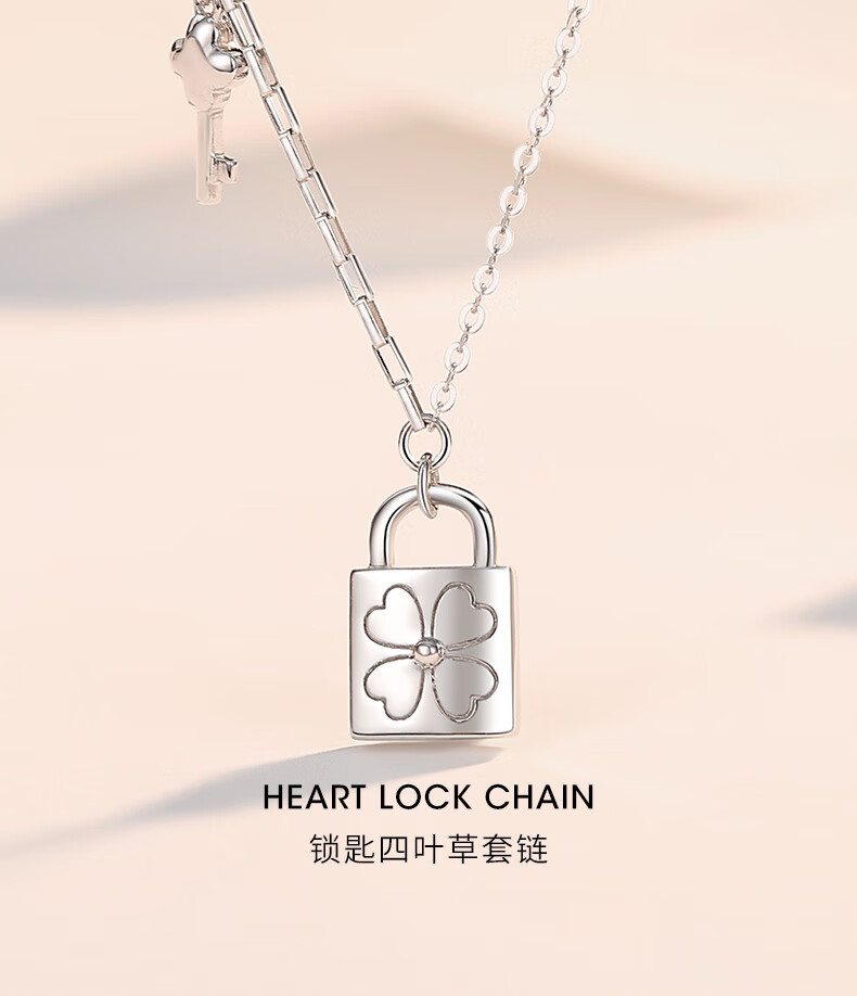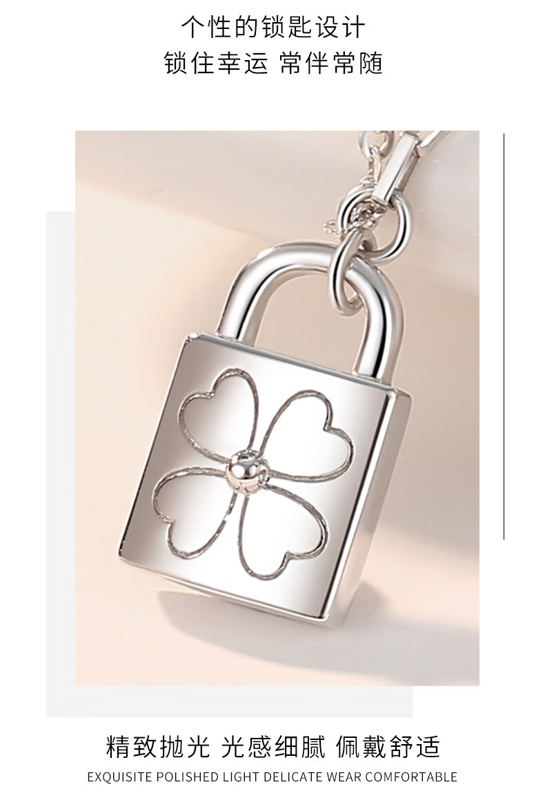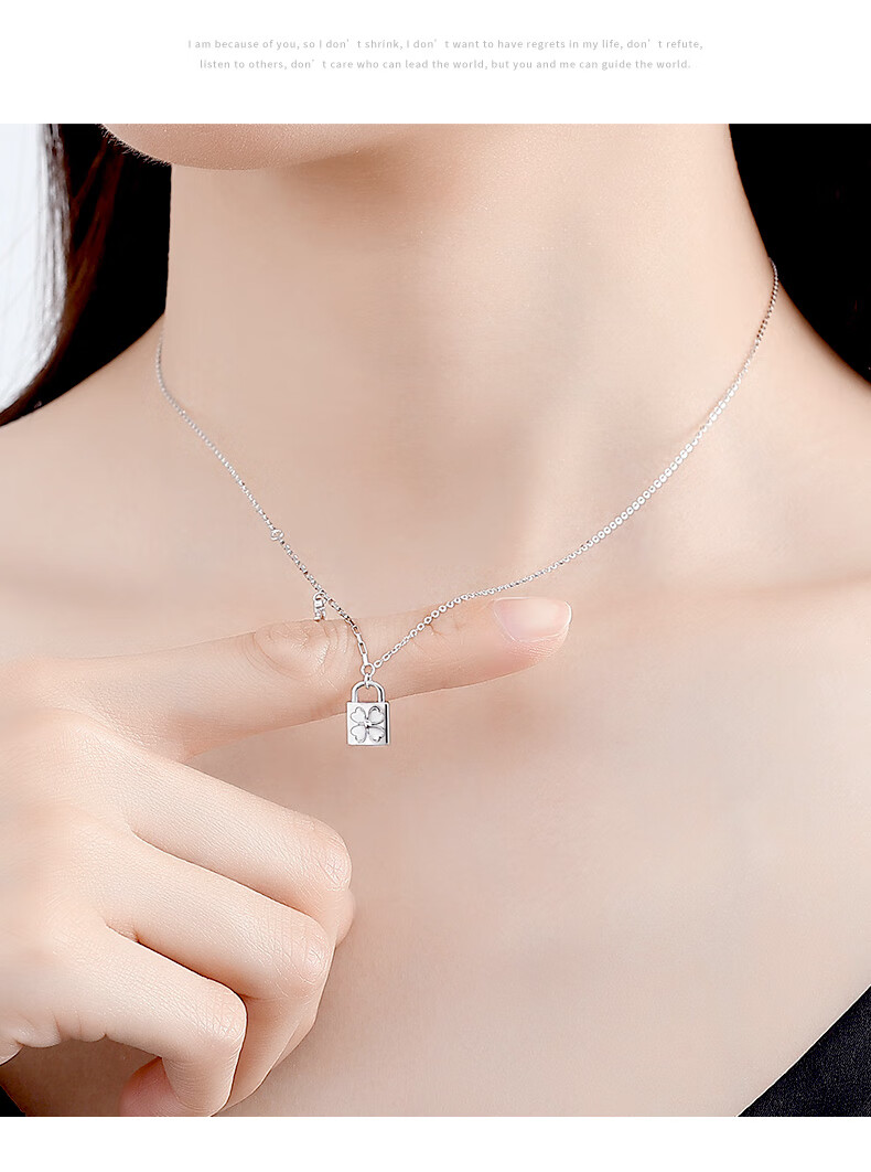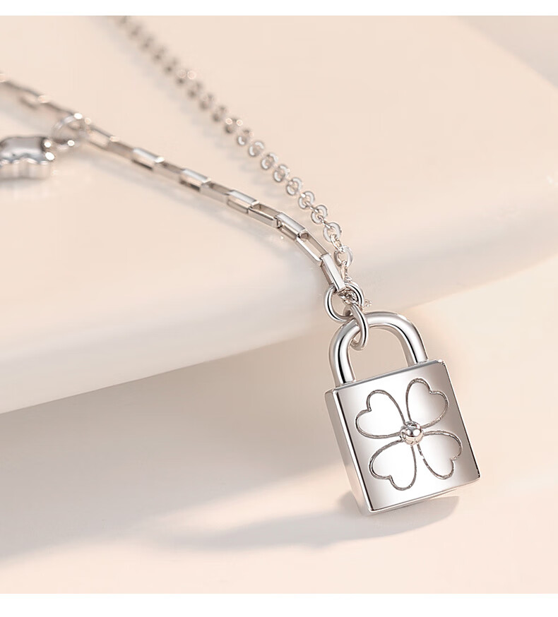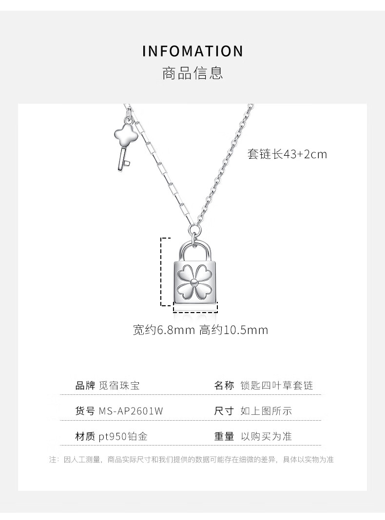 Misu pt950 platinum four-leaf clover necklace spliced ​​clavicle chain platinum lucky heart lock chain as a Christmas gift for your girlfriend, weight 3.6-3.8 grams, length 43+3cm