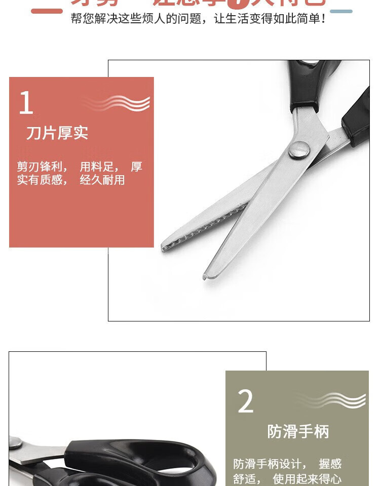 Harvest lace scissors, serrated scissors, toothed cloth scissors, large and small wavy scissors, cloth sample cutter, medium wavy teeth 5mm