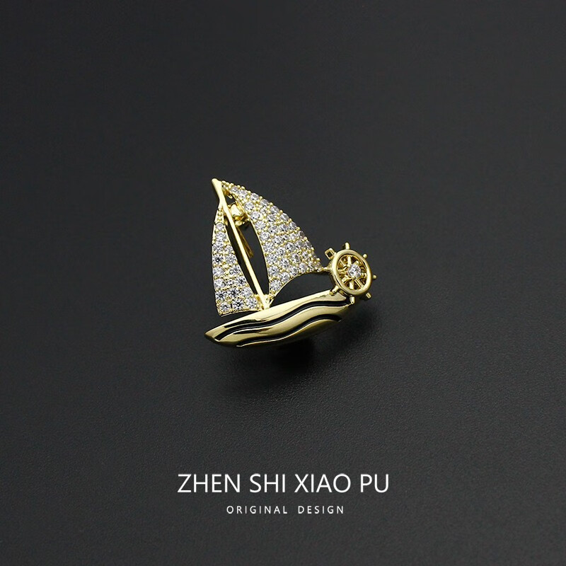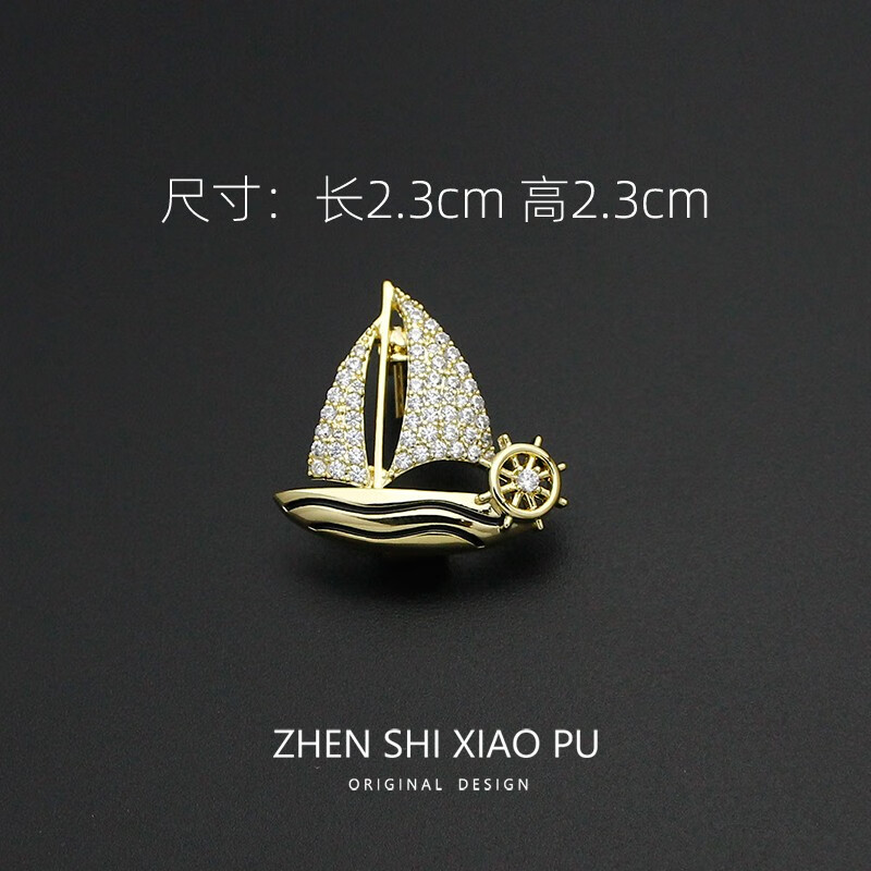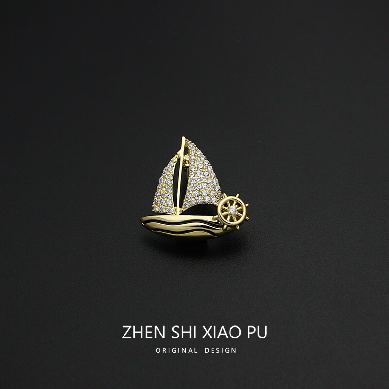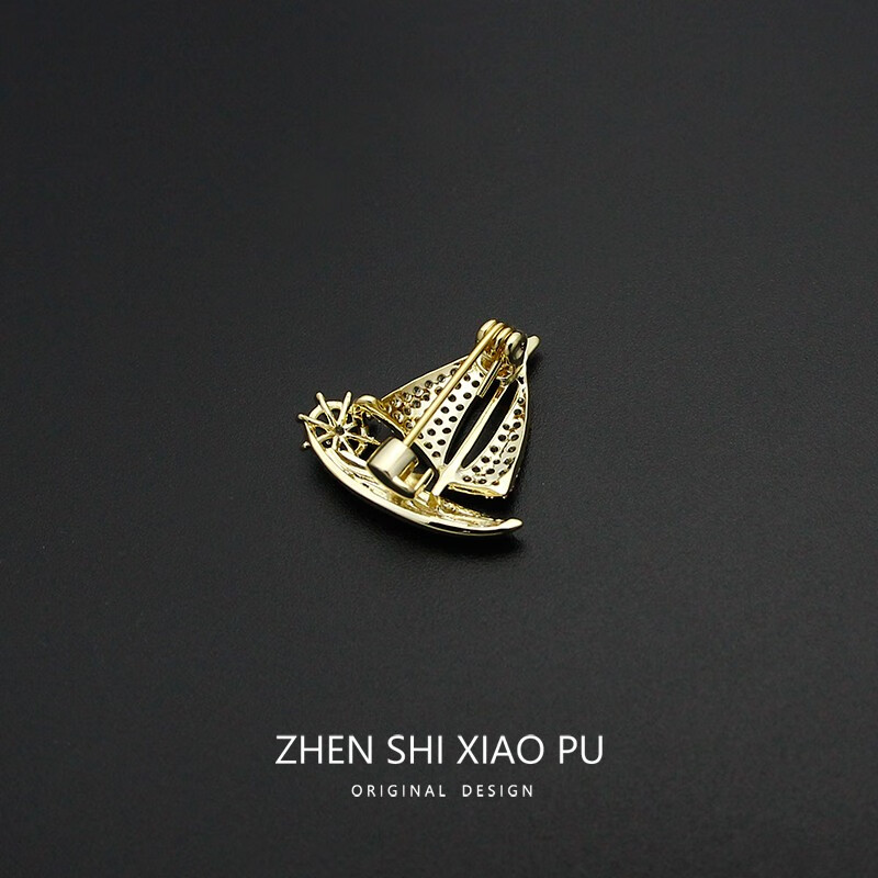 QUAMER rides the wind and waves, small sailing boat brooch, high-end men's and women's exquisite design corsage, suit pin, anti-exposure, small sailing boat/pin
