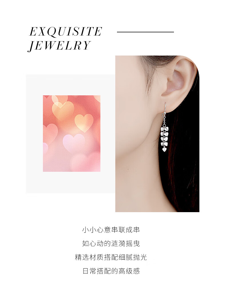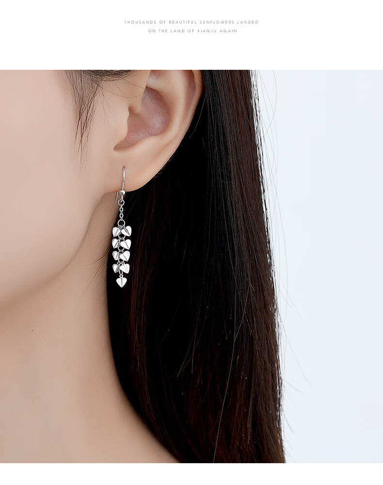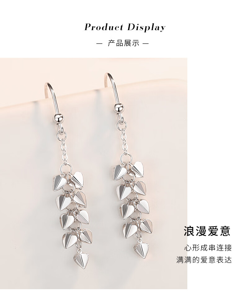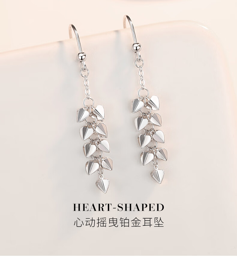 Misu pt950 platinum love-shaped tassel ear hooks platinum fashion earrings shiny ear hooks as a birthday gift for your girlfriend, weighing 2.8-3.0 grams