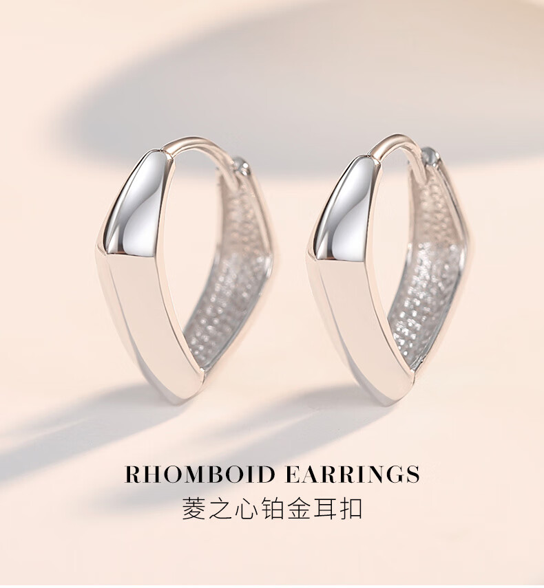 Misu pt950 platinum rhombus earrings glossy shiny platinum geometric square earrings as a birthday gift for your girlfriend, weighing 3.2-3.4 grams