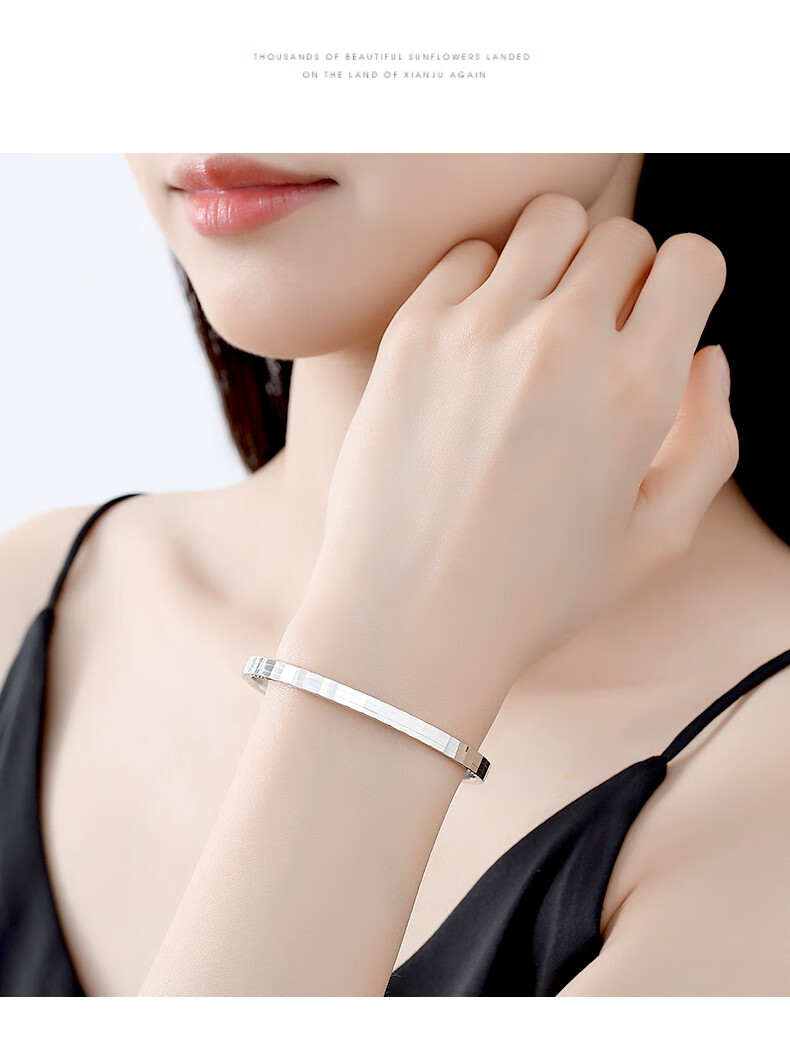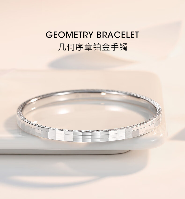 Misu pt950 platinum multi-faceted bracelet for women, shiny plain ring platinum round bracelet as a birthday gift for my wife, weighs 16.4-16.6 grams, 52mm wide and 4.5mm