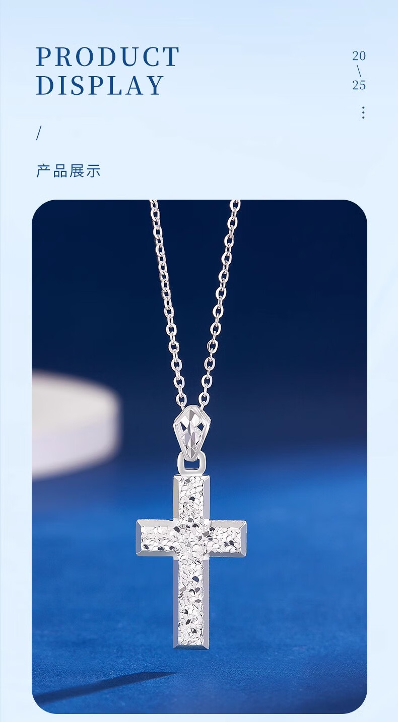 CHINA GOLD PT950 Platinum Crushed Ice Cross Pendant Women's Collarbone Necklace Practical Valentine's Day Gift for Girlfriend's Birthday Platinum Crushed Ice Cross Pendant About 6.4g Free Silver Chain