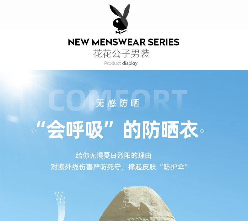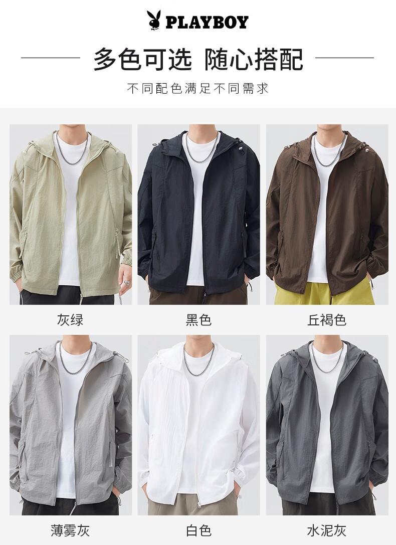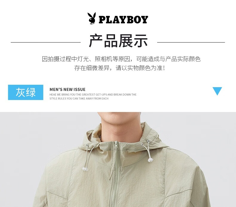 Playboy sun protection clothing for men UV protection 2025 new summer ice silk fishing clothing sun protection clothing thin jacket 7731 mist gray XL