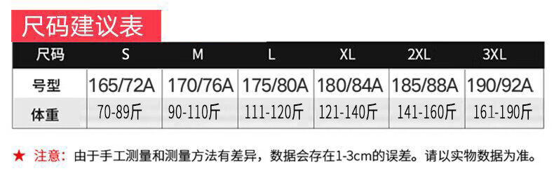 China (cm) 165 / 88-90 170 / 96-98 175 / 108-110 180 / 118-122 185 / 126-130