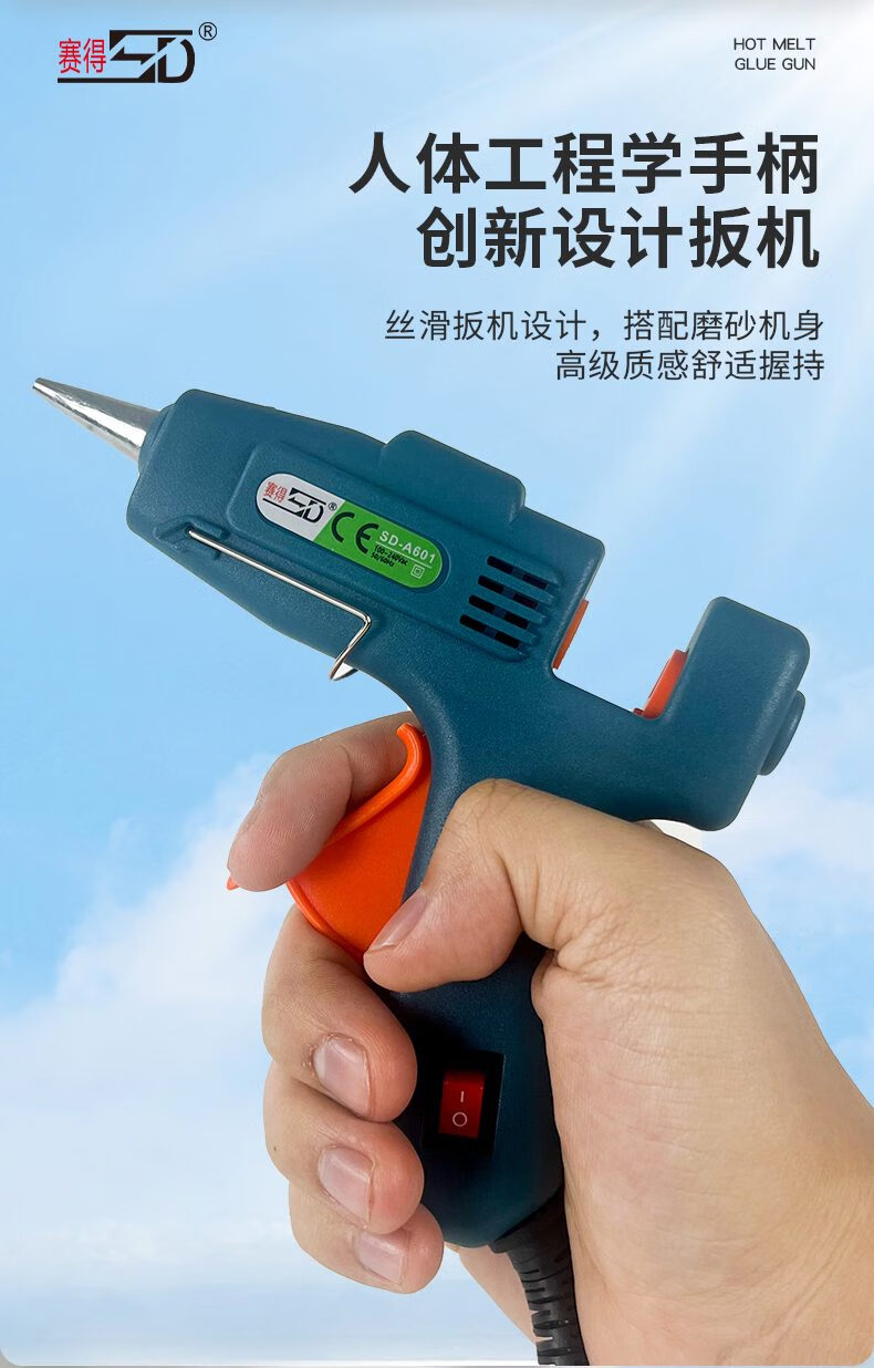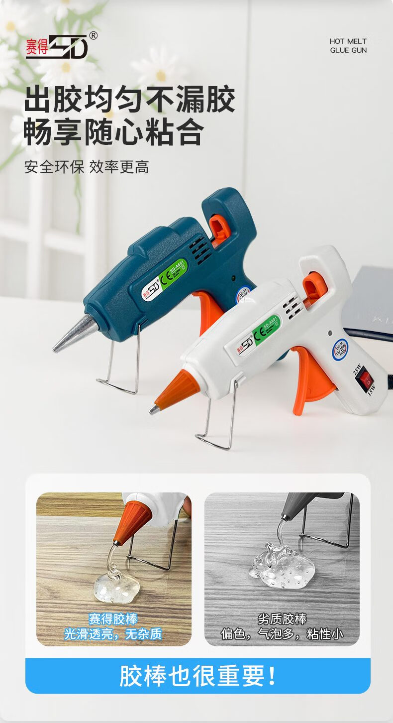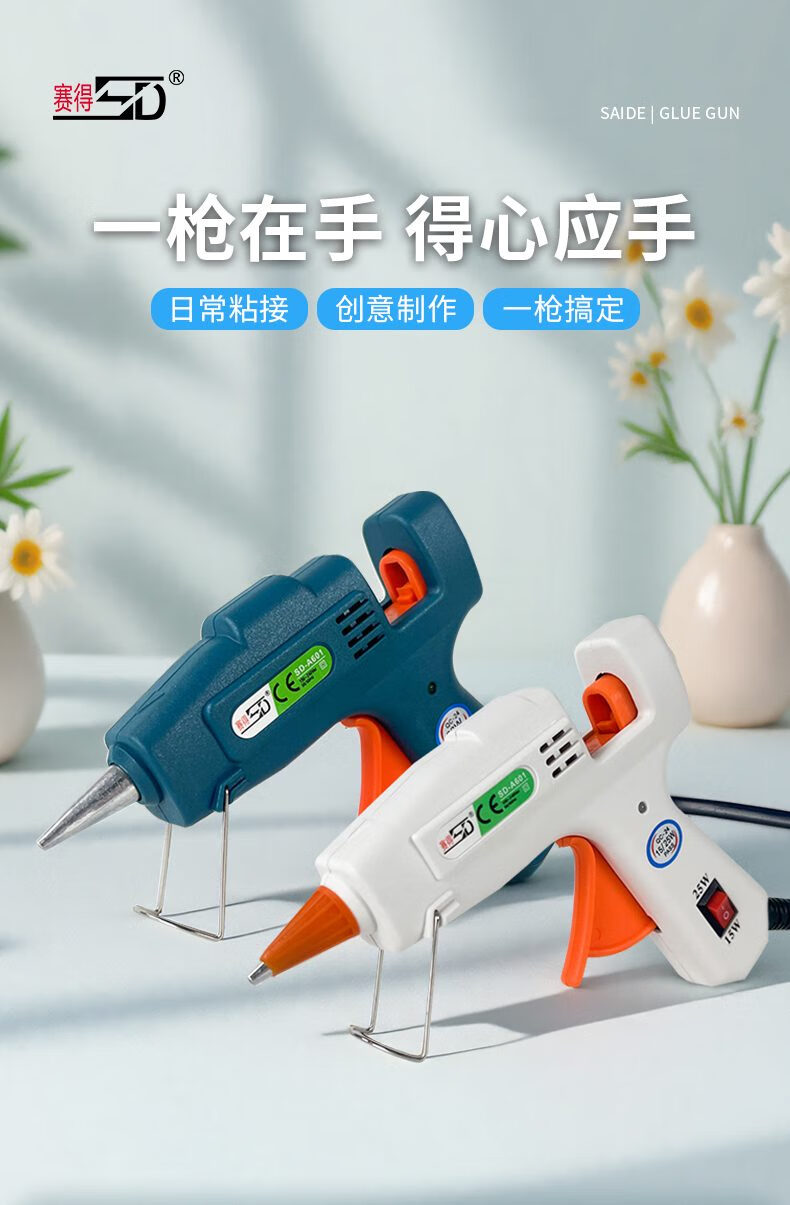 Saide hot melt glue gun handmade electric hot melt glue gun household children's glue strip hot melt glue stick glue gun 20W long thin mouth + 10 glue sticks