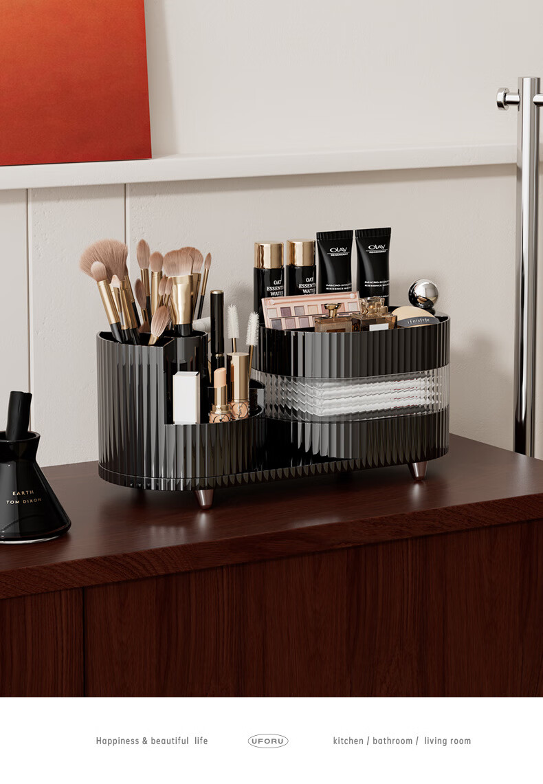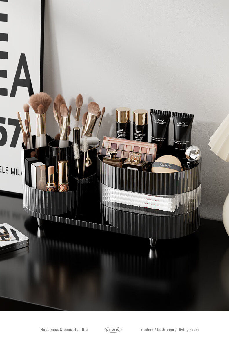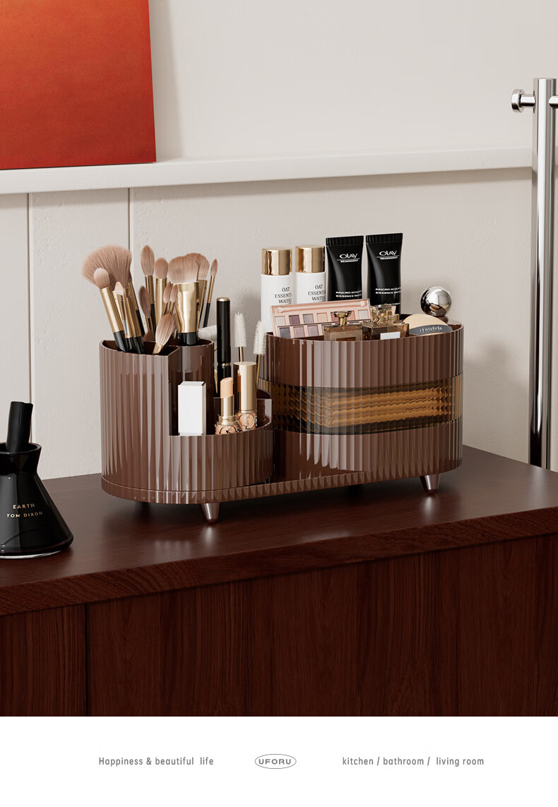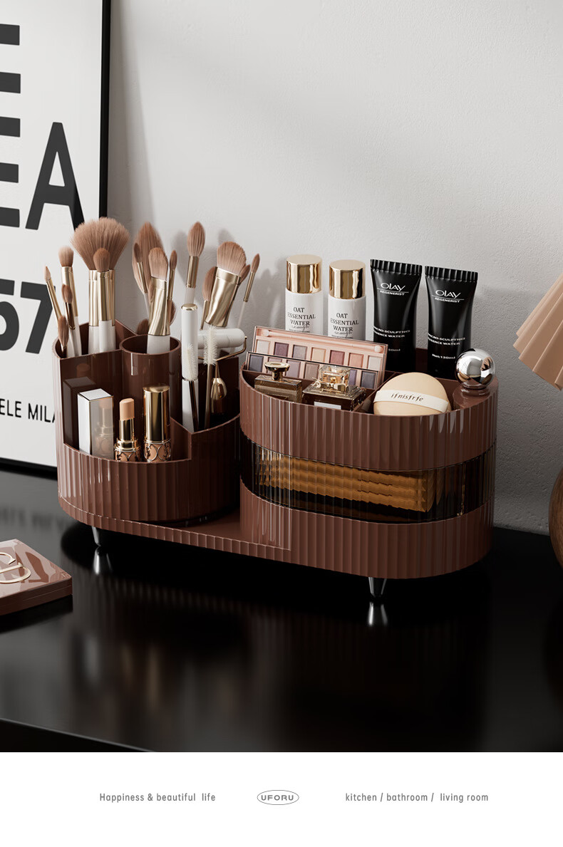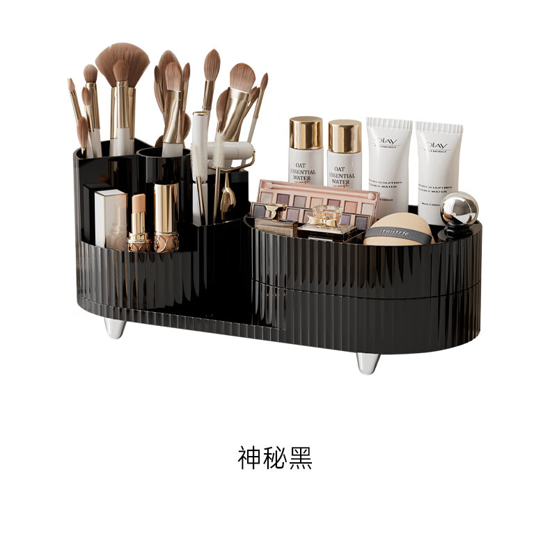 Japanese cosmetics storage box, dressing table, desktop jewelry, integrated rotating bucket storage rack, lipstick makeup brush barrel, cream white - three layers
