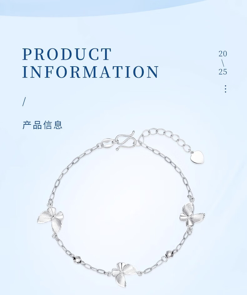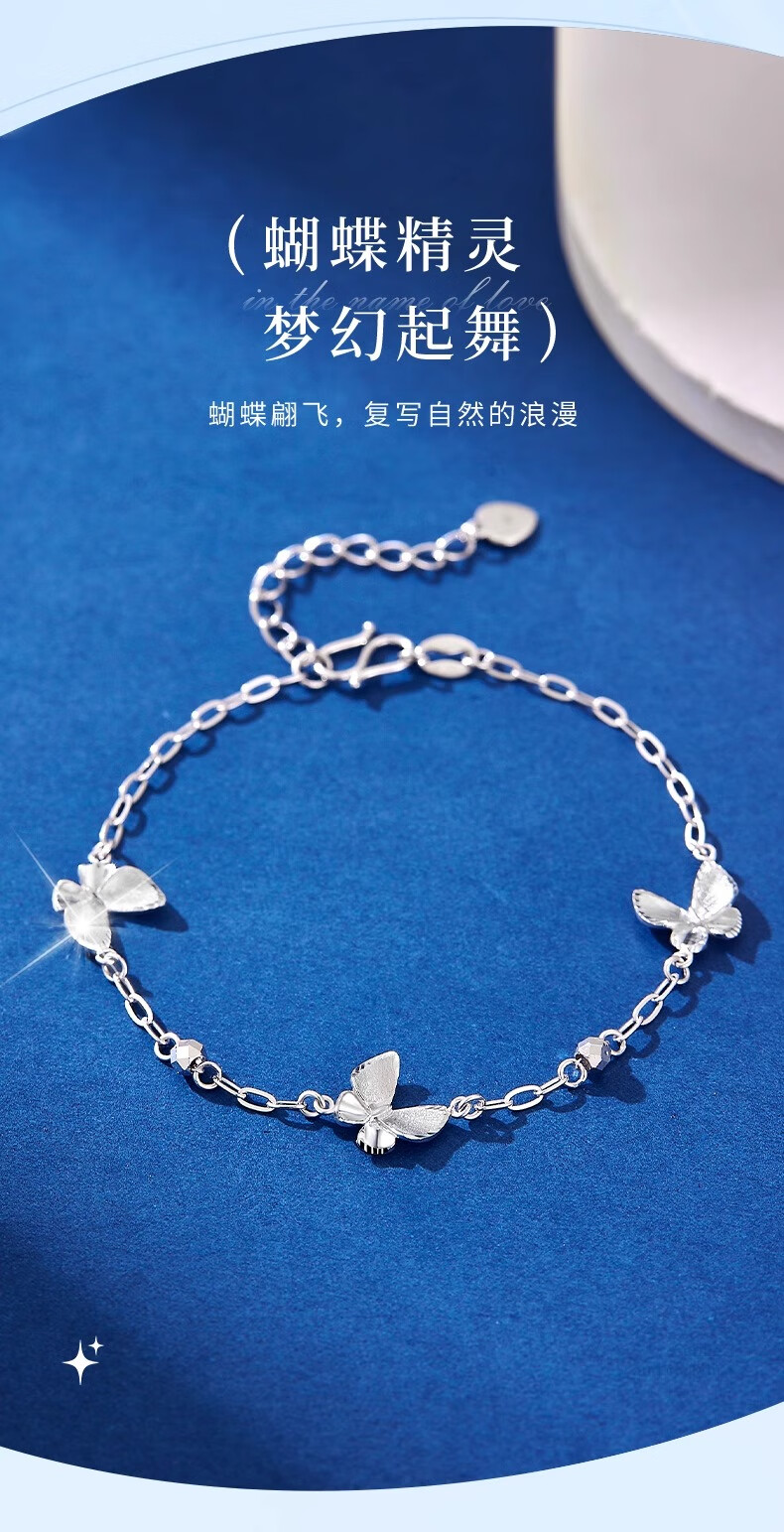 China Gold (CHINA GOLD) PT950 Platinum Butterfly Bracelet 2025 New Platinum Jane Valentine's Day Birthday Gift Year of the Horse Animal Year Gift PT950 Platinum Butterfly Bracelet About 4.2g