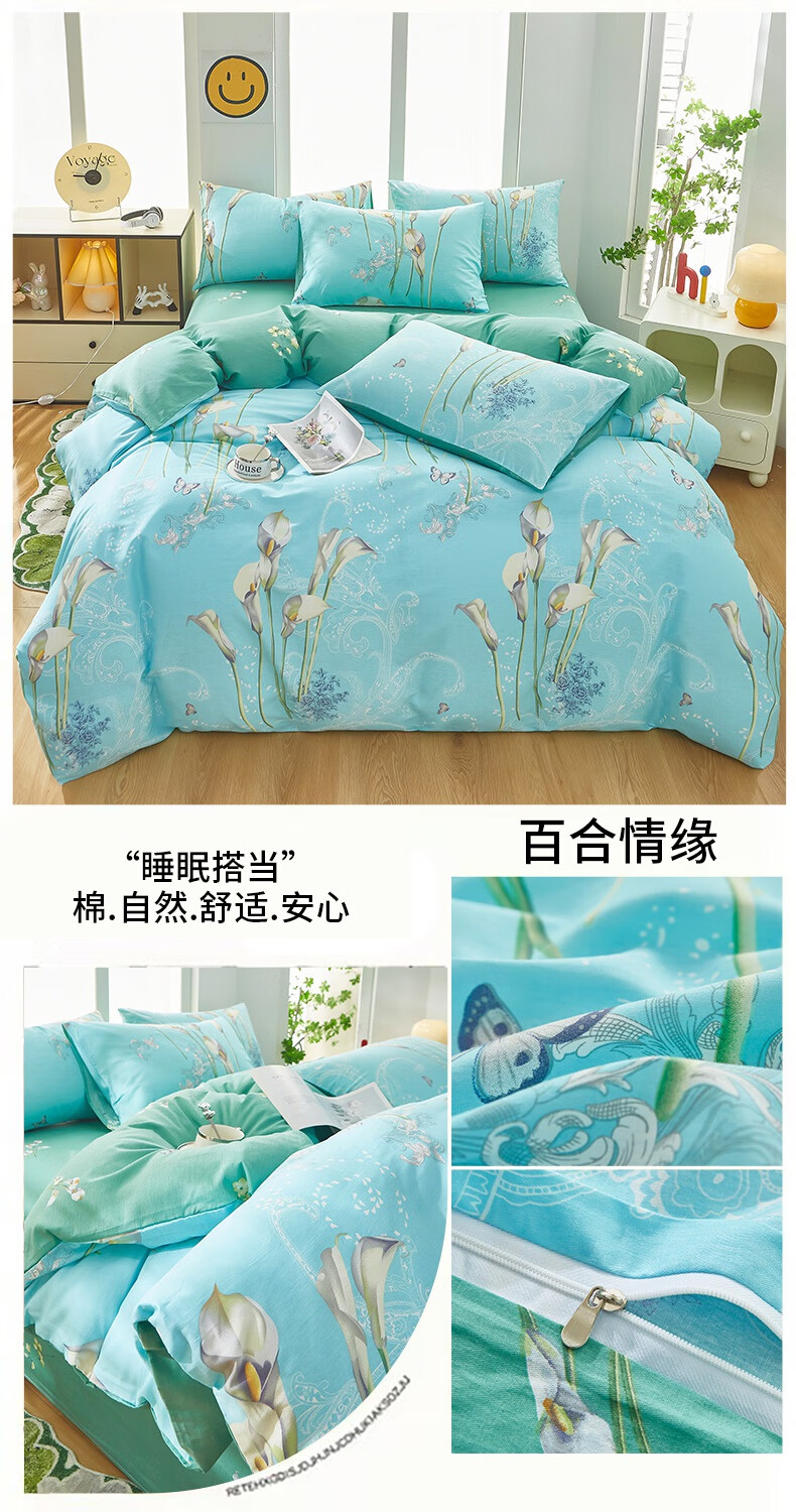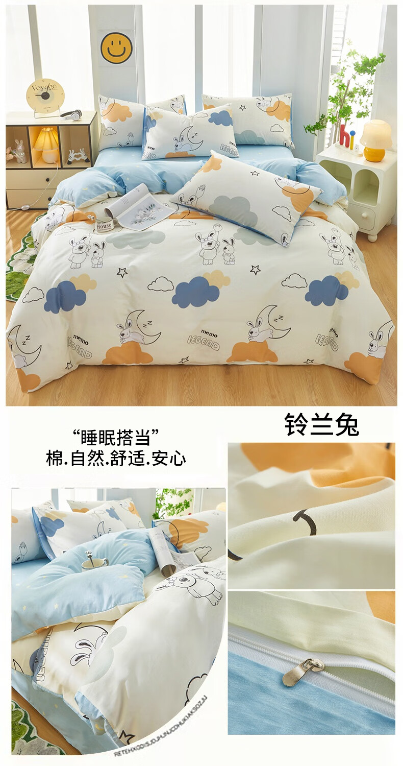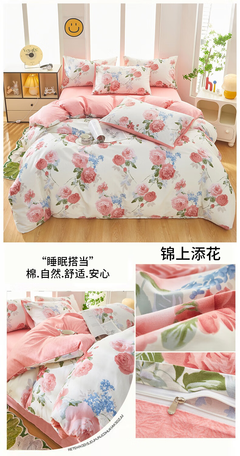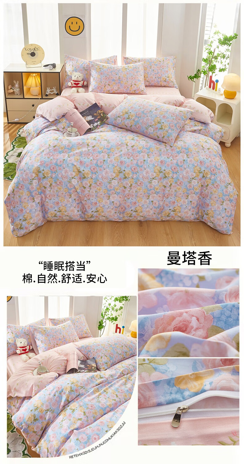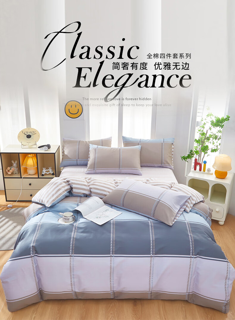 Mercury series home textiles Class A 140 count long-staple cotton soft four-piece set 100% cotton 100% cotton boys and girls bed sheets and duvet covers single and double bed three Hongyan, 100% cotton 2.0 bed sheet four-piece set-quilt cover 220*240 100% cotton