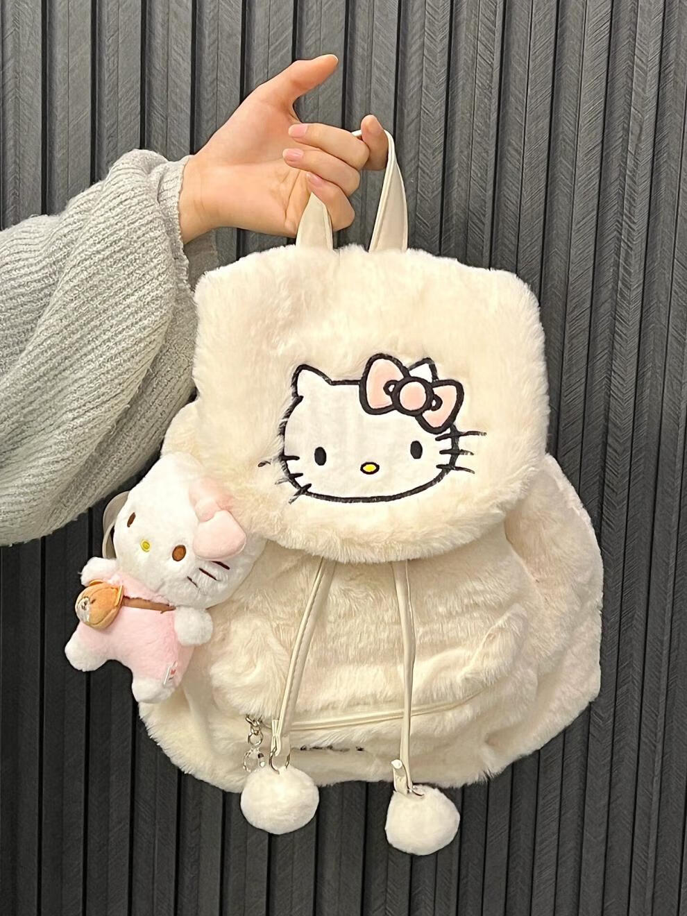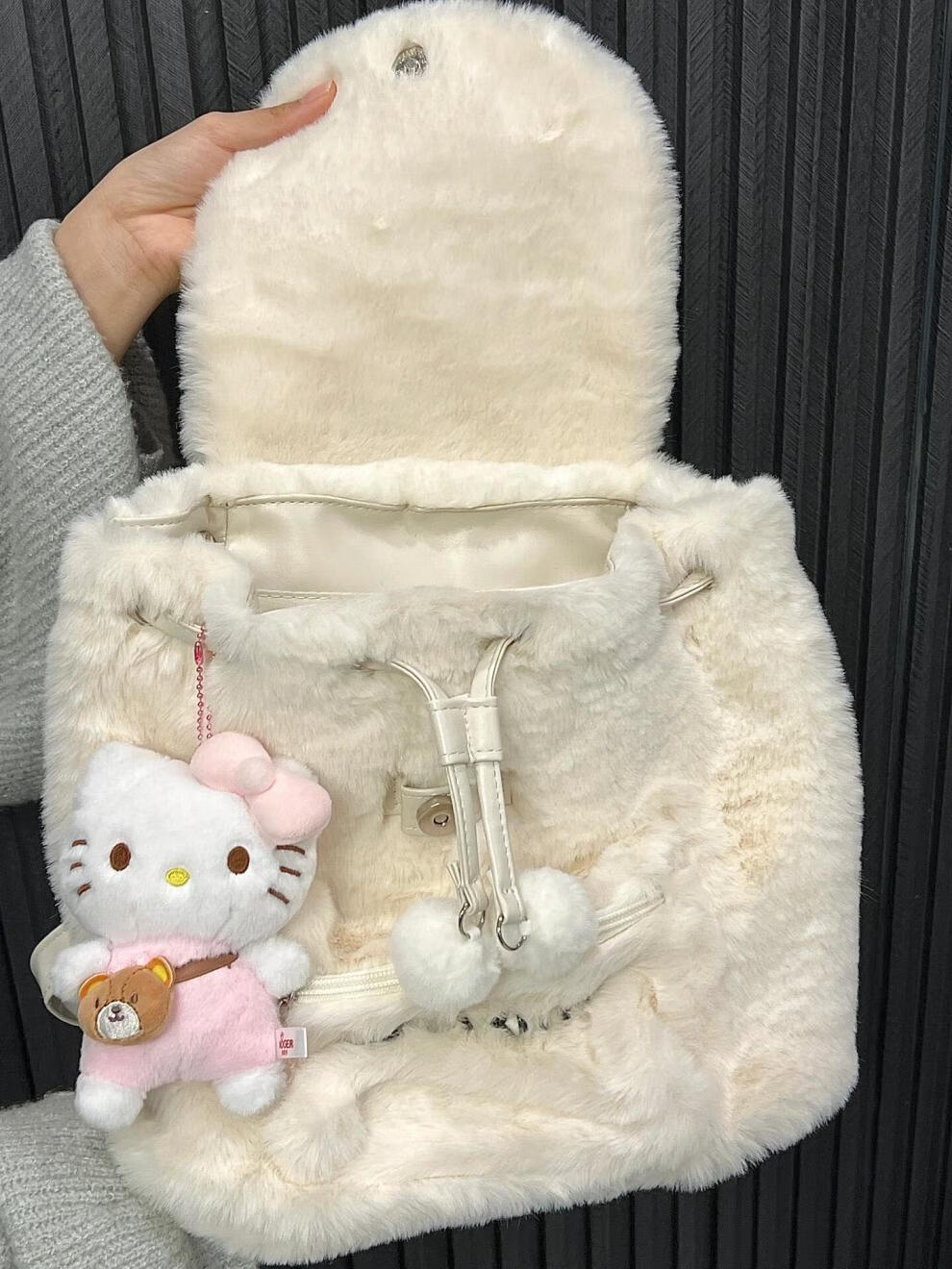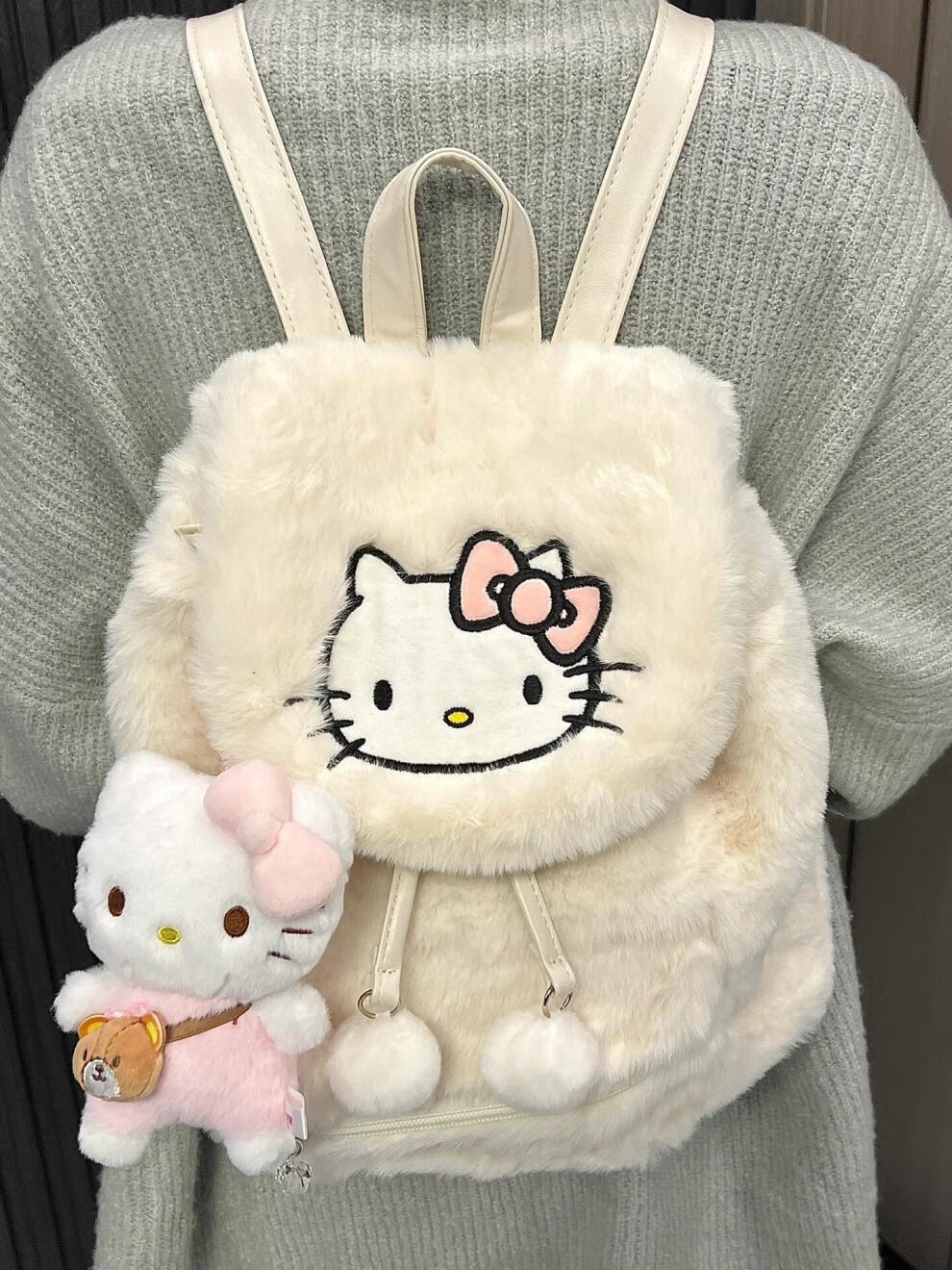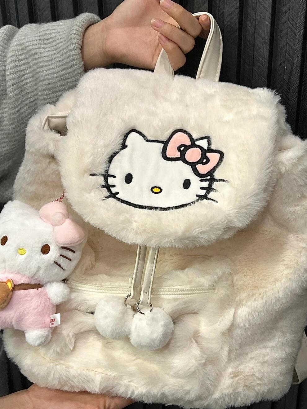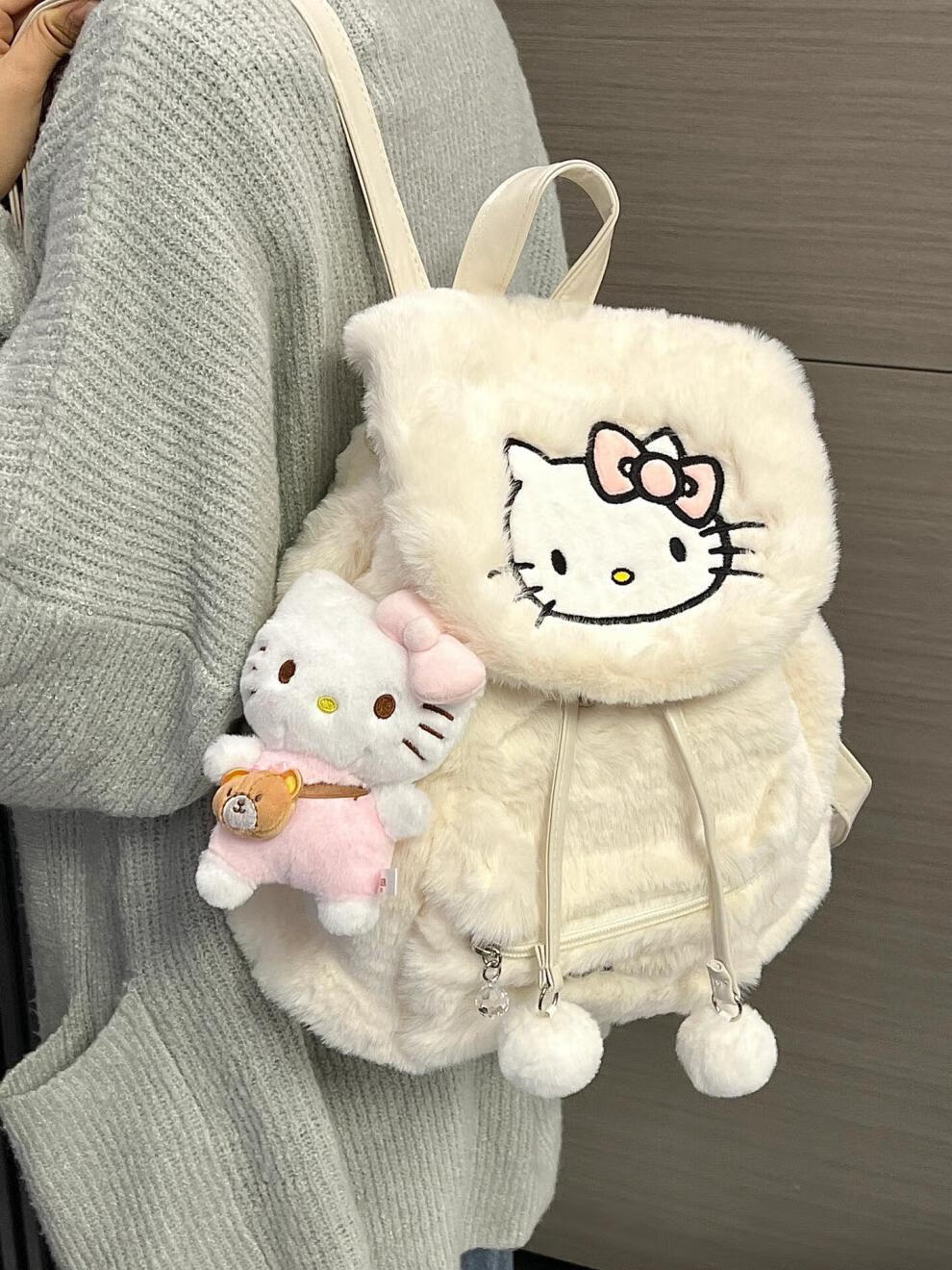Disney (Disney) 2025 autumn and winter plush niche backpack hellokitty bag Sanrio Hello Kitty school bag female Kuromi white KT cat plush backpack without doll