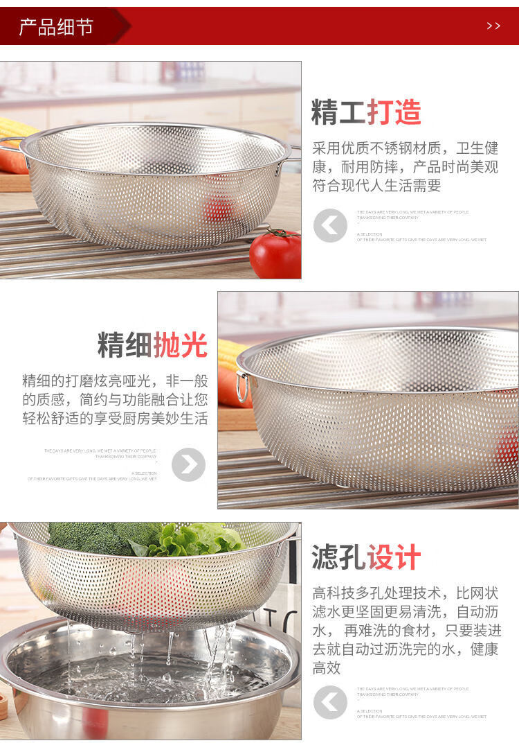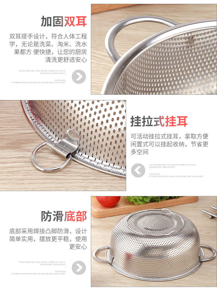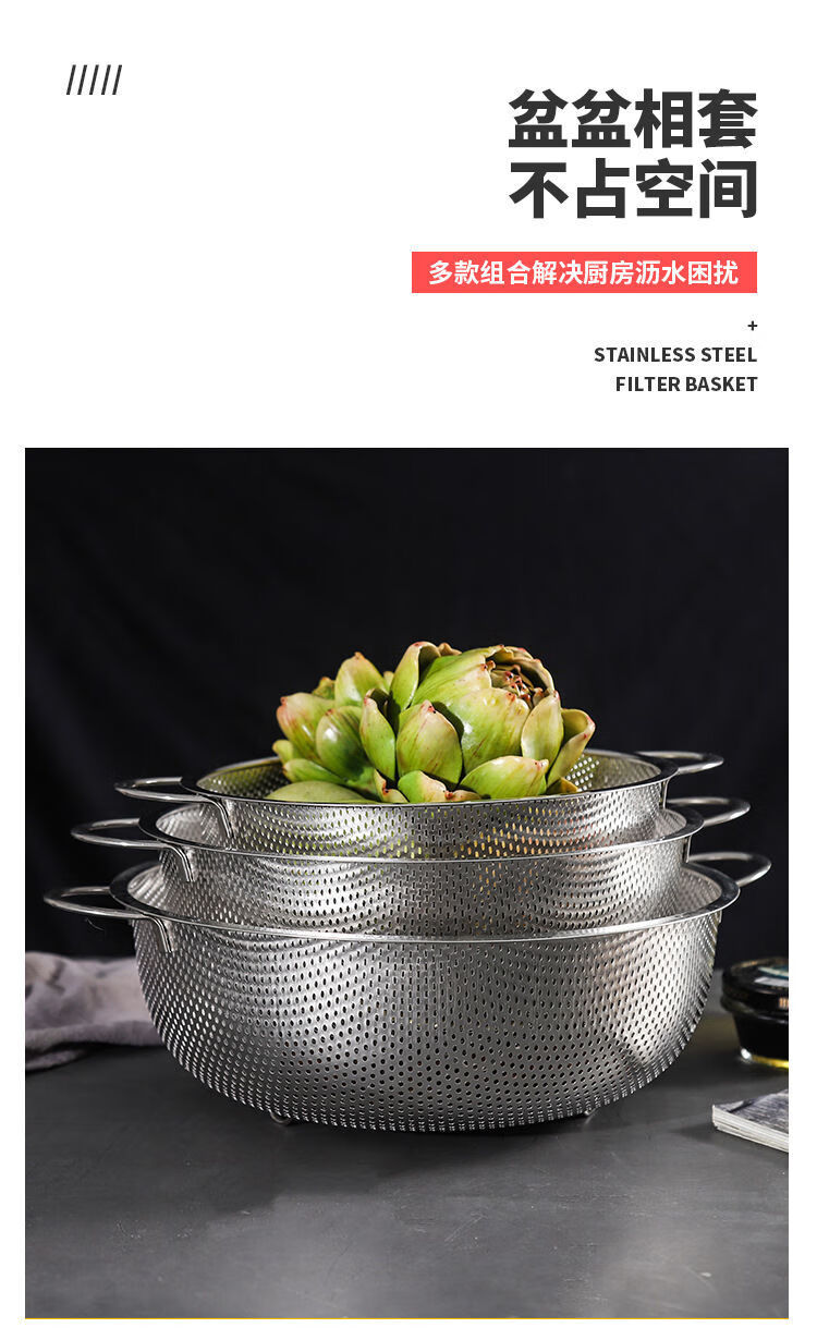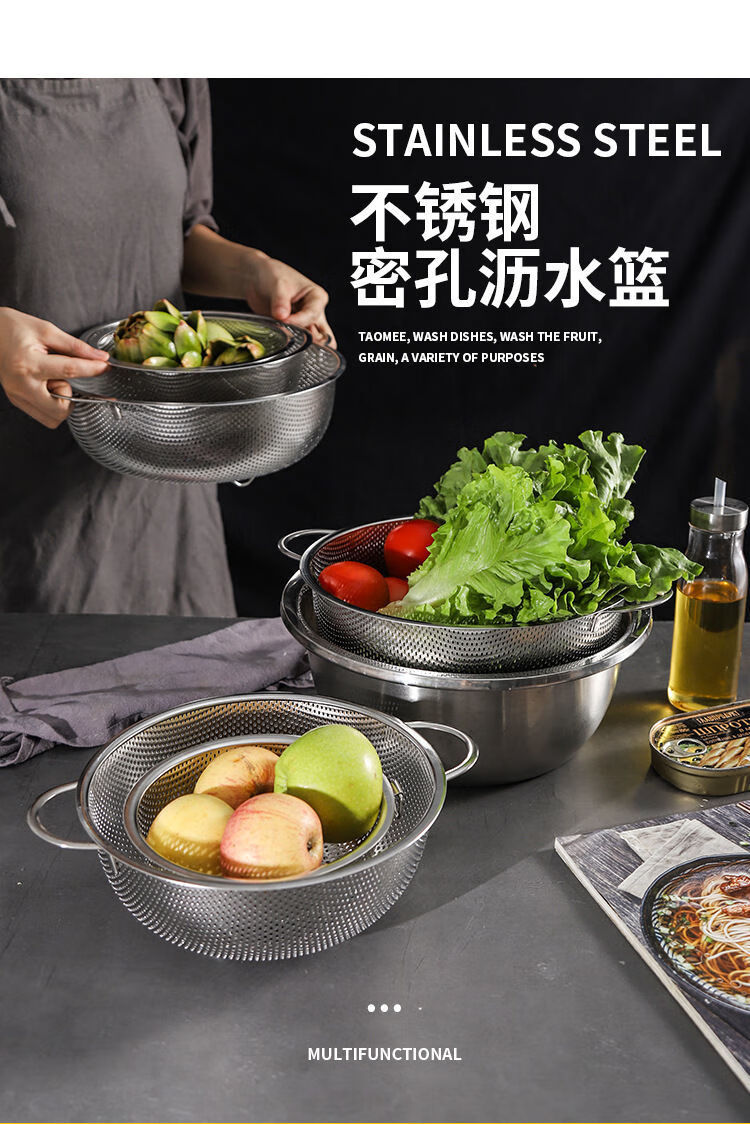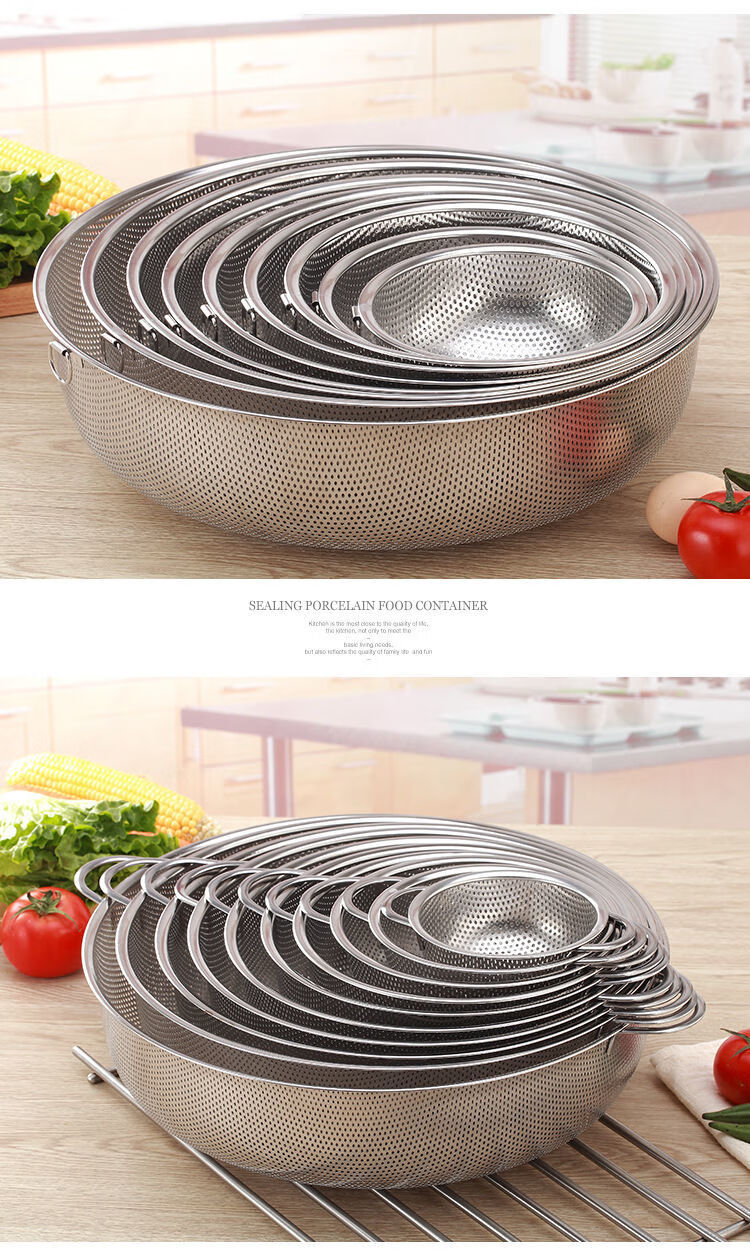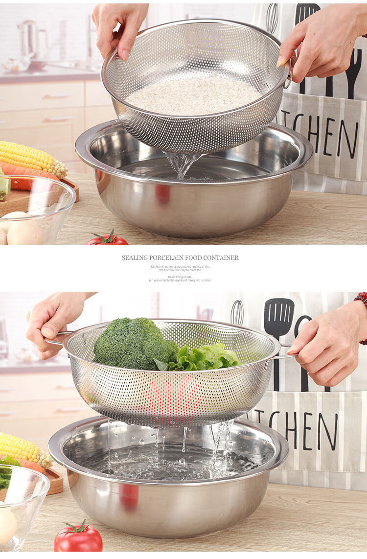 Bodenju stainless steel sink drain basket household fruit basin vegetable basket kitchen vegetable basket water food grade double ear dense hole basin 28.5CM leaky basin + 31CM solid basin